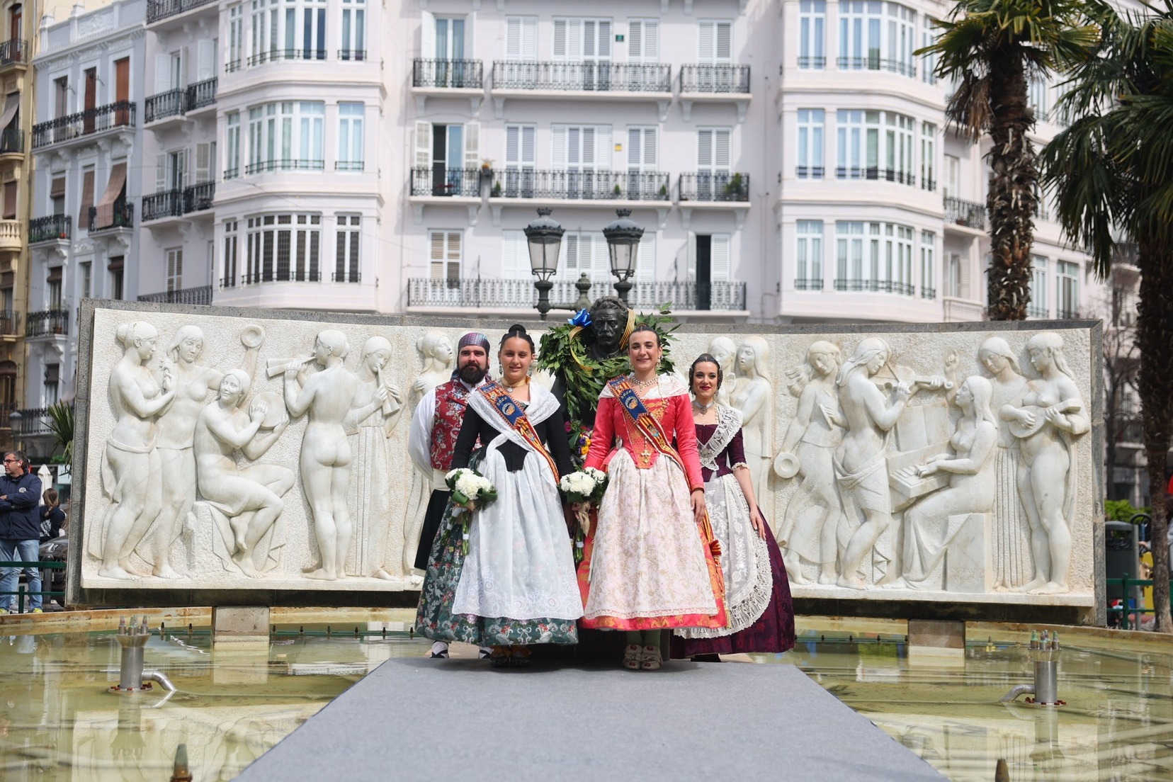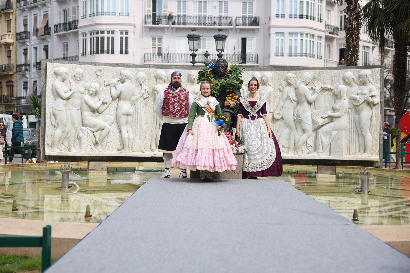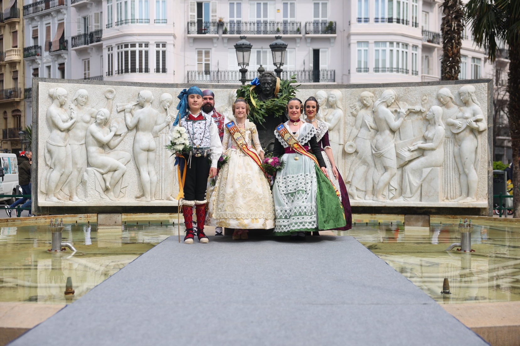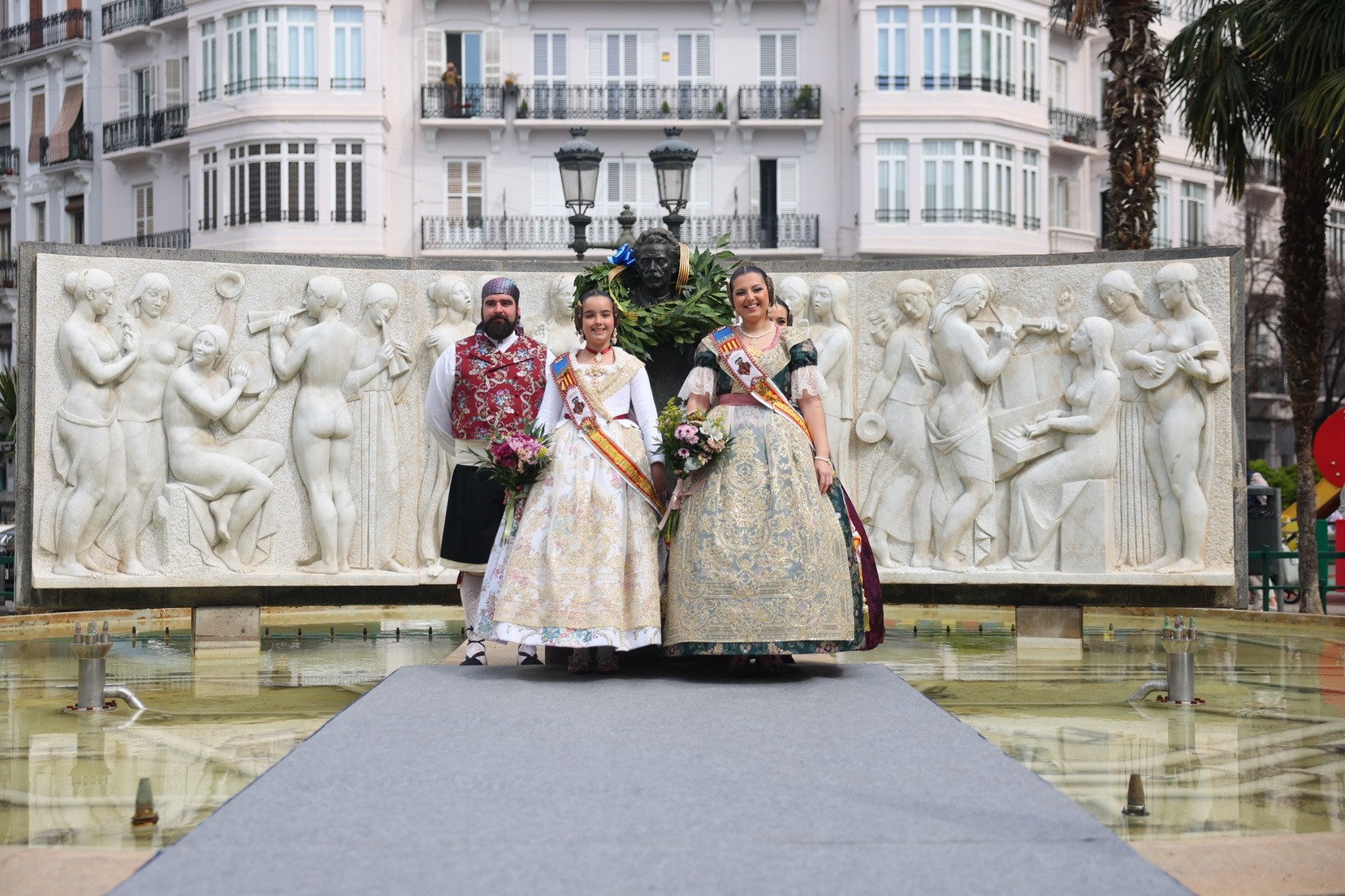 Les Falleres Majors de València, Marta Mercader i Carmen Prades, acompanyades per les seues Corts d’Honor, han sigut les encarregades de presidir este emotiu tribut. Durant l’acte, han dipositat una corona de llorer als peus del monument com a mostra de respecte i gratitud al músic valencià.