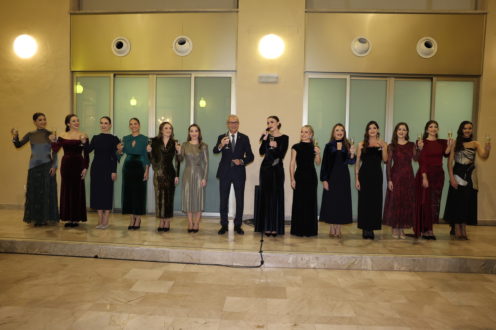 Carmen i la seua Cort d’Honor han dedicat unes paraules als assistents plenes de bonics desitjos per a tots i, també, per a tots els que fan possible la nostra festa: músics, indumentarists, orfebres, artistes fallers, pirotècnics… i també per la nostra benvolguda ciutat: “Brindem per València: per la València que viu art, soroll, pólvora i música, la que sempre està disposta a dir que sí una vegada més. I ara, en nom de les tretze, vull donar-vos les gràcies per tot el que esteu a punt de regalar-li a València. Alcem les copes i brindem per València, per les Falles, per tots vosaltres i per un 2026 que recordarem per sempre. Bon Nadal… i visquen les Falles!”.