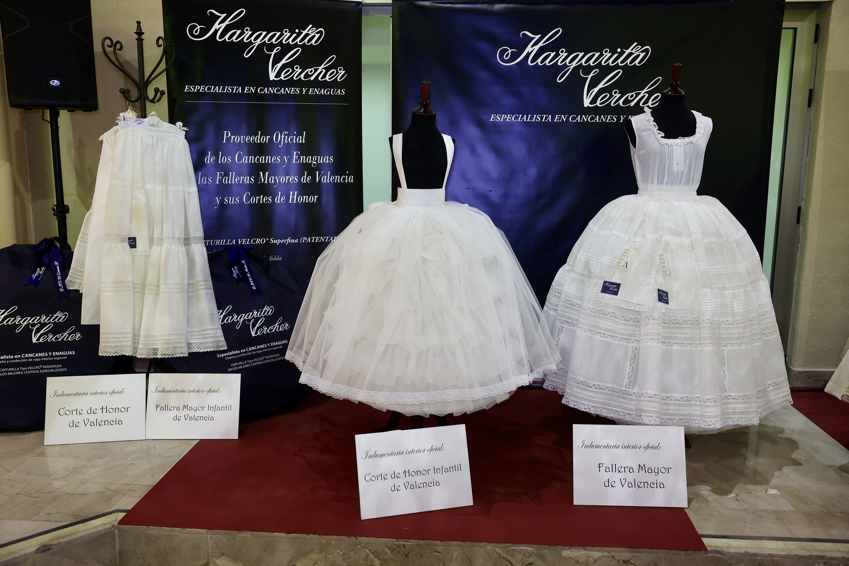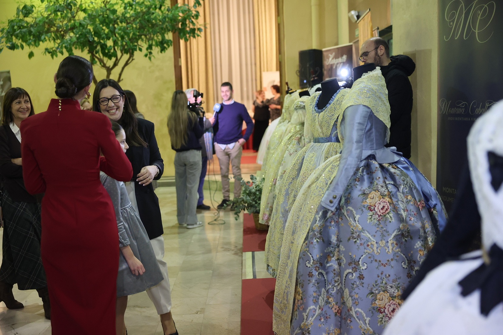 Una vegada finalitzada la part més protocol·lària d’esta gala, les Falleres Majors de València han tallat la cinta quedant així inaugurada la mostra de les 25 firmes. Carmen, Marta, i les Corts d’Honor, han recorregut l’exposició i han tingut l’oportunitat de comentar amb els indumentaristes alguns dels detalls de les peces exposades que passaren a formar part dels seus armaris fallers.