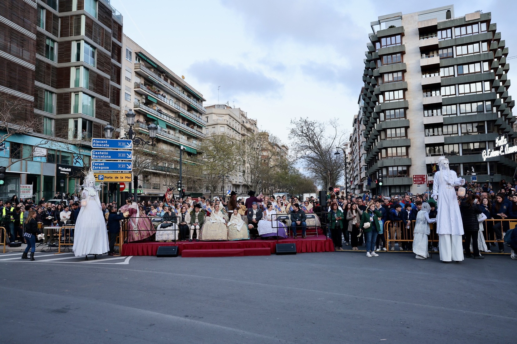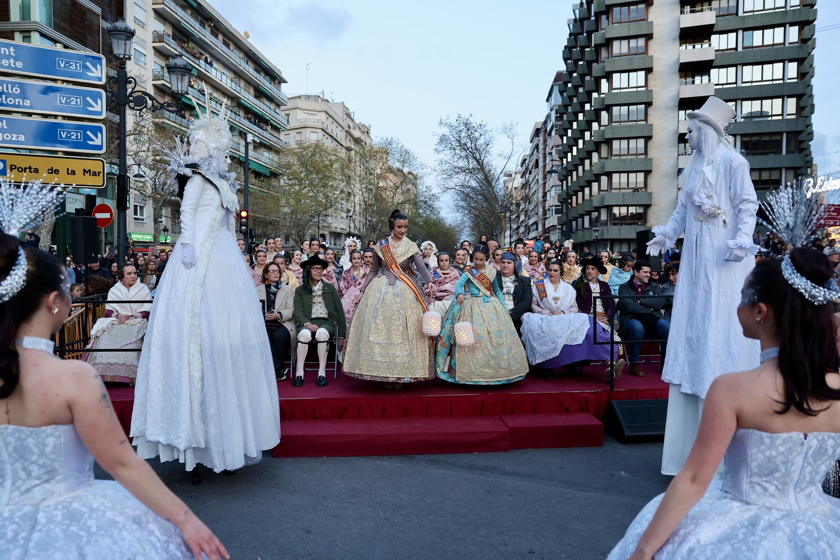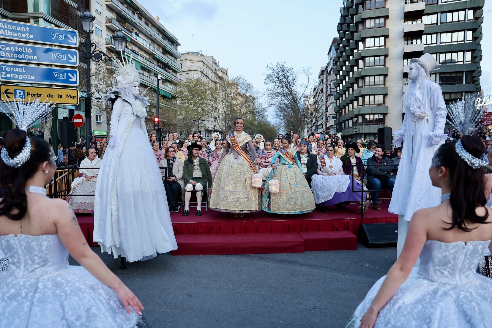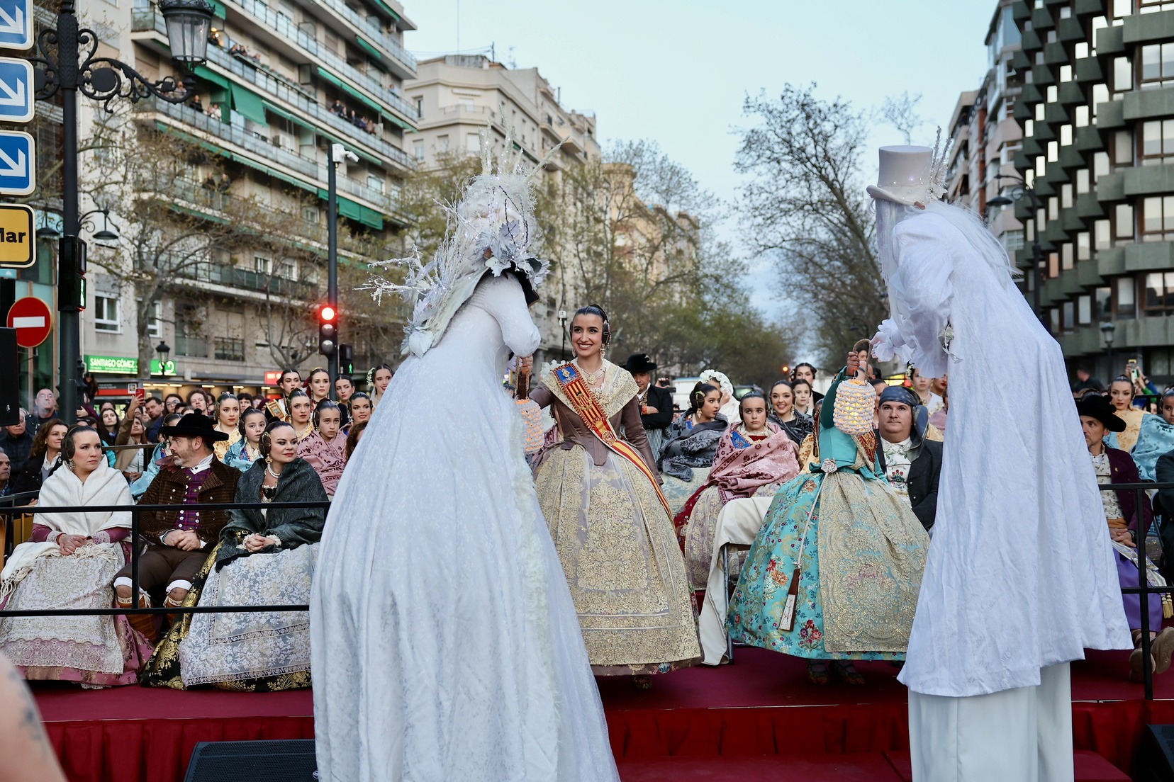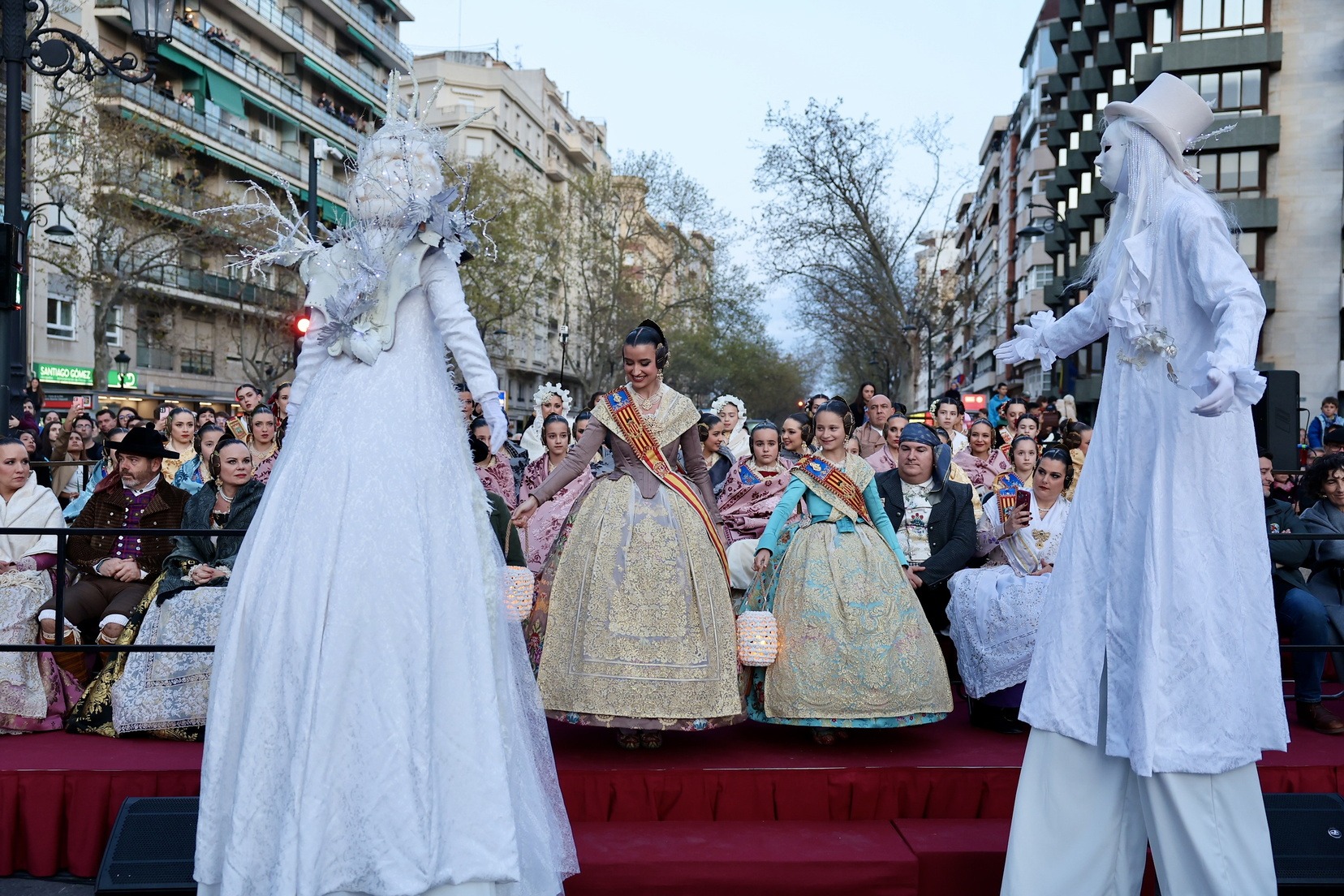Les Falleres Majors de València, acompanyades per les seues Corts d’Honor, han disfrutat d’este meravellós espectacle i, al costat d’elles, les representants de les nostres festes germanes d’Alacant, Castelló, Burgos i Múrcia, així com els CEVEX, que estos dies ens estan acompanyant en la celebració de la nostra festa.