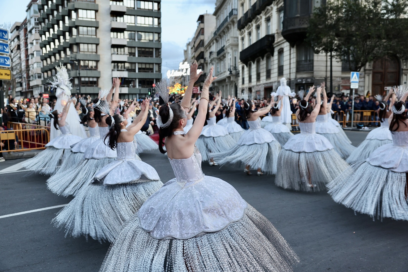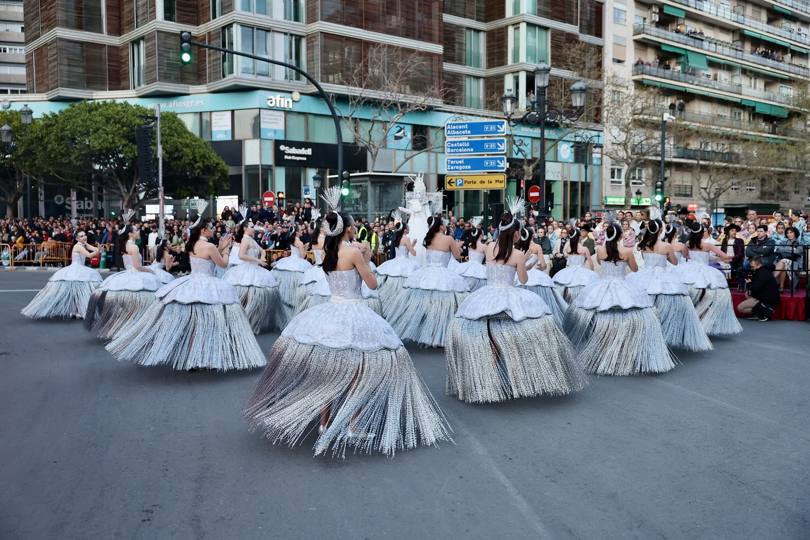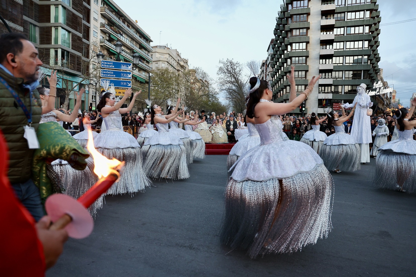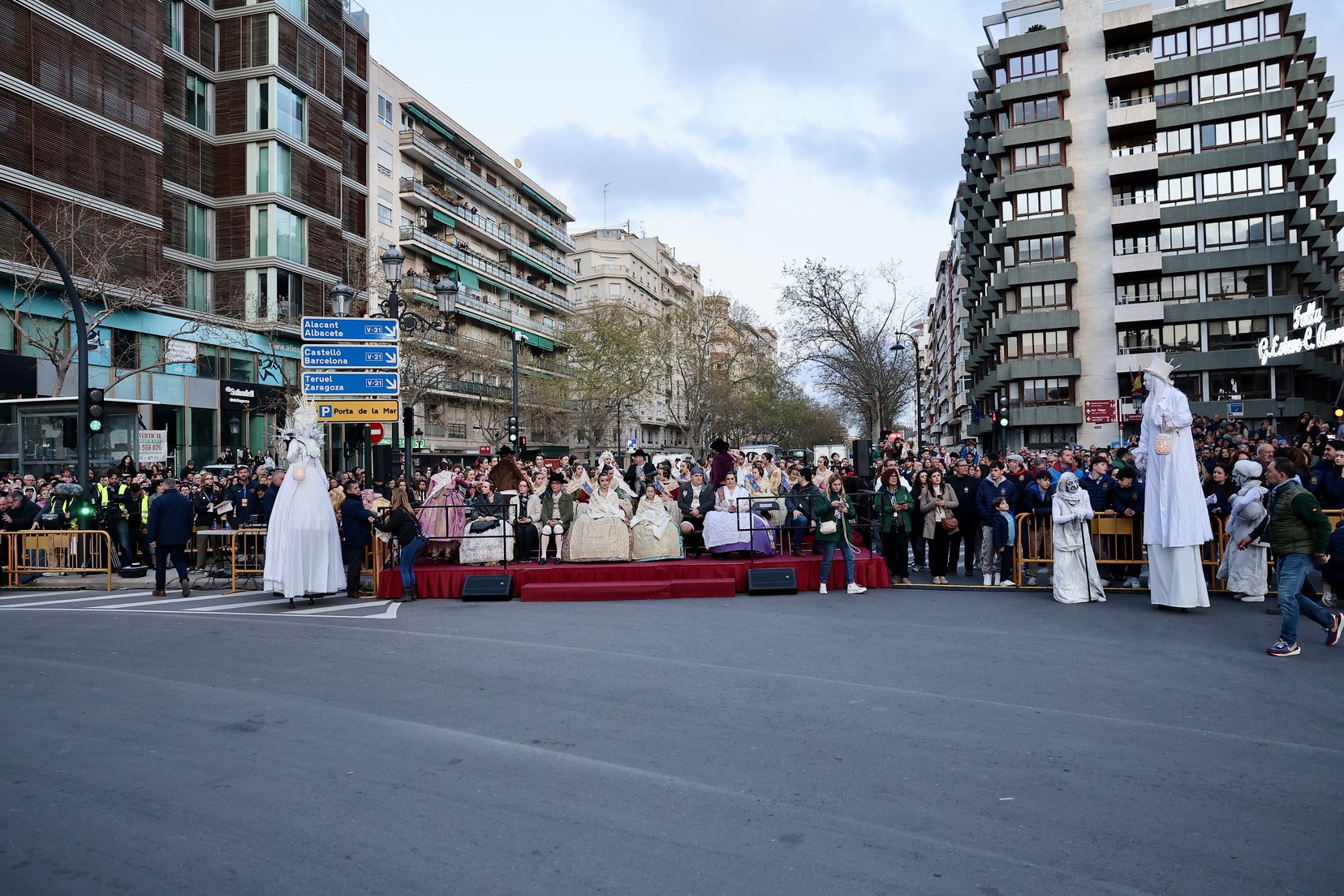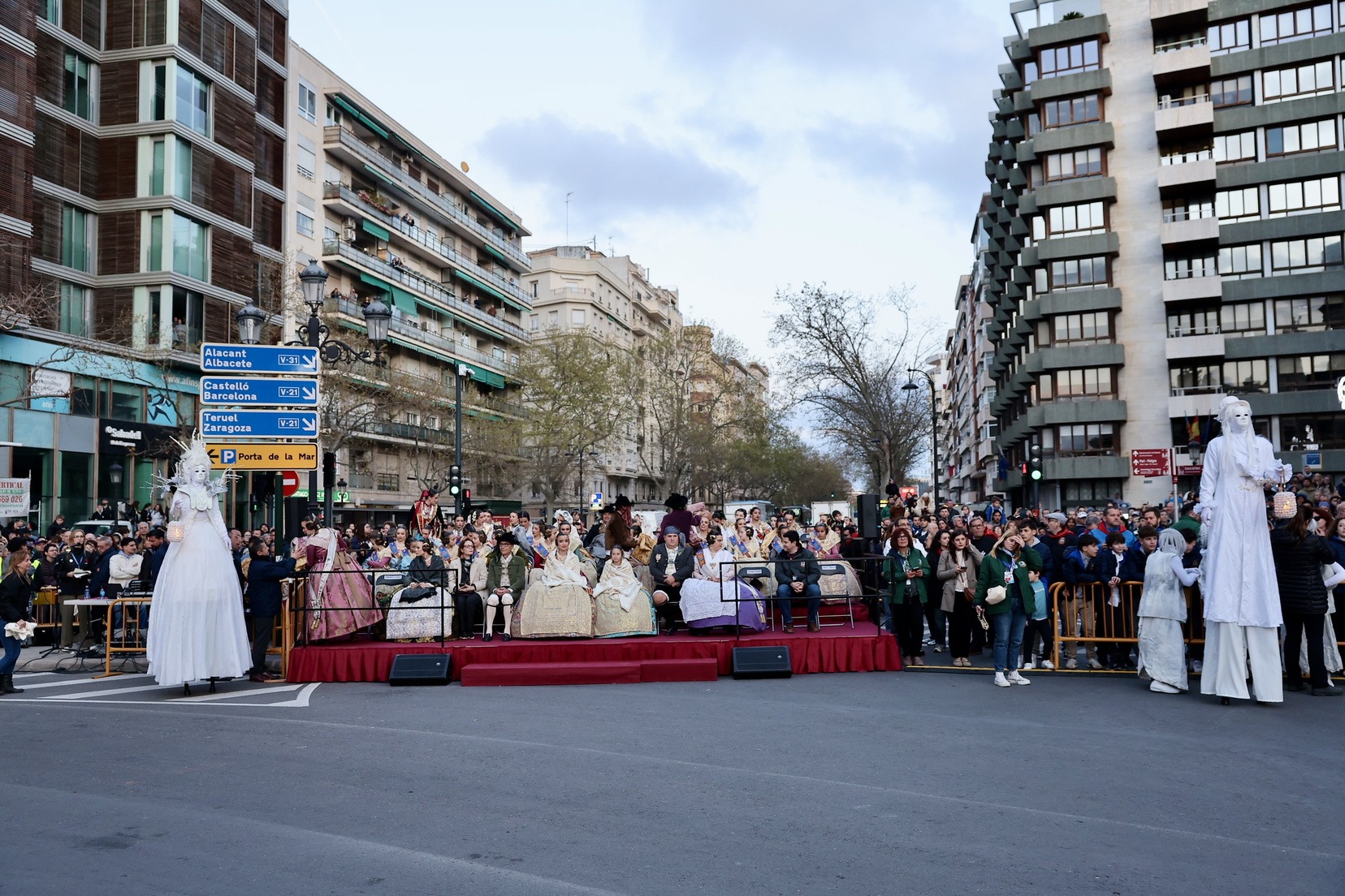 Les Falleres Majors de València, acompanyades per les seues Corts d’Honor, han disfrutat d’este meravellós espectacle i, al costat d’elles, les representants de les nostres festes germanes d’Alacant, Castelló, Burgos i Múrcia, així com els CEVEX, que estos dies ens estan acompanyant en la celebració de la nostra festa.