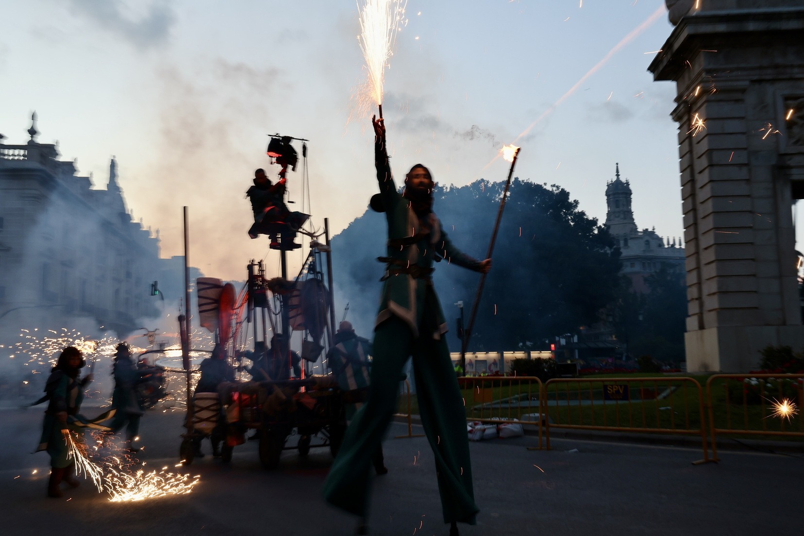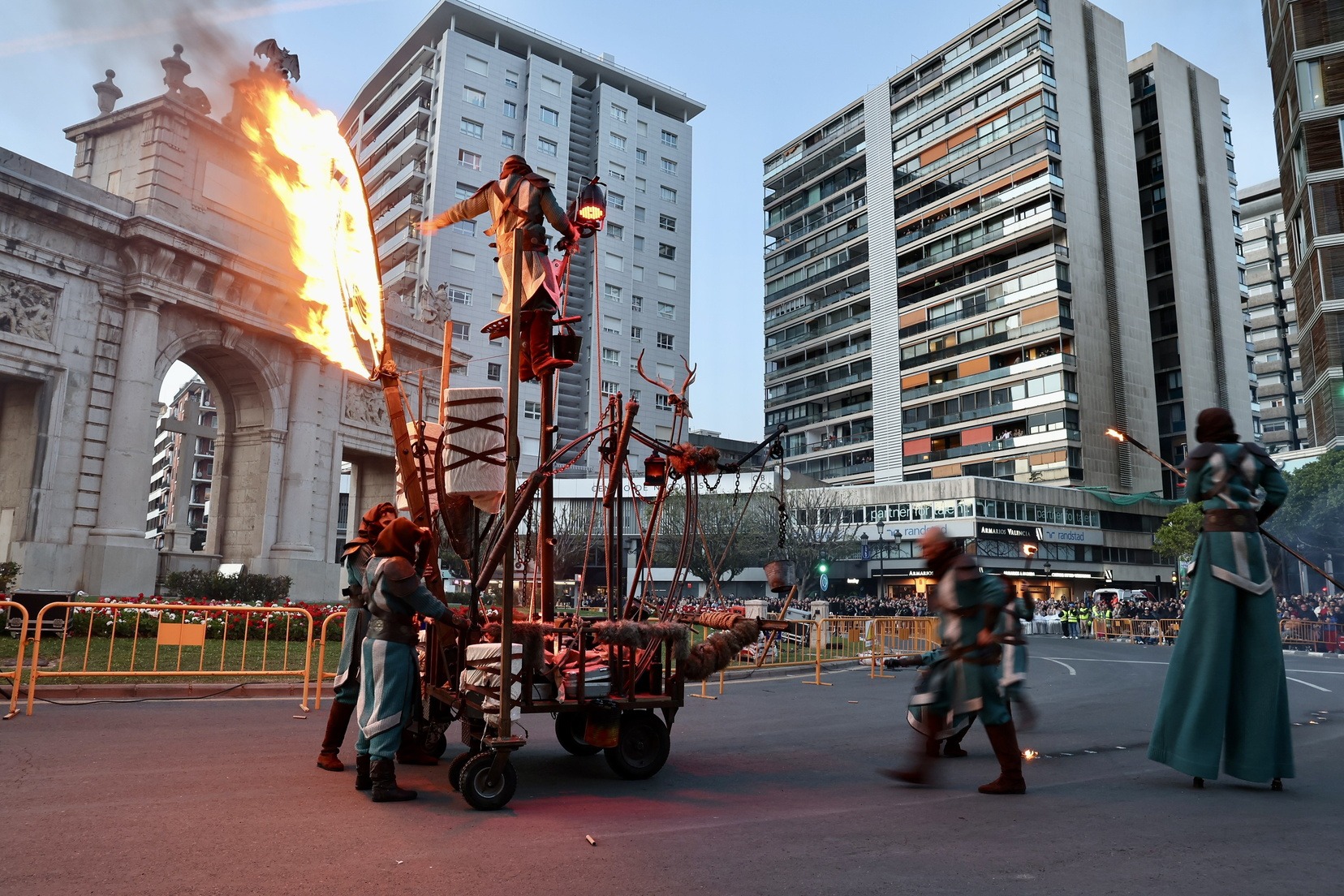Durant la desfilada, els assistents han pogut disfrutar d’un espectacle ple de simbologia i tradició, on el foc, element central de la festivitat, ha cobrat un protagonisme especial. També ha comptat amb música i actuacions que han delectat als milers d’espectadors que s’han congregat pels carrers per a admirar este esdeveniment únic. El fermall d’or l’ha posat l’espectacle de Pirotècnia Vulcano a la Porta de la Mar, en el que s’han disparat 50 kg de pólvora.