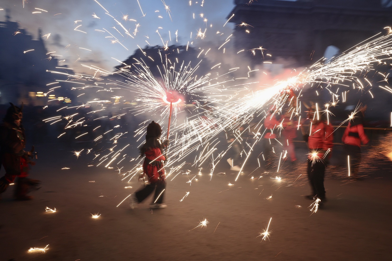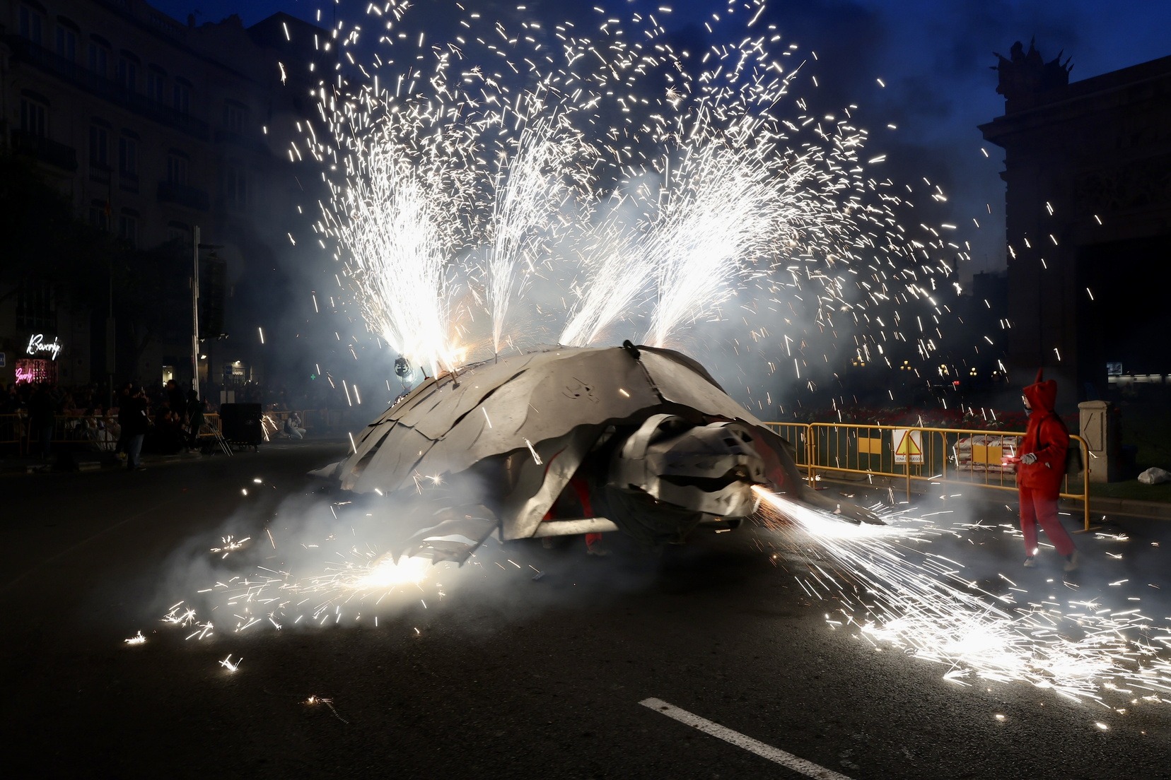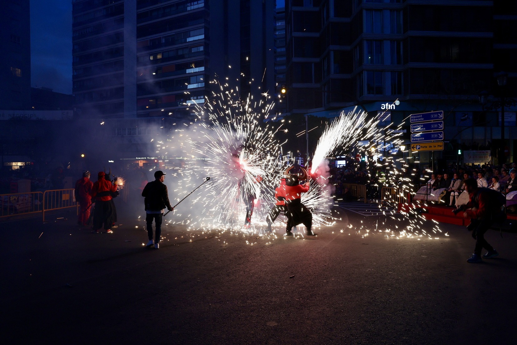 La Cavalcada del Foc, que ha començat a les 19.00 hores, ha recorregut les principals artèries del centre de la ciutat, iniciant el seu trajecte al carrer de la Pau i culminant a la Porta de la Mar.