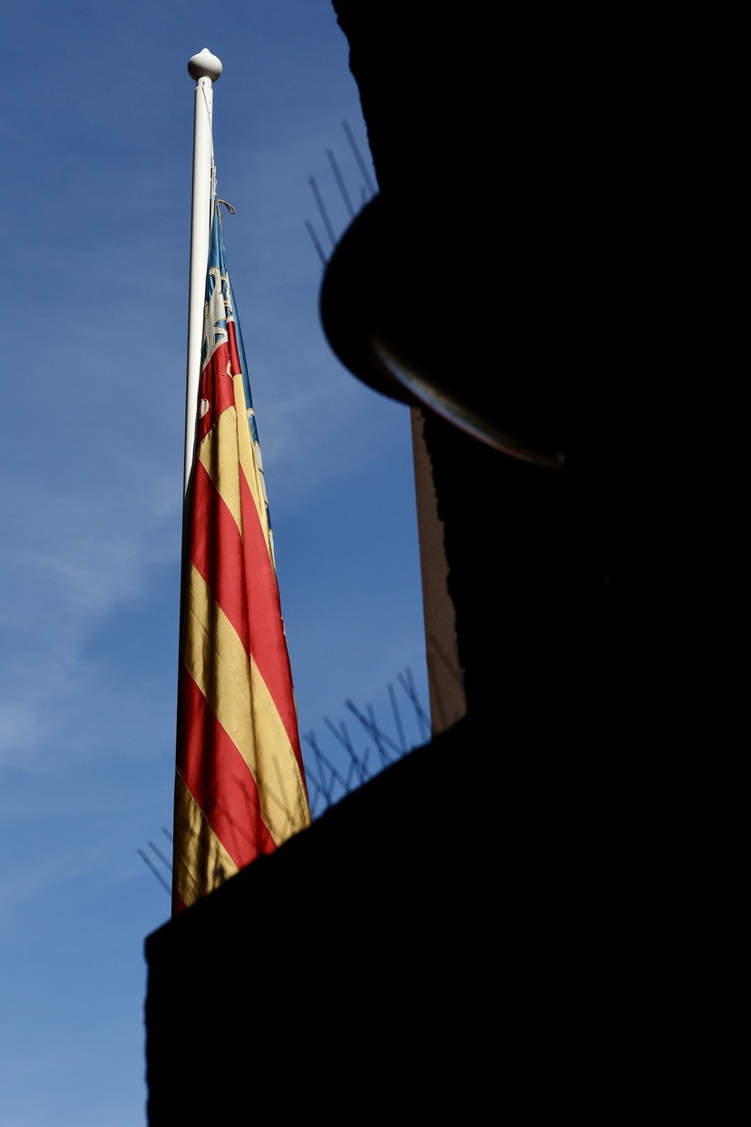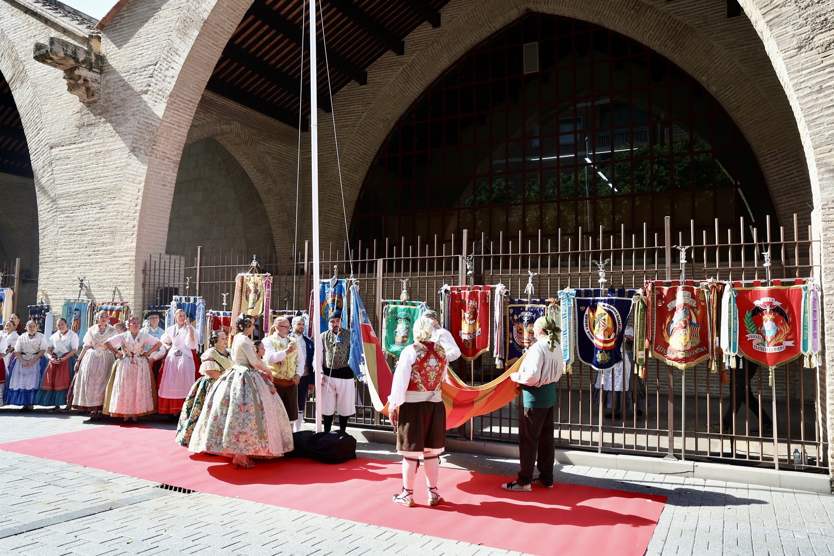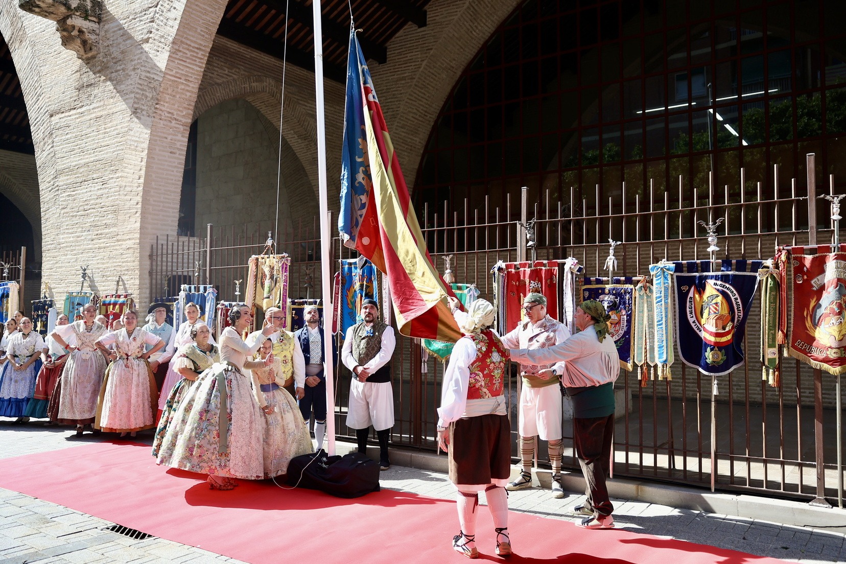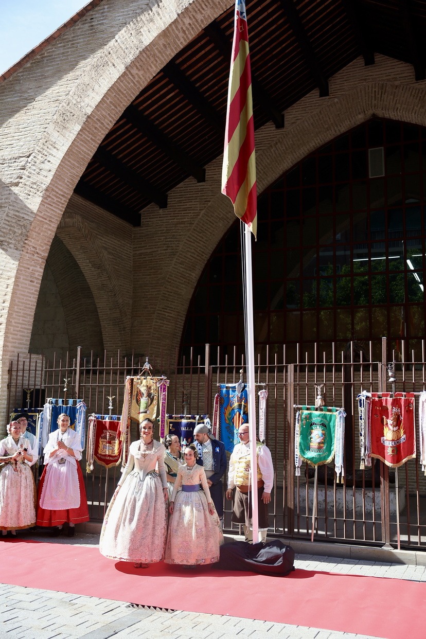 Una vegada arribada la Reial Senyera a les emblemàtiques Drassanes, ha sigut hissada per les Falleres Majors de València, Carmen Prades i Marta Mercader, en un moment de gran solemnitat i emoció compartida per tots els assistents.