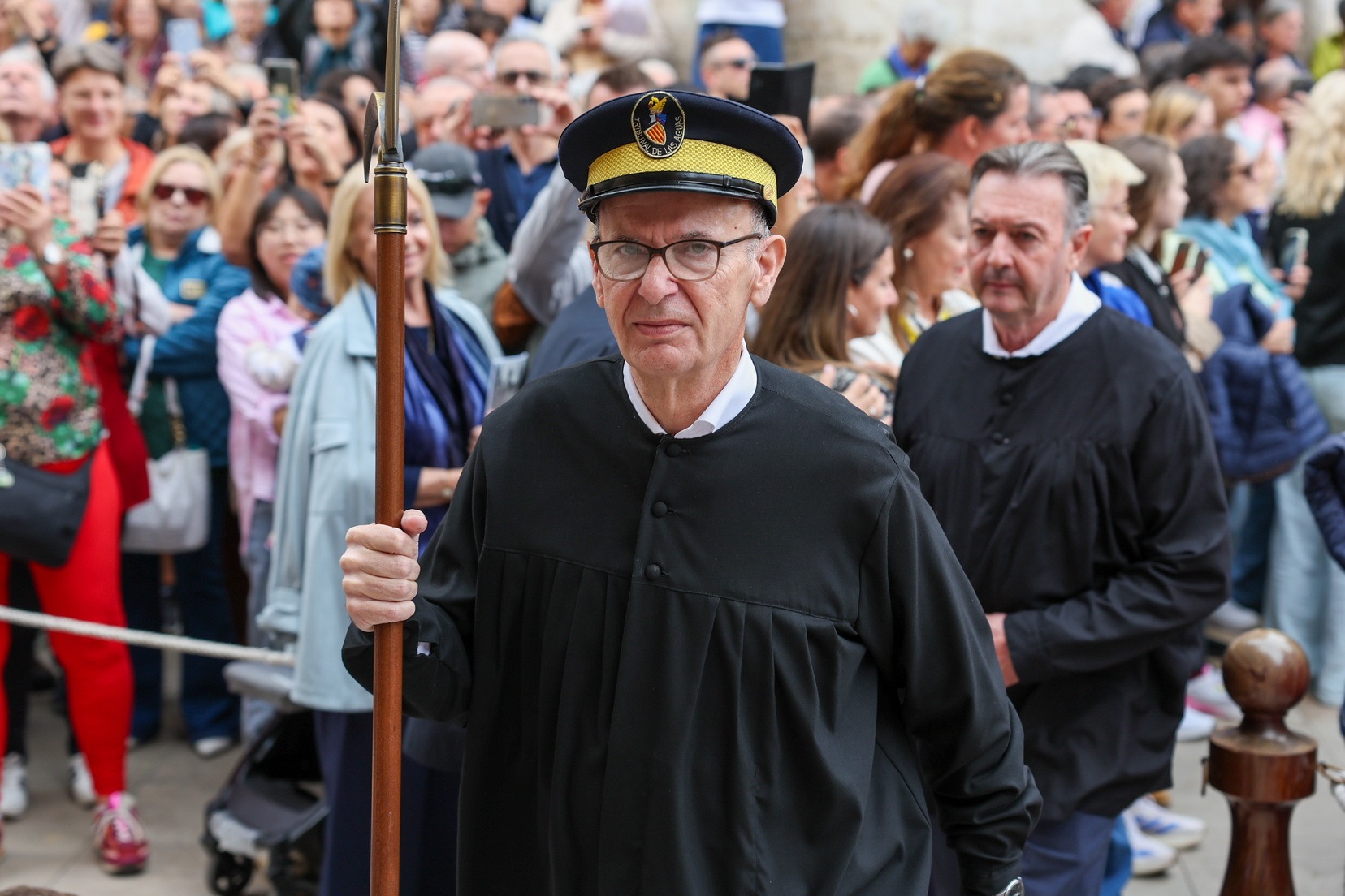 Les Falleres Majors de València, Carmen Prades i Marta Mercader, han realitzat este matí una visita institucional al Tribunal de les Aigües, un dels òrgans jurisdiccionals més antics d’Europa i declarat Patrimoni Cultural Immaterial de la Humanitat per la UNESCO l’any 2009.
