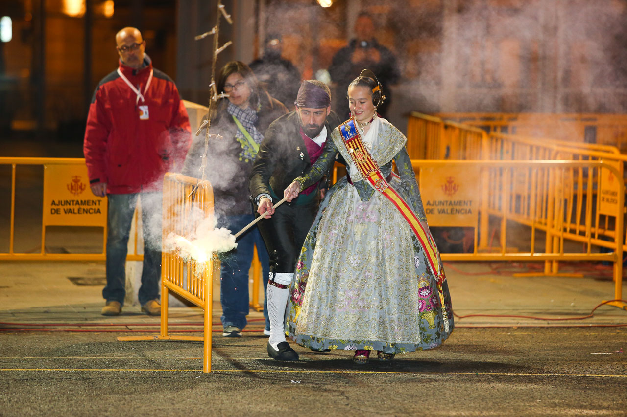 Un asteroide des de l’Ajuntament ha sigut l’encarregat de donar peu a este emotiu acte La Fallera Major Infantil de València, Daniela Gómez, va ser l’encarregada d’encendre la cremà de la falla municipal infantil el passat 19 de març, a càrrec de la pirotècnica Reyes Martí. A les 23 hores va engegar la metxa de la traca amb ajuda del Regidor de Cultura Festiva i President de Junta Central Fallera, Pere Fuset, i davant l’atenta mirada de la seua Cort d’Honor i de les autoritats presents. Lucía Burguete, Regina Infantil de la Magdalena de Castelló, i Martina Núñez, Bellesa Infantil del Foc d’Alacant també van estar acompanyant a les tretze nenes.