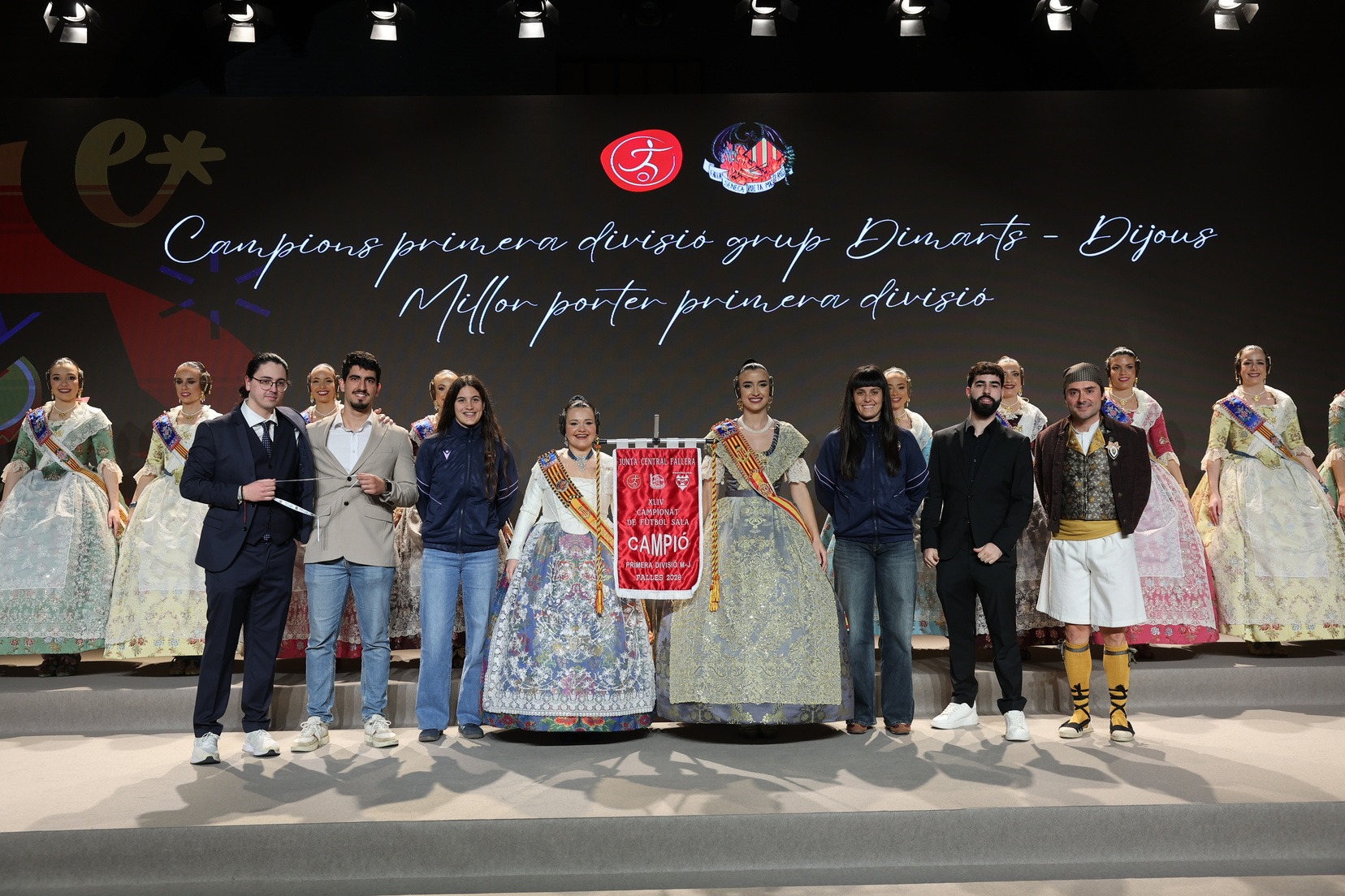 La Fallera Major de València, Carmen Prades, acompanyada per la seua Cort d’Honor, ha presidit l’acte i, a més, ha sigut l’encarregada d’entregar les banderoles i trofeus a les jugadores i jugadors i a les comissions guanyadores. Al costat d’elles, a més, patrocinadors i jugadors professionals de l’esport valencià, que no han volgut faltar a esta cita de reconeixement a l’esforç dels més de 5.000 fallers i falleres esportistes.