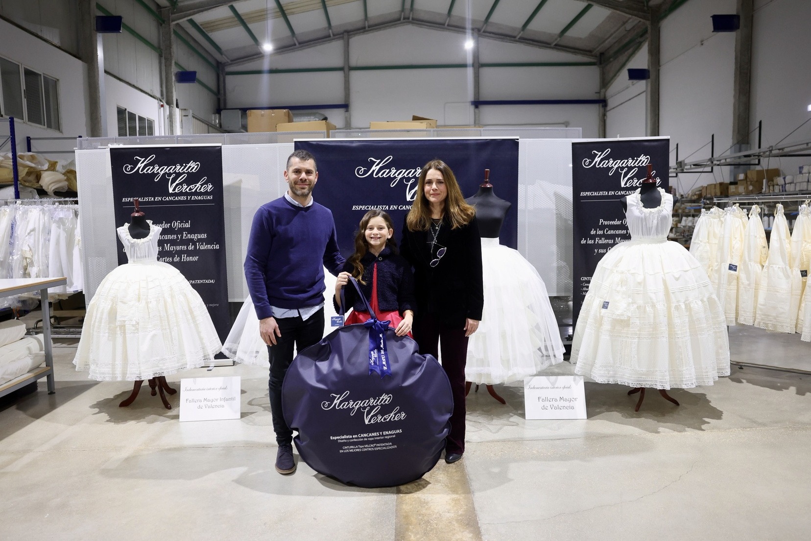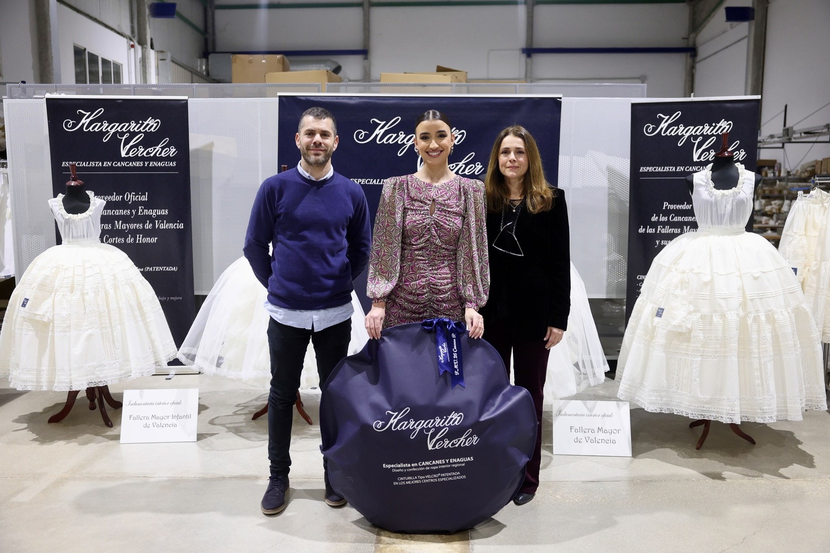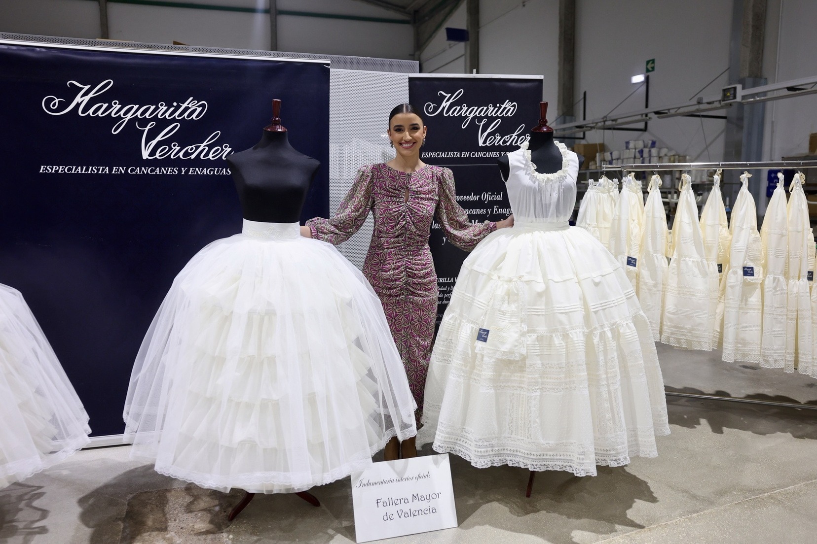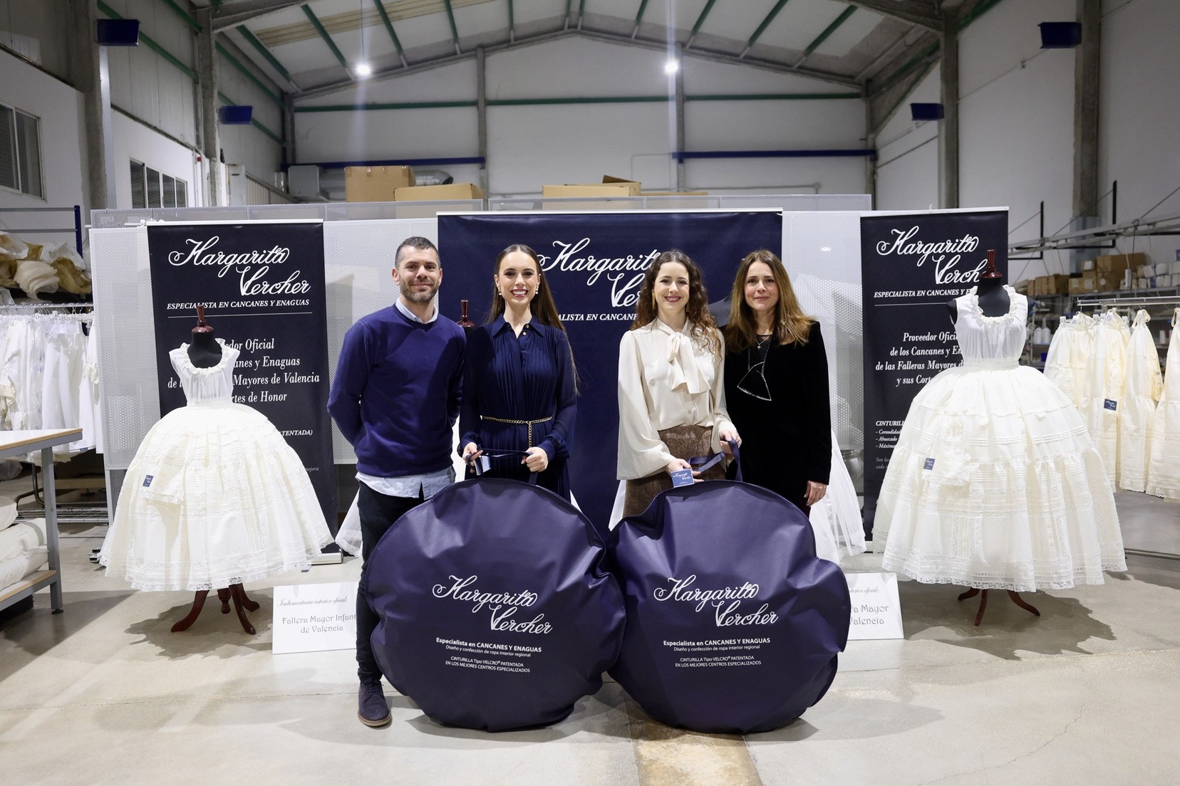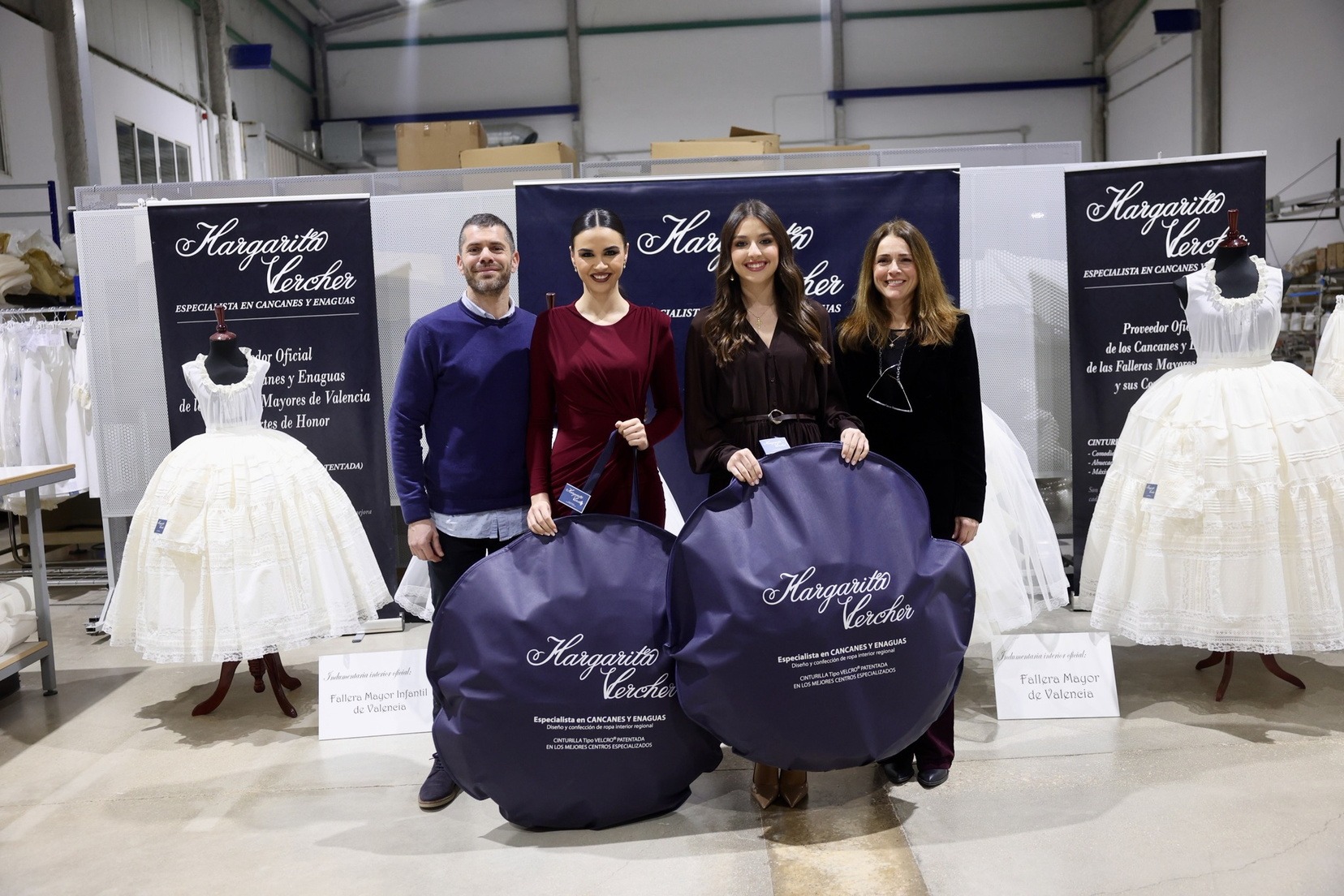 La firma Margarita Vercher ha realitzat l’entrega oficial dels cancans del primer vestit a les Falleres Majors de València i a les seues Corts d’Honor, en un acte que ha suposat un pas fonamental en la preparació de la indumentària que lluiran al llarg del seu exercici.