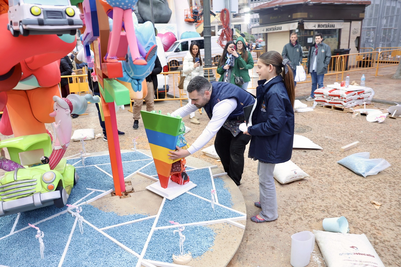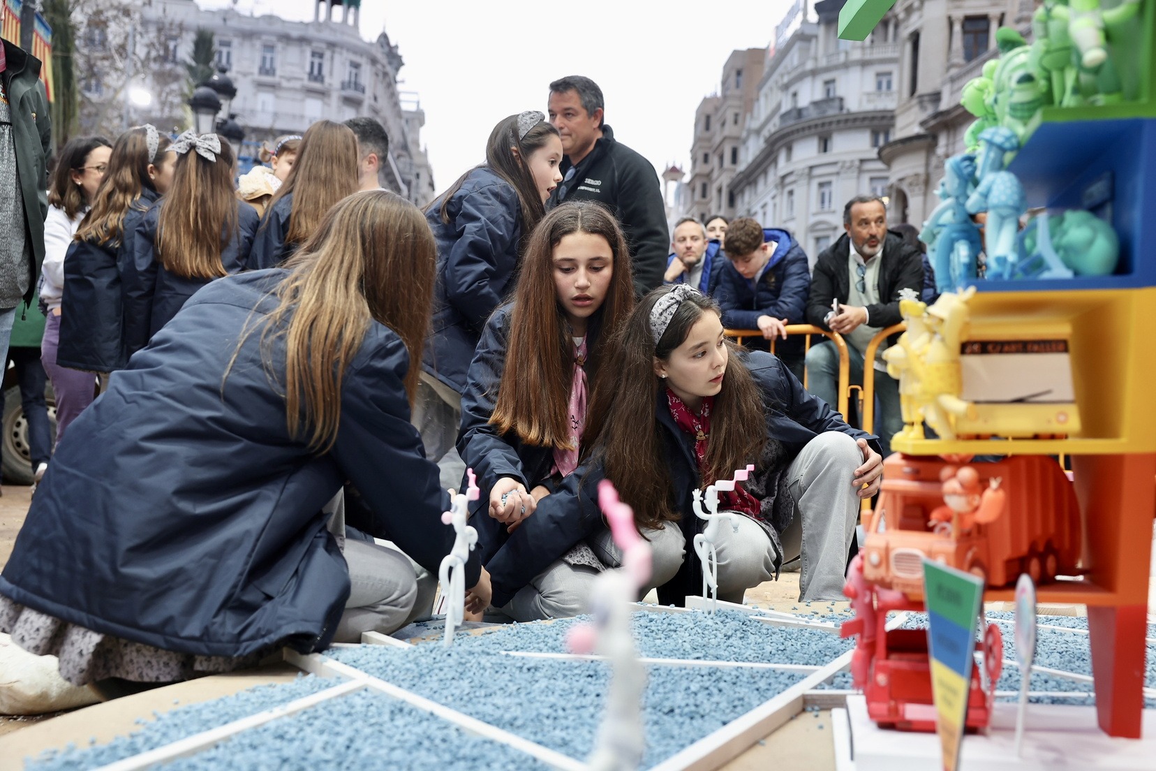 Després de la lectura del ninot indultat infantil i la posterior recollida del ninot municipal infantil, que forma part de la falla ‘València és mou’ de Mario Pérez, la Fallera Major de València, Marta Mercader, i la seua Cort d’Honor, s’han dirigit a la Plaça de l’Ajuntament per al començament de la Plantà de la seua falla.