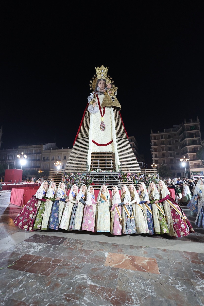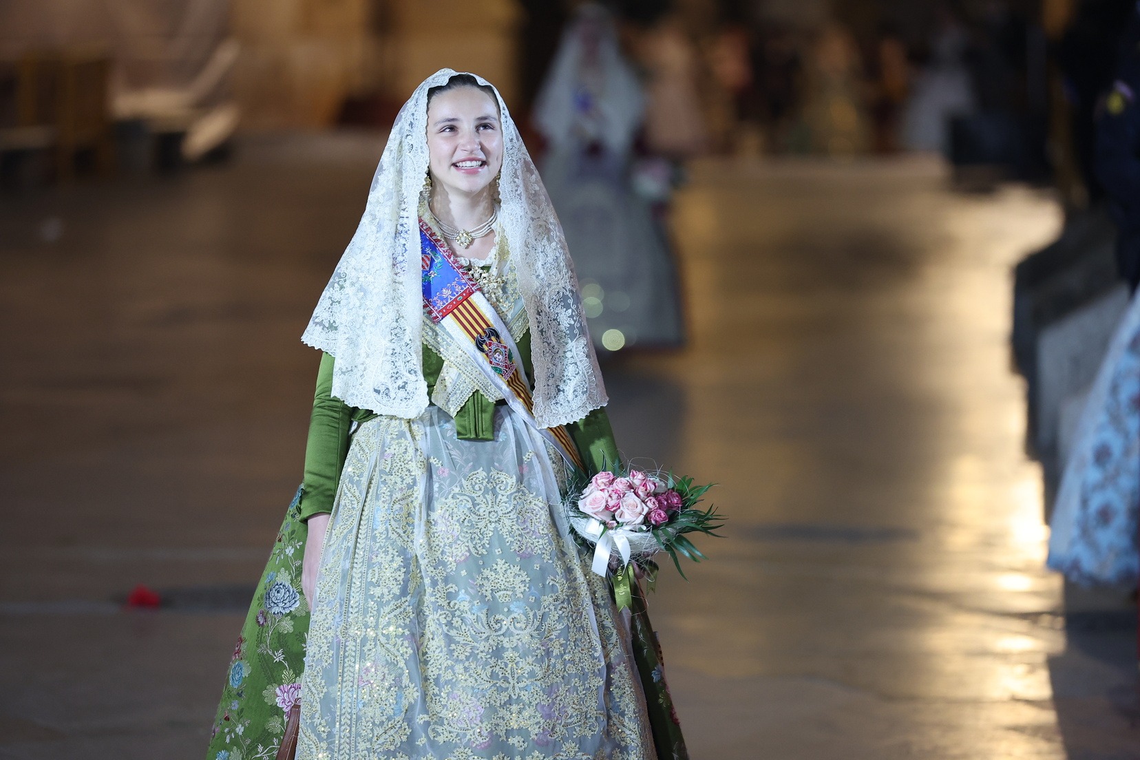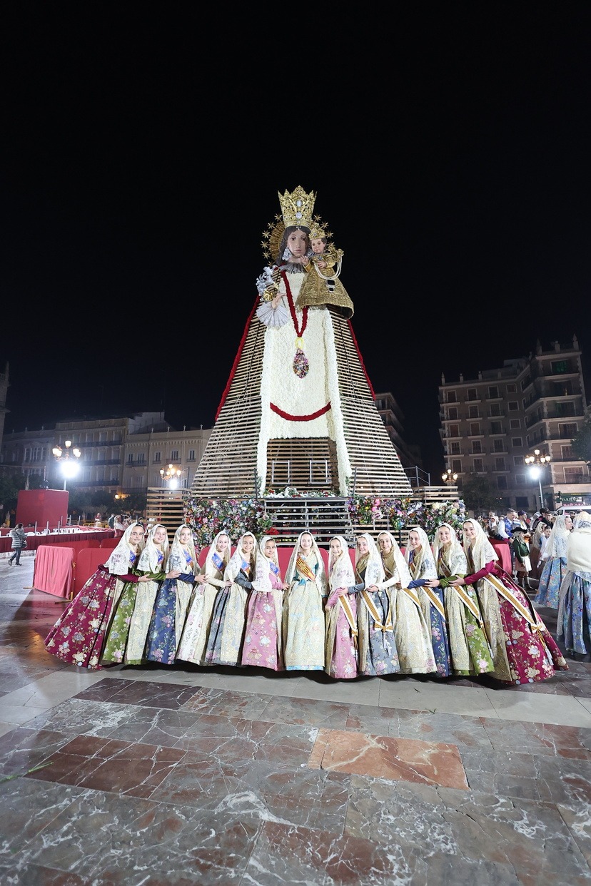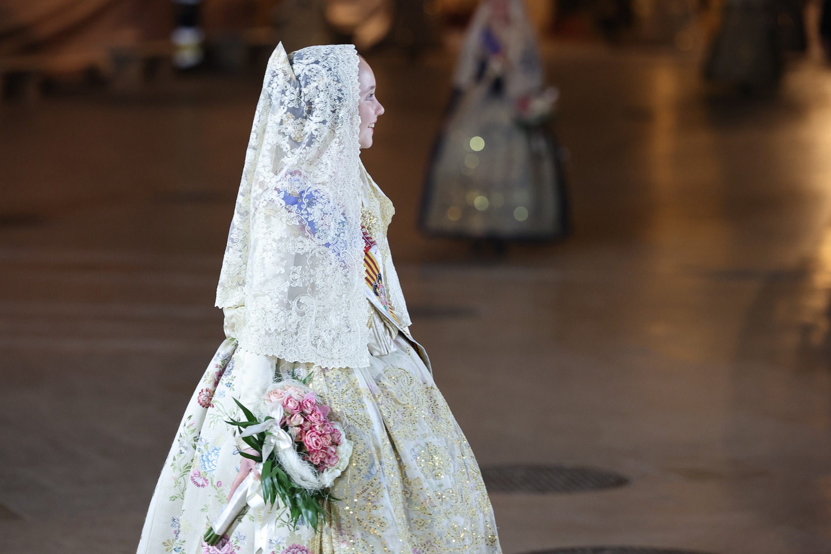 Desenes de persones les esperaven somrients per a aplaudir-les i les tretze xiquetes més afortunades d’este 2026 han pogut portar-li flors i fer les seues peticions a la Mare de Déu, que les esperava en la Plaça amb el mantell  prou avançat en haver rebut milers de rams durant la jornada del 17 de març.