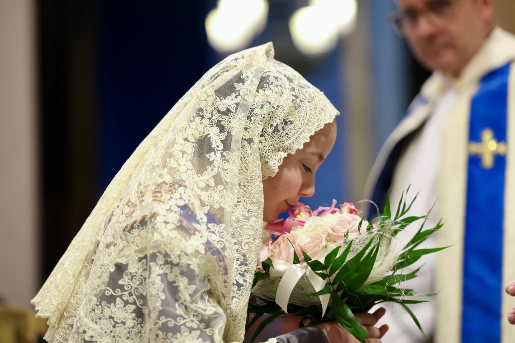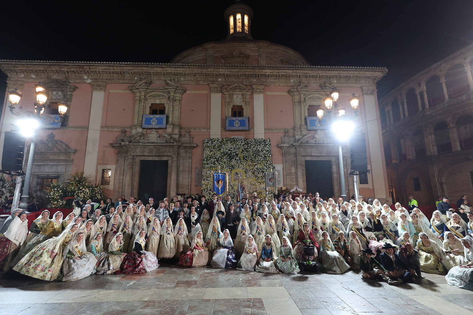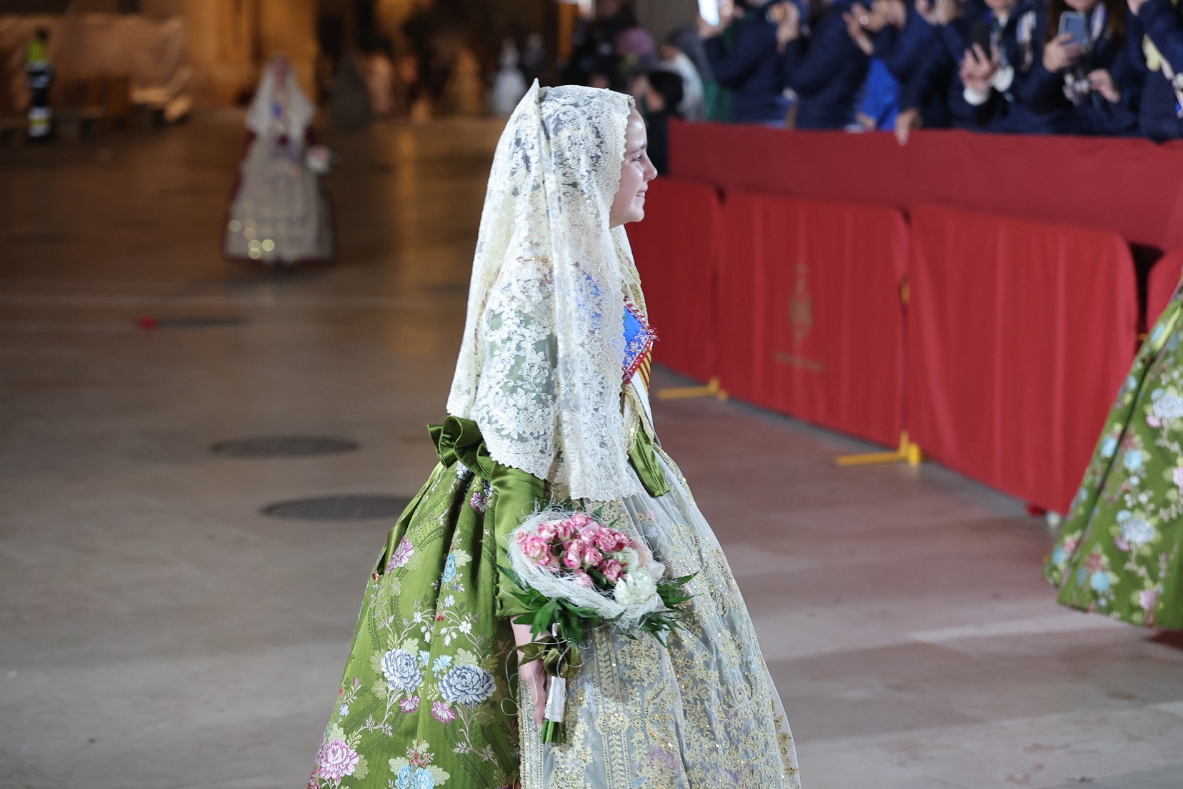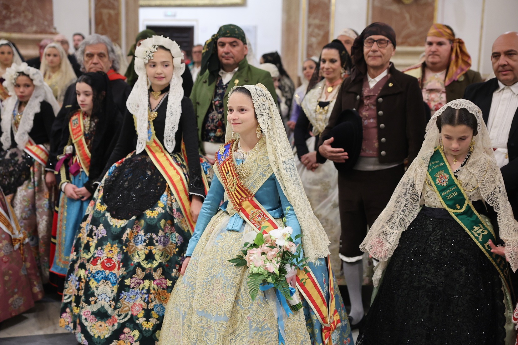 Desenes de persones les esperaven somrients per a aplaudir-les i les tretze xiquetes més afortunades d’este 2026 han pogut portar-li flors i fer les seues peticions a la Mare de Déu, que les esperava en la Plaça amb el mantell  prou avançat en haver rebut milers de rams durant la jornada del 17 de març.