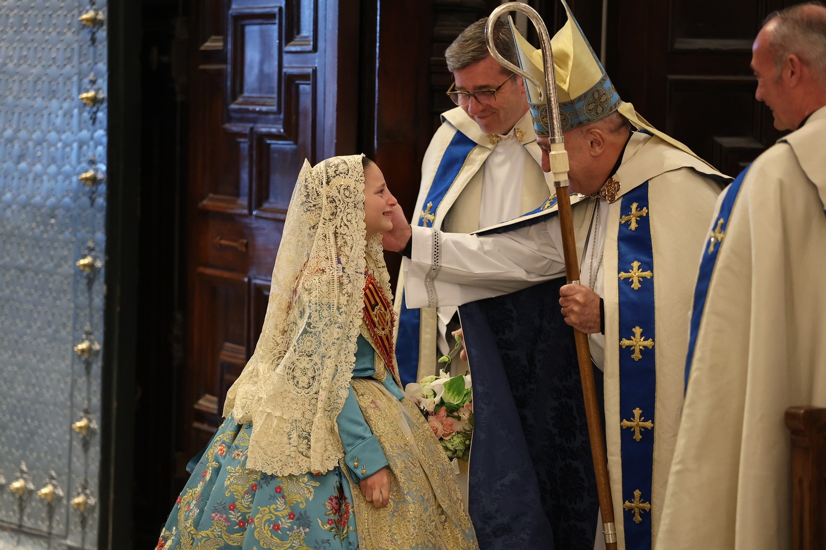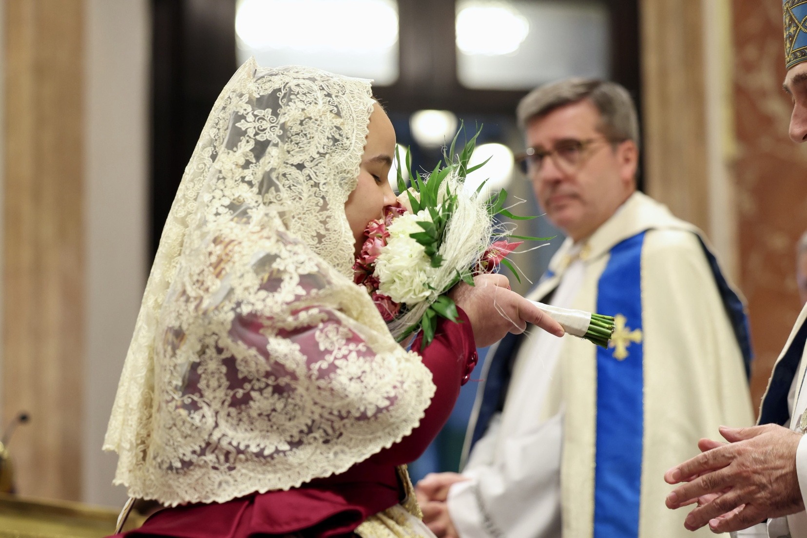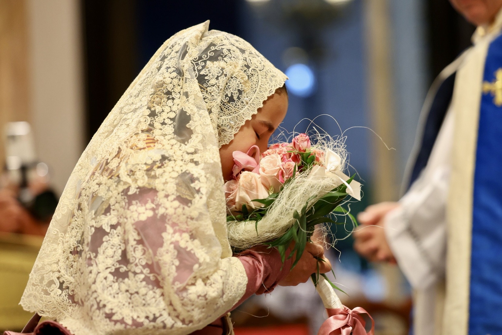Dins de la Basílica, han oferit les seues flors també les representants infantils de Múrcia, Burgos, Alacant i Castelló, així com la mare de Marta.