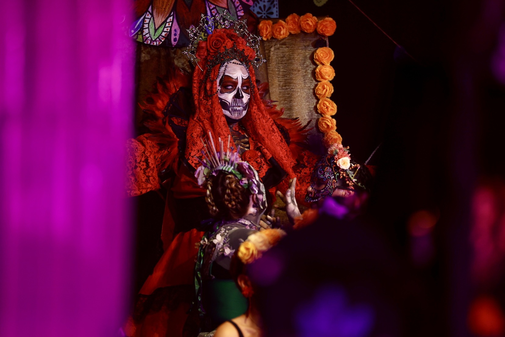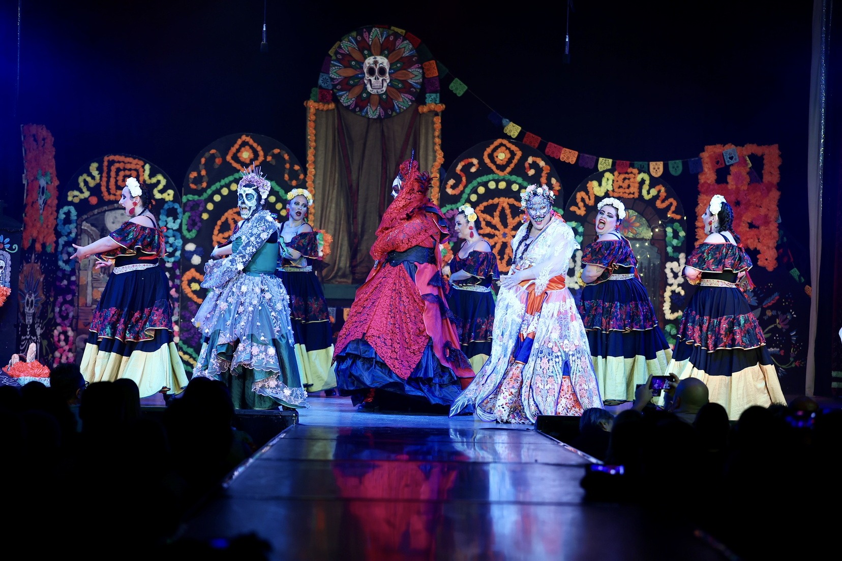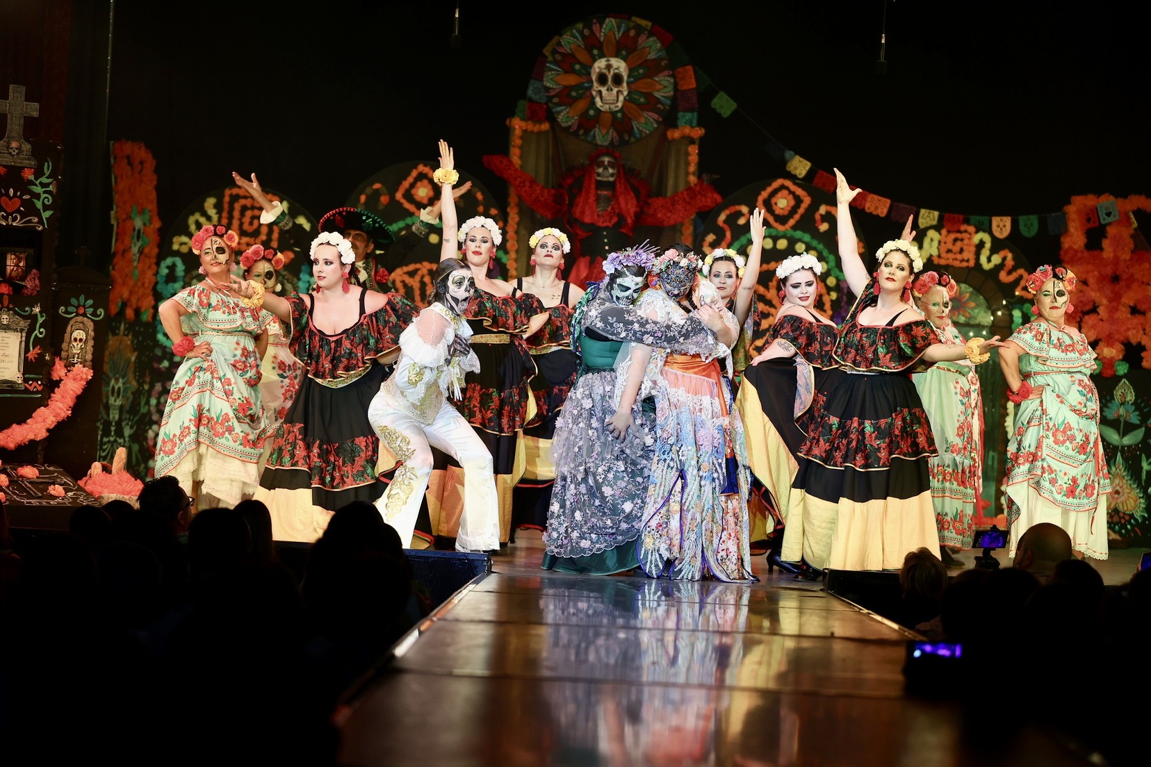 A continuació, la falla Blocs Platja ha presentat “La Flor i la Calavera”, una història d’amor entre Isabel i una catrina, que demana a la Santa Mort poder creuar a l’altre costat. Un relat intens sobre un amor entre dos dones que ni la mort pot separar.
