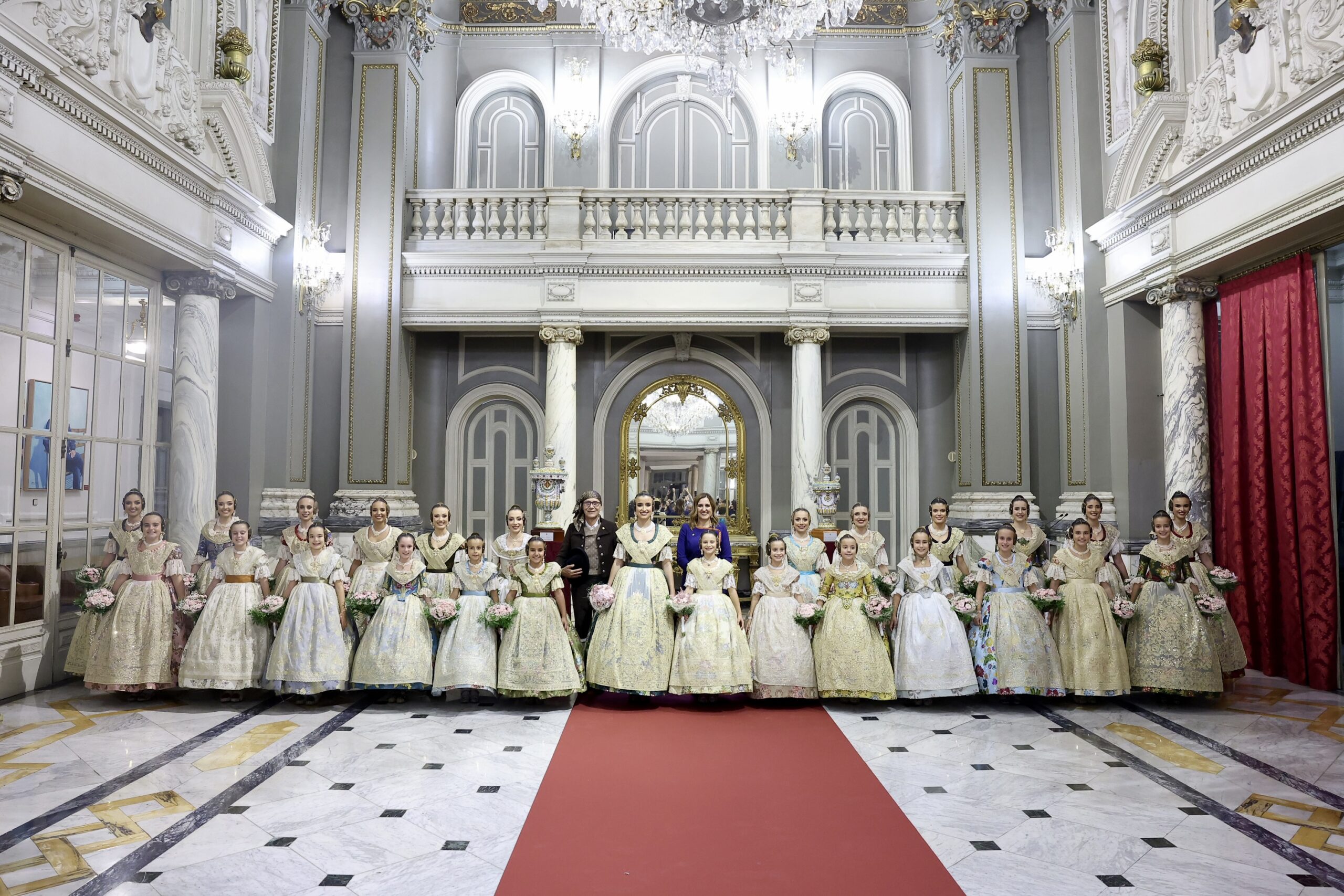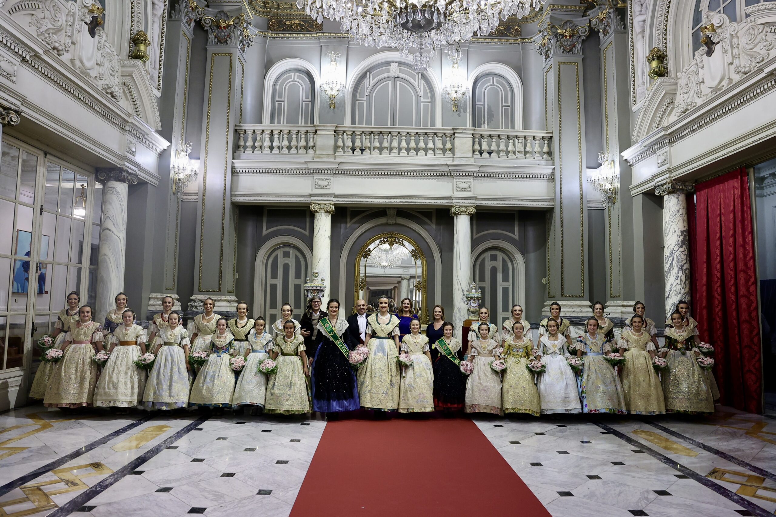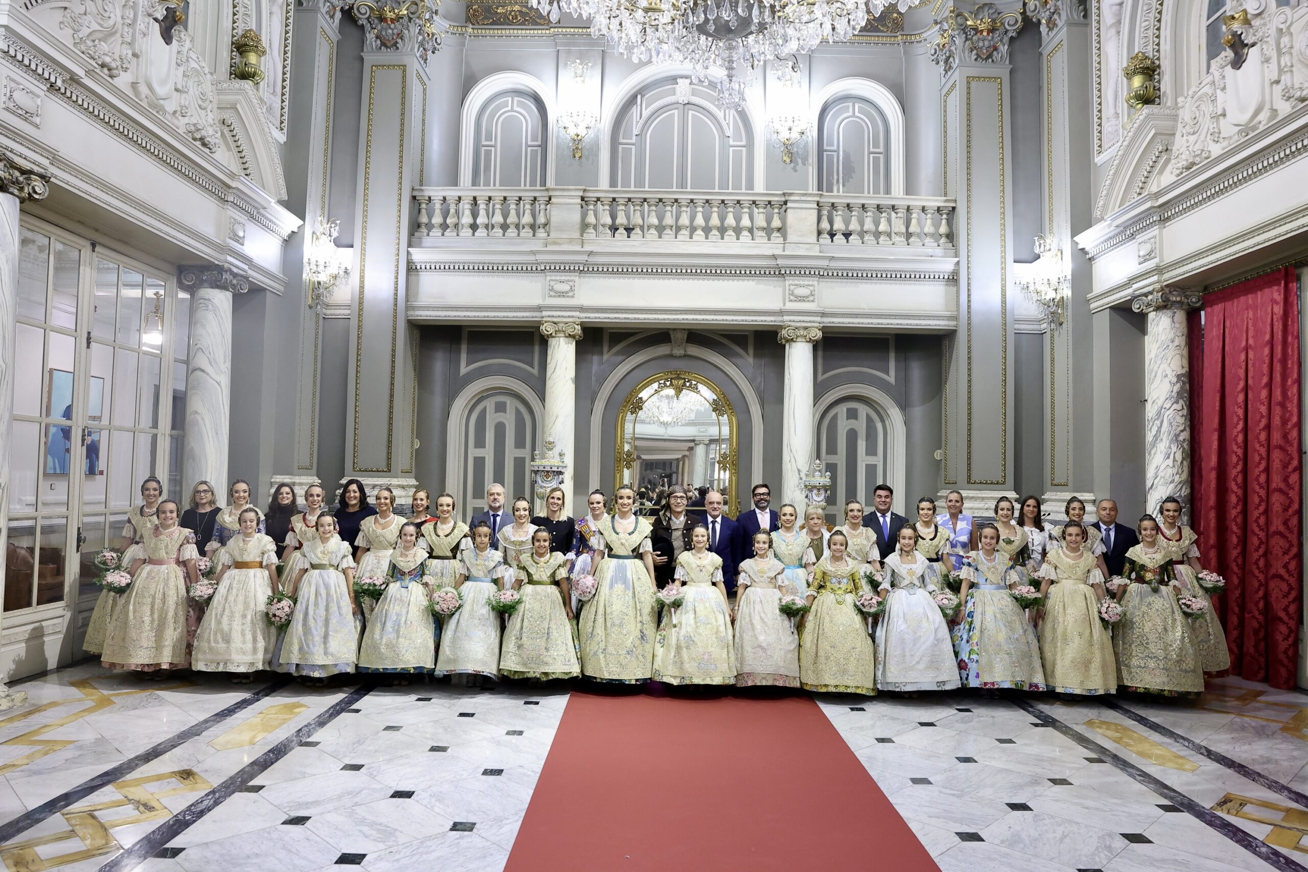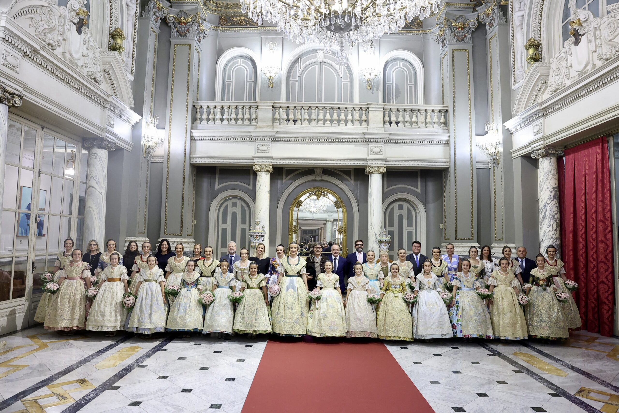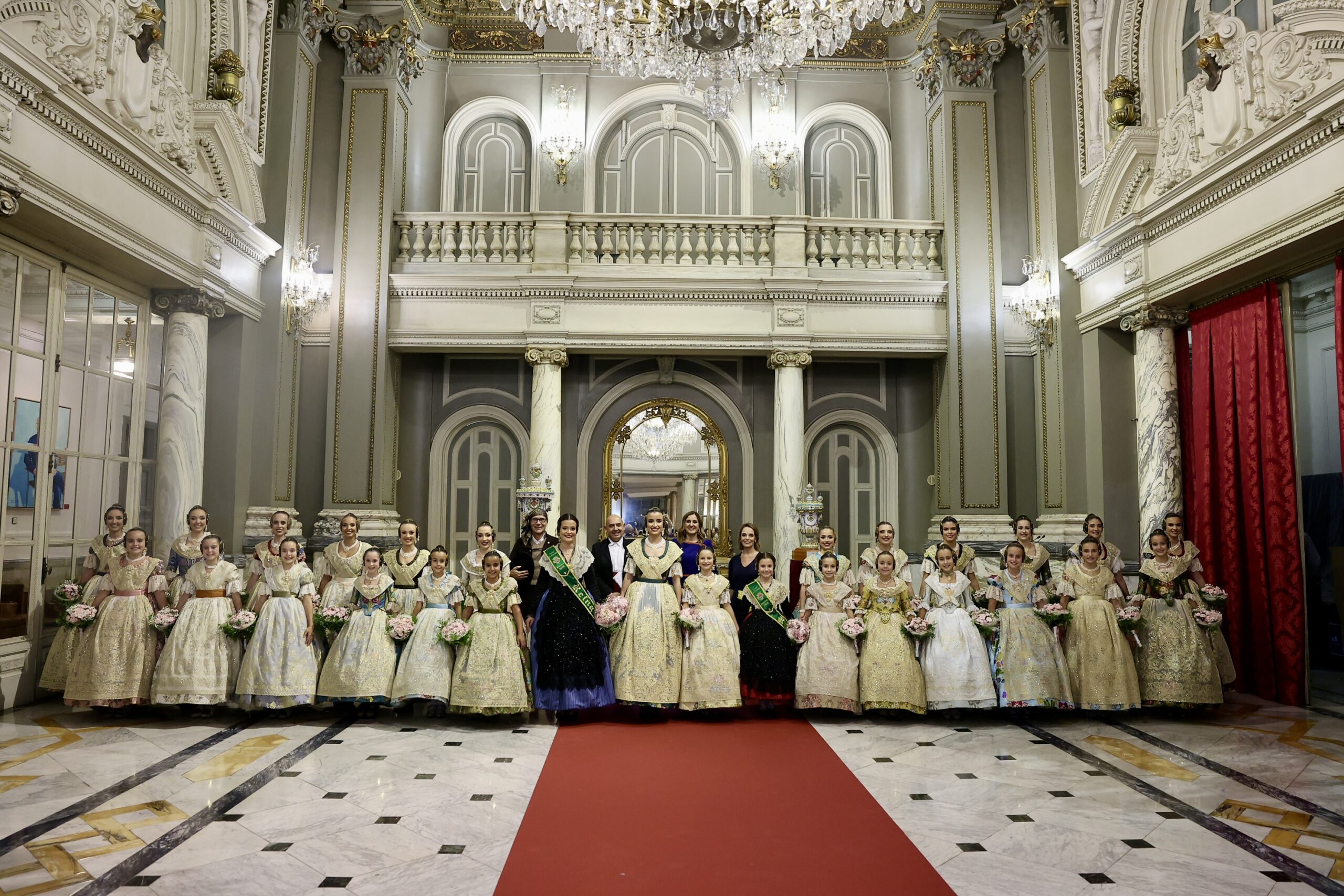 Després s’han realitzat les fotografies oficials de les Falleres Majors de València, Marta Mercader i Carmen Prades, al costat de les seues Corts d’Honor, amb les autoritats i resta de convidats presents.