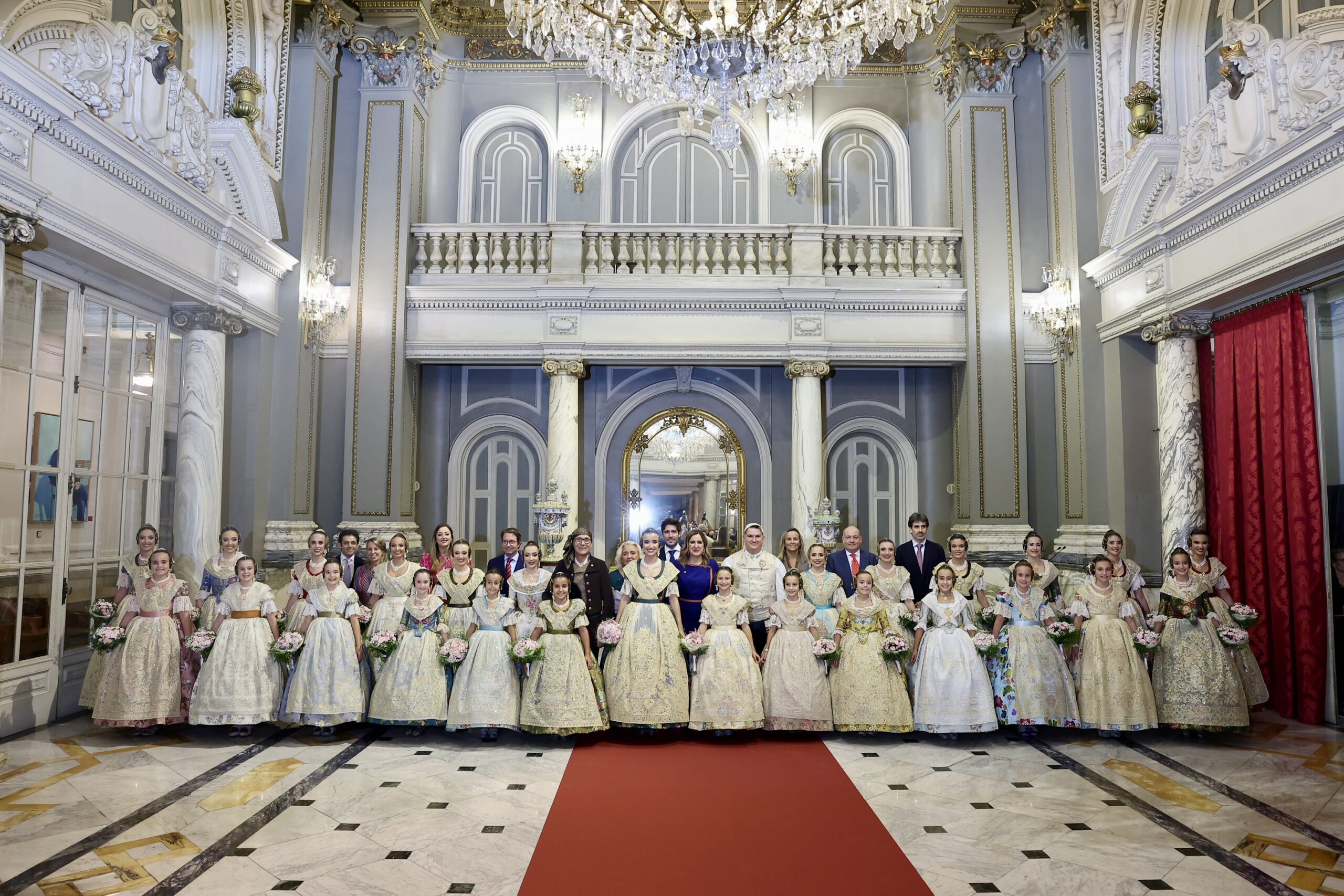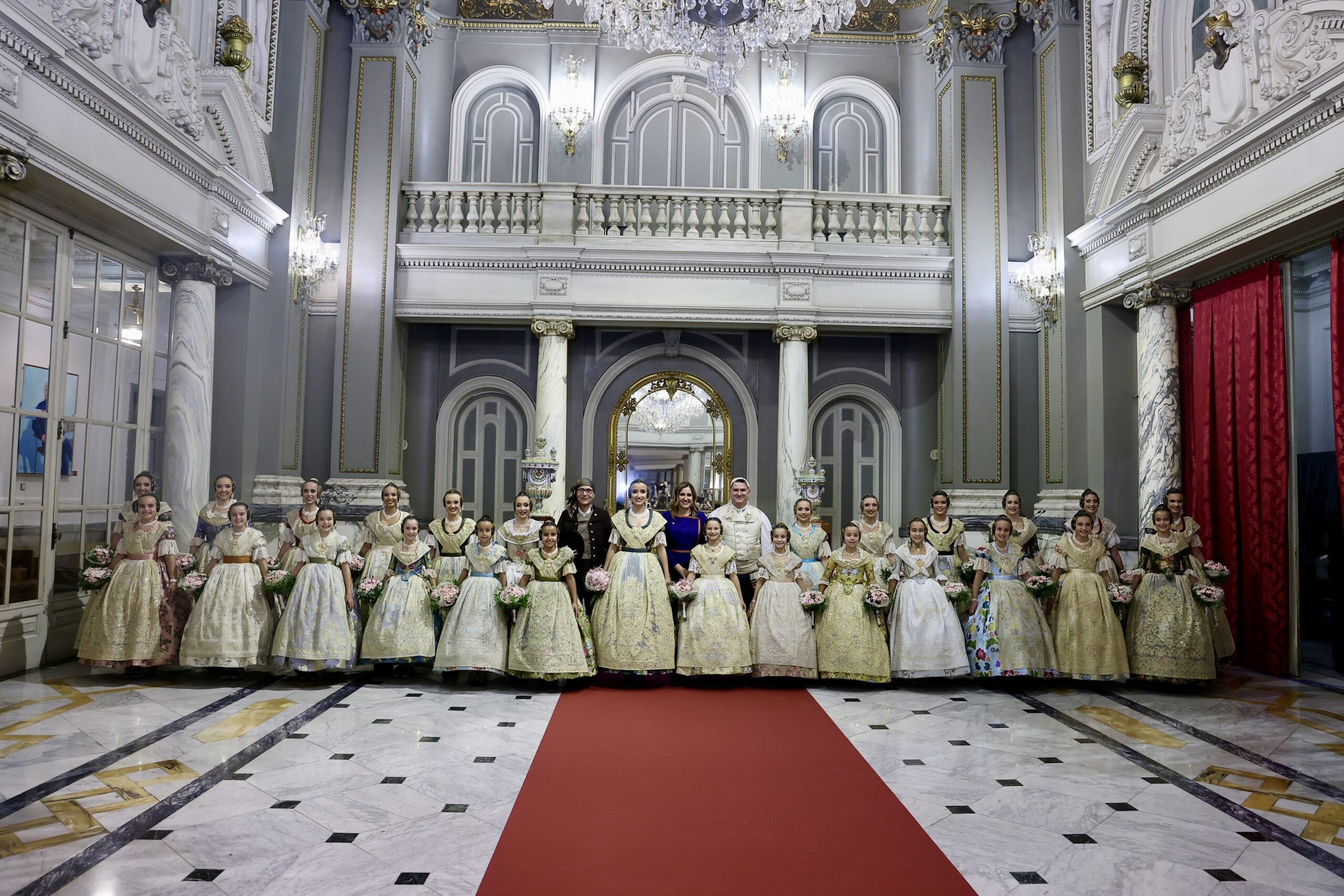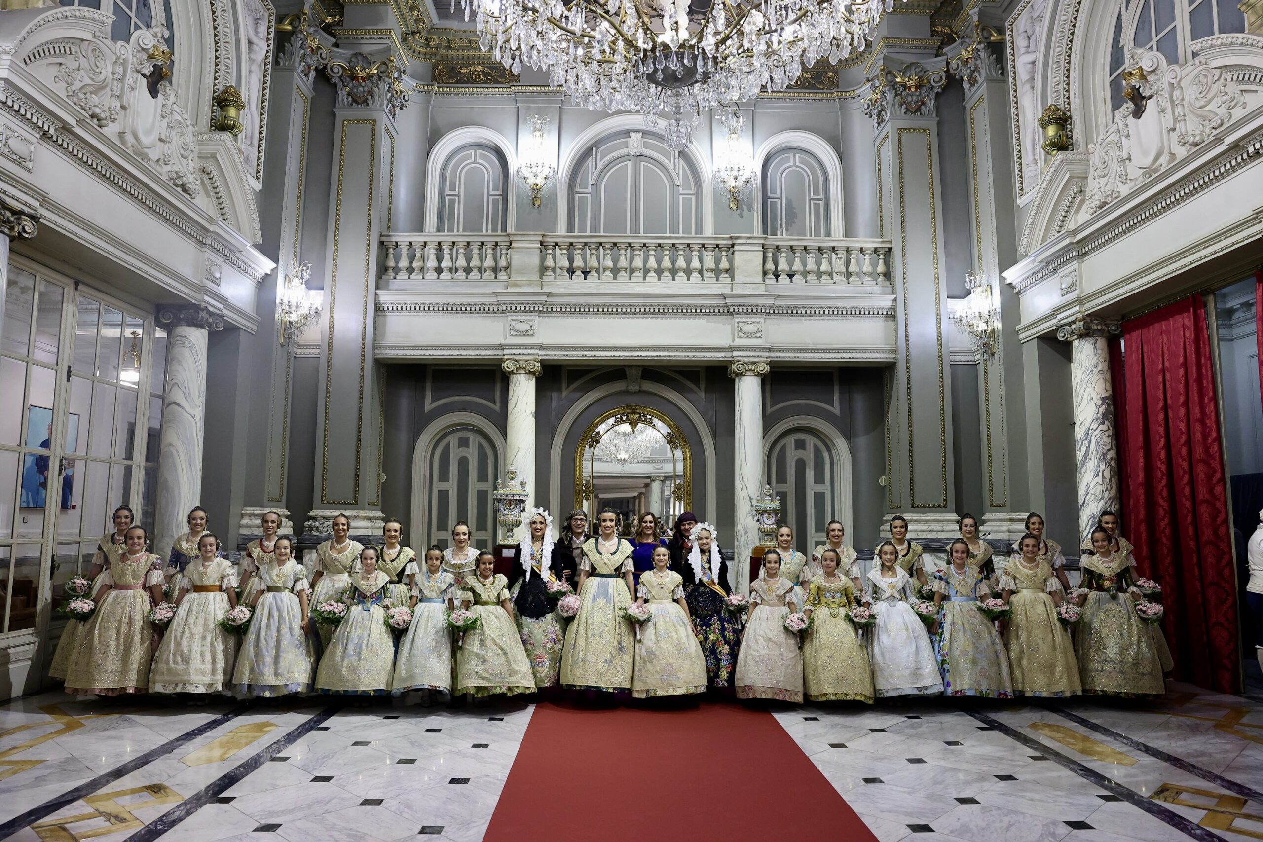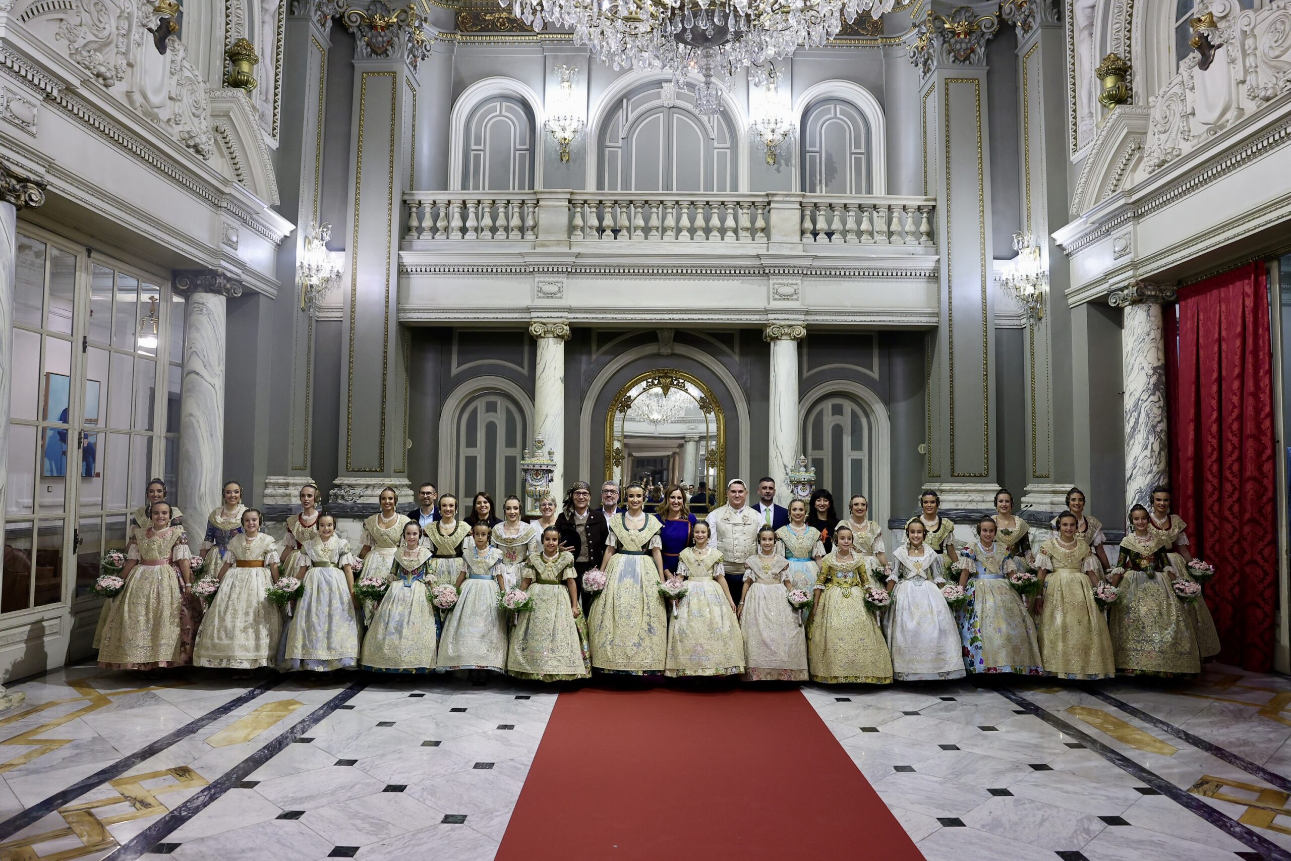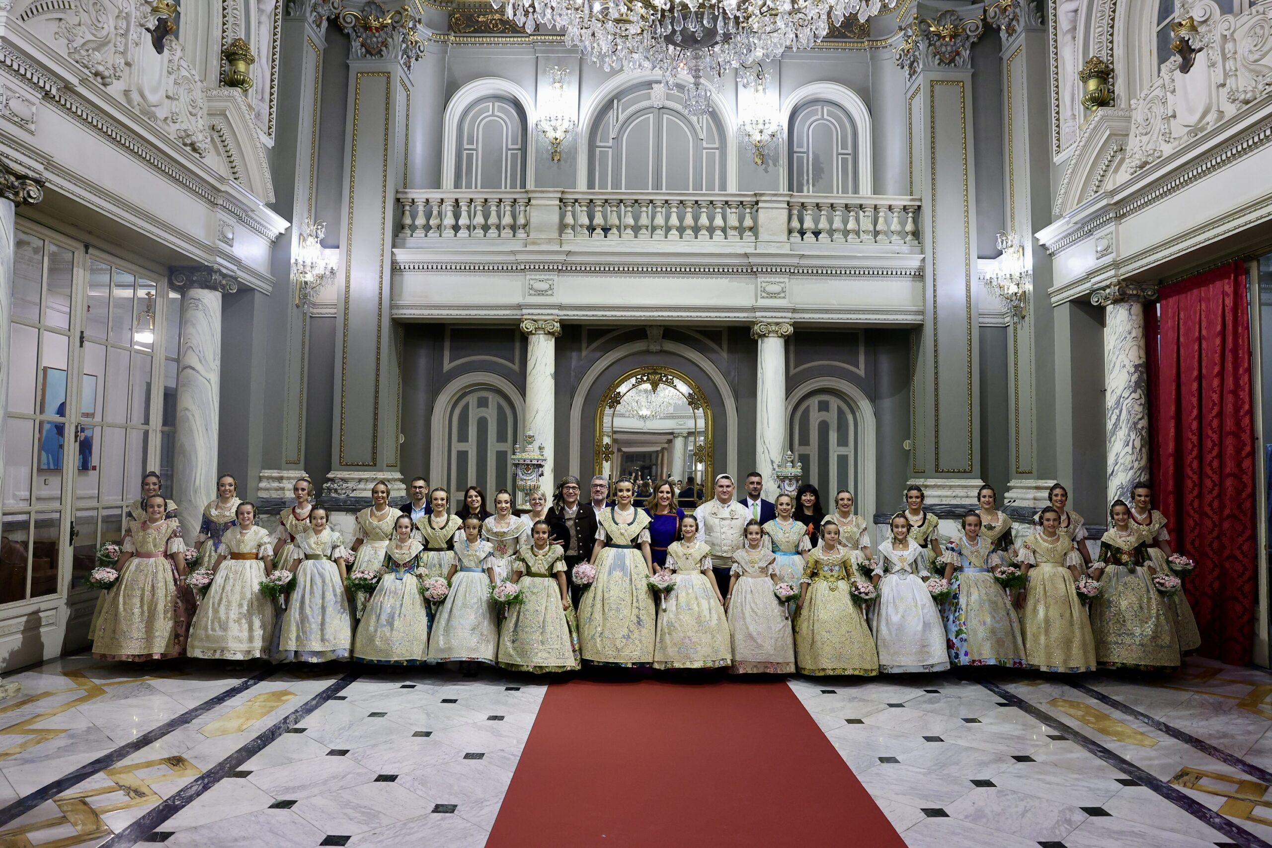 Després s’han realitzat les fotografies oficials de les Falleres Majors de València, Marta Mercader i Carmen Prades, al costat de les seues Corts d’Honor, amb les autoritats i resta de convidats presents.