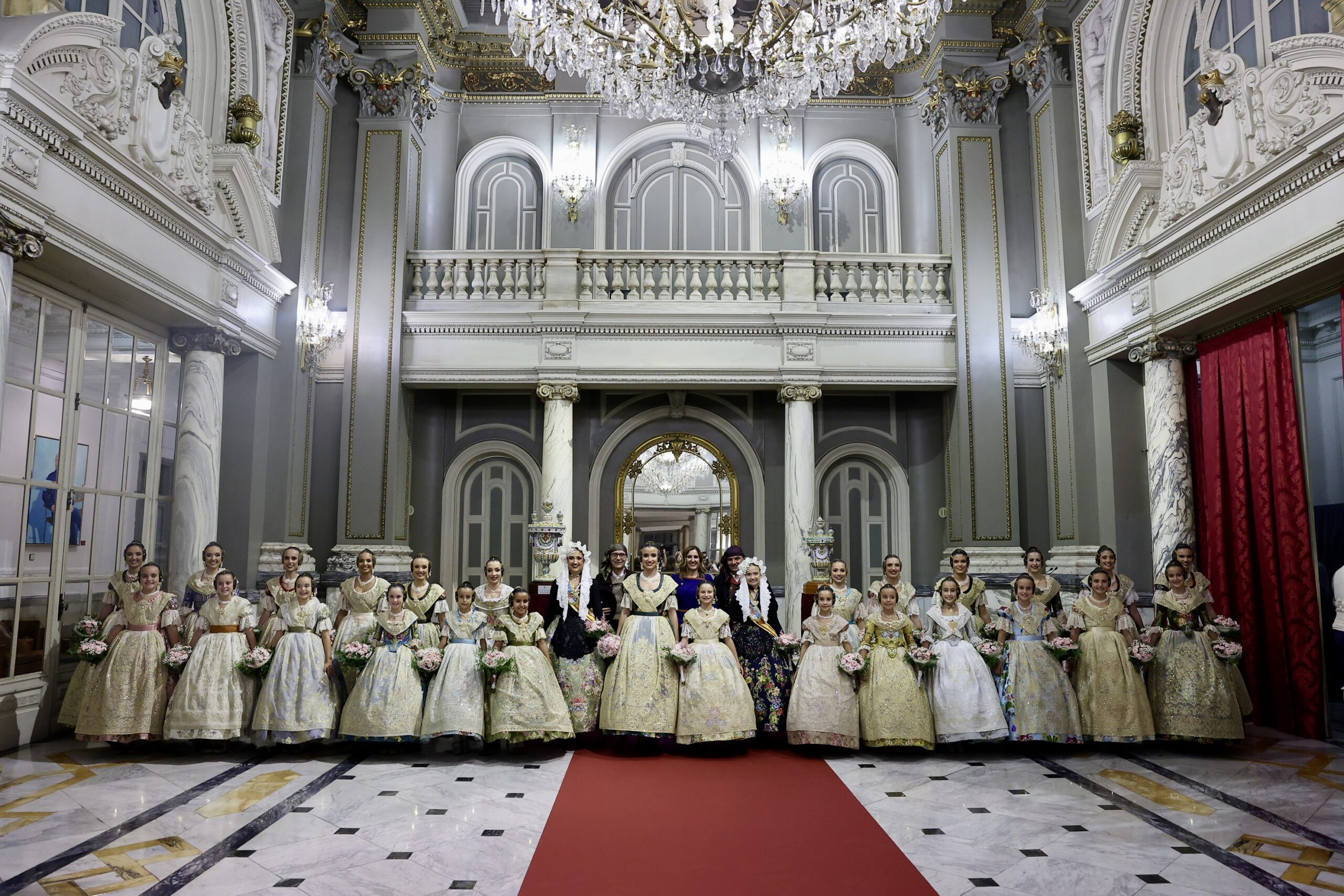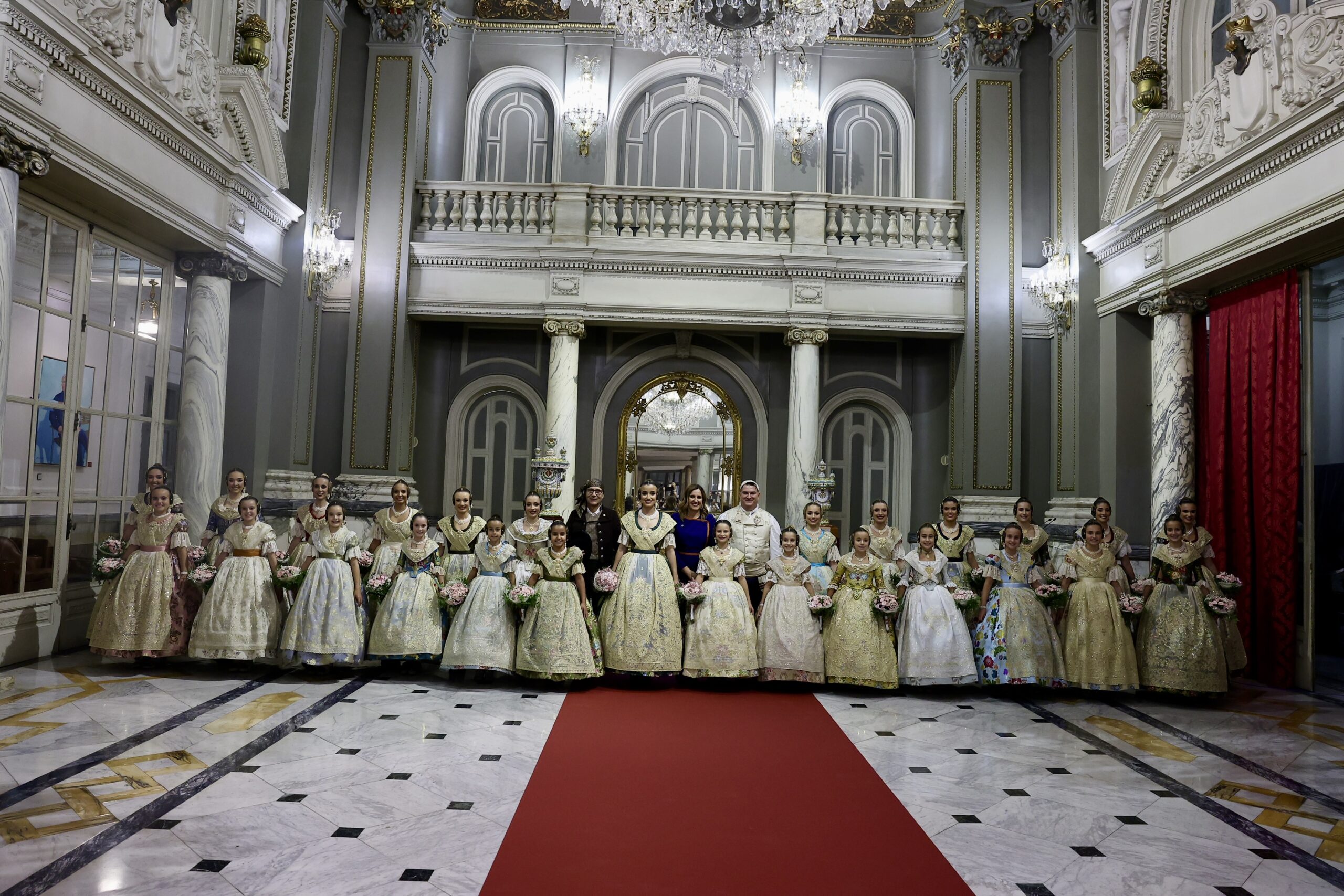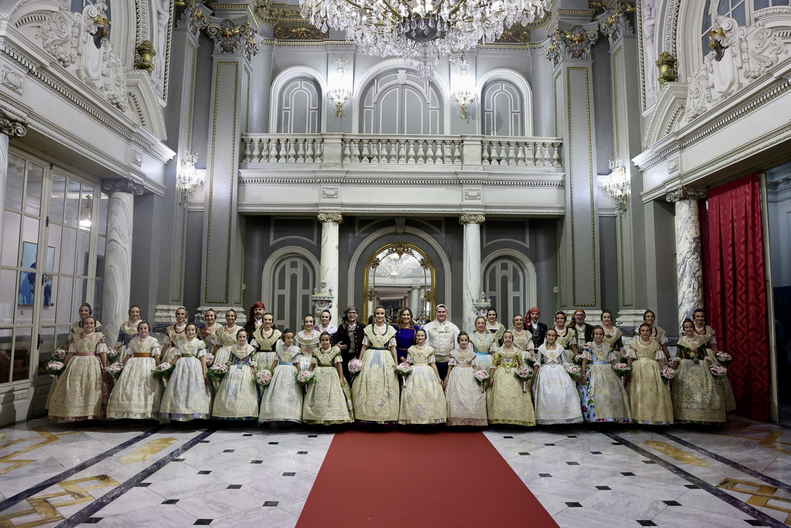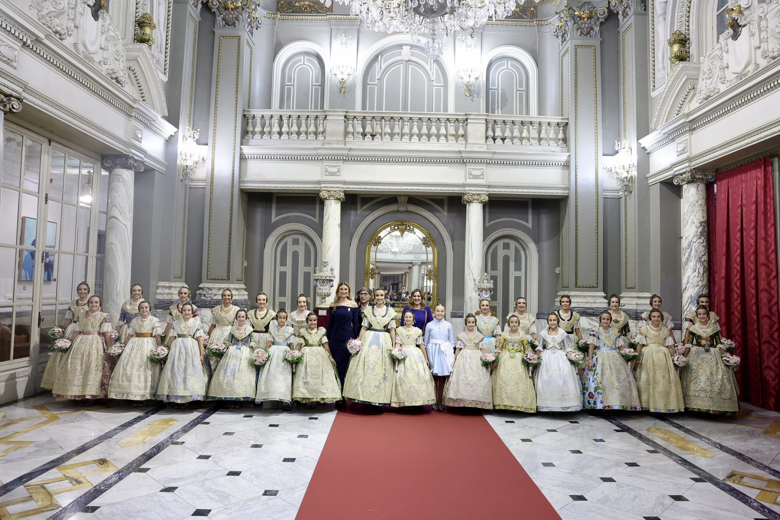 Després s’han realitzat les fotografies oficials de les Falleres Majors de València, Marta Mercader i Carmen Prades, al costat de les seues Corts d’Honor, amb les autoritats i resta de convidats presents.