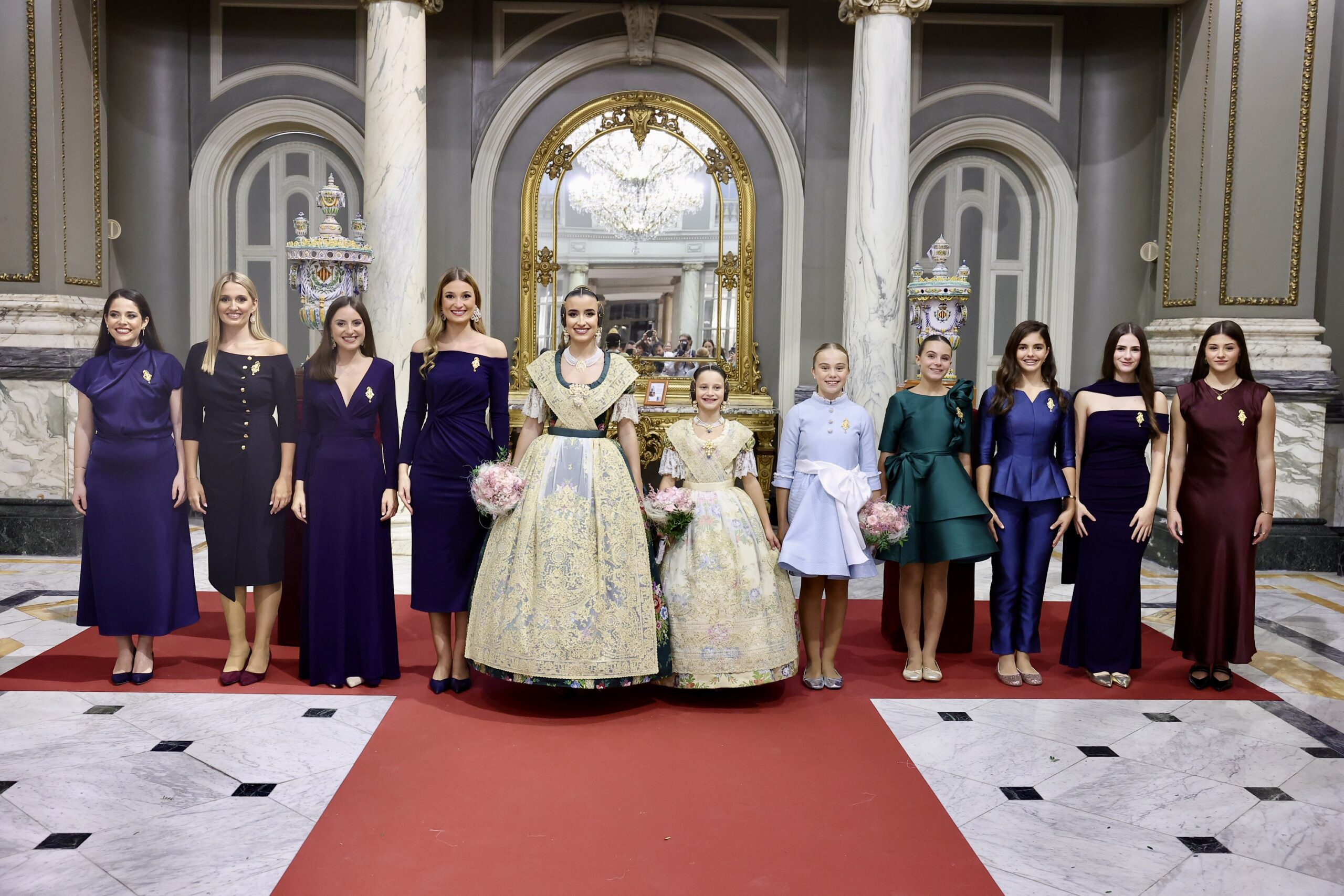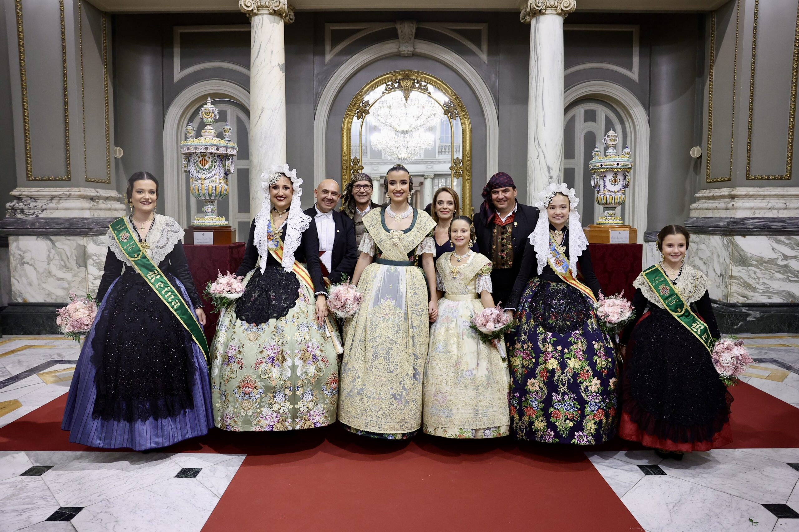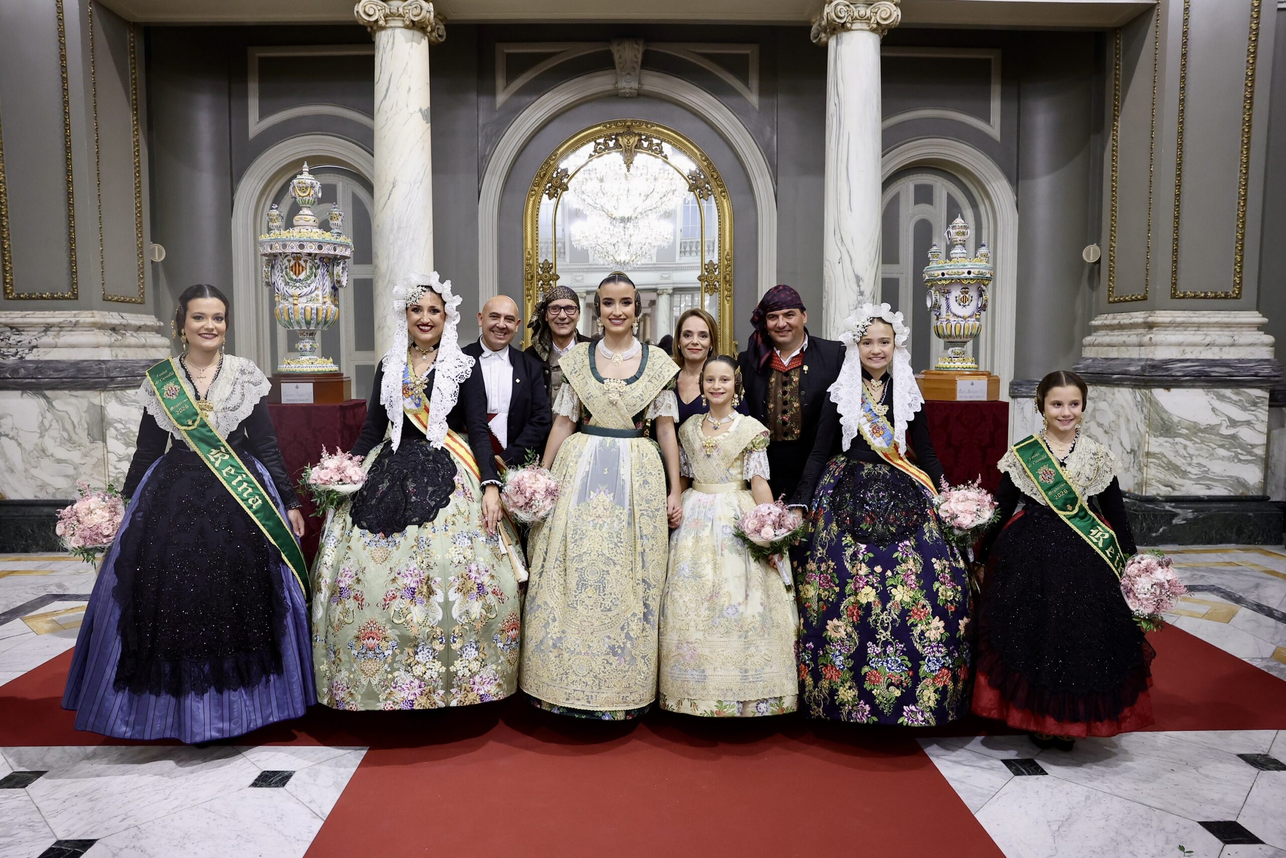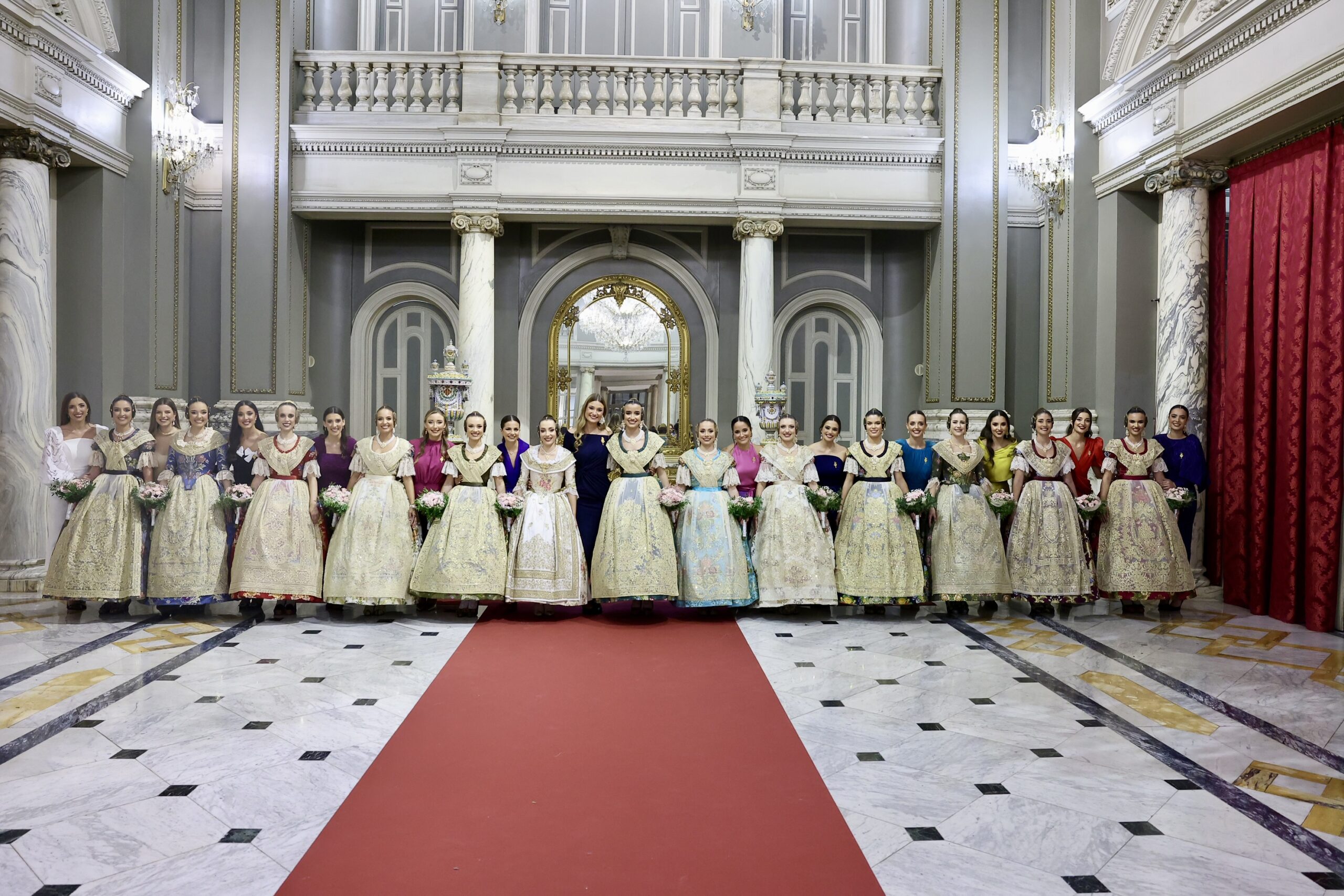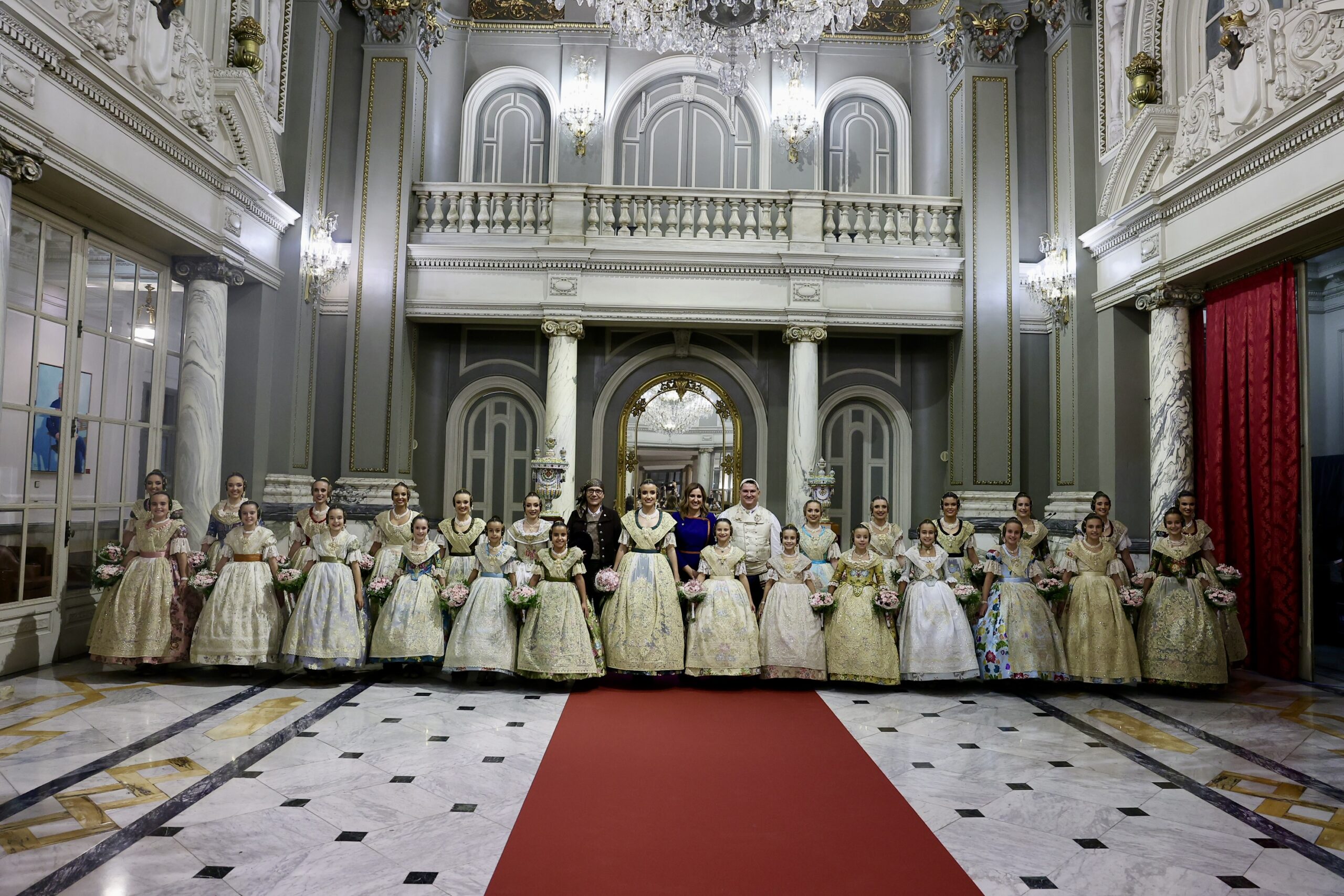 Després s’han realitzat les fotografies oficials de les Falleres Majors de València, Marta Mercader i Carmen Prades, al costat de les seues Corts d’Honor, amb les autoritats i resta de convidats presents.
