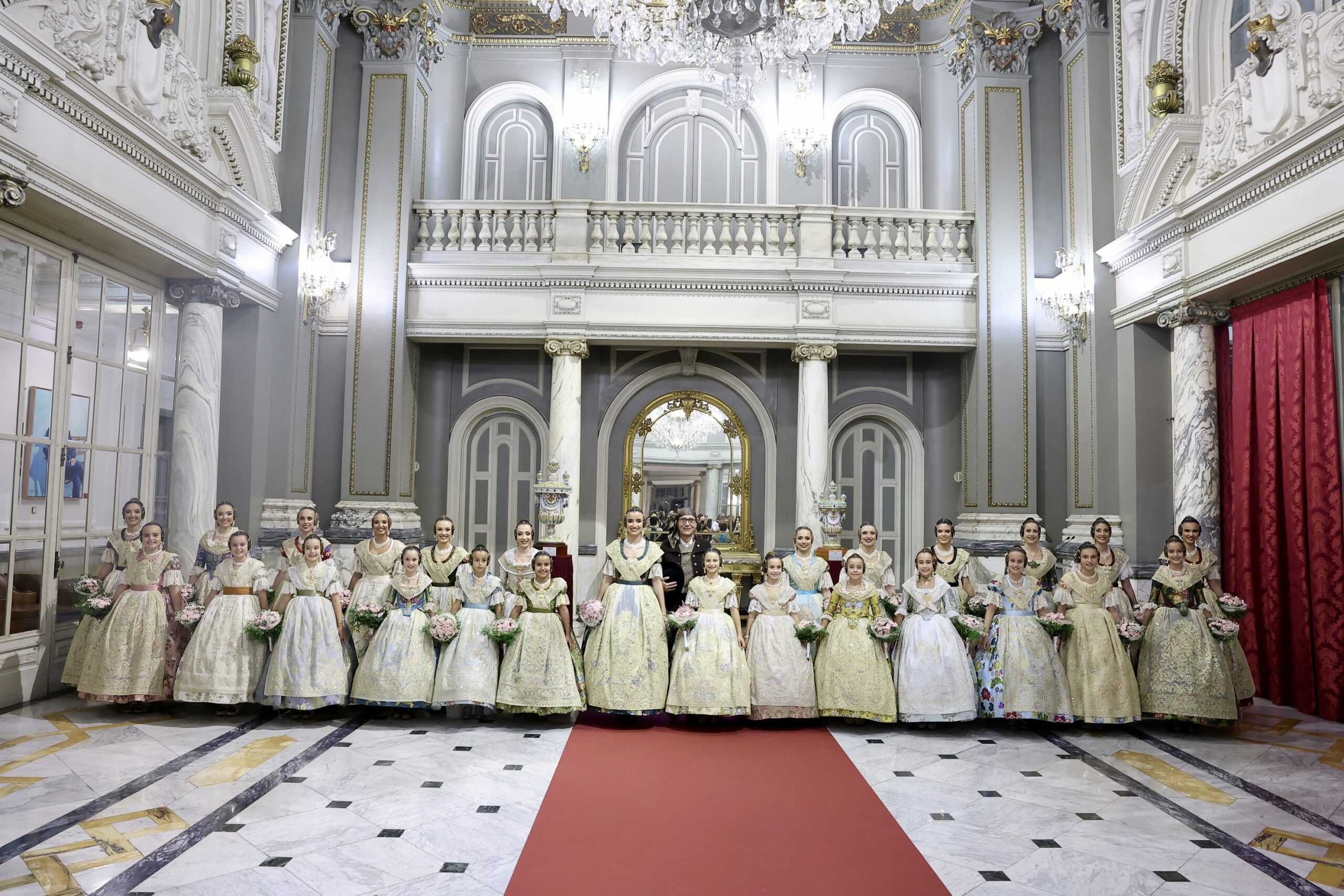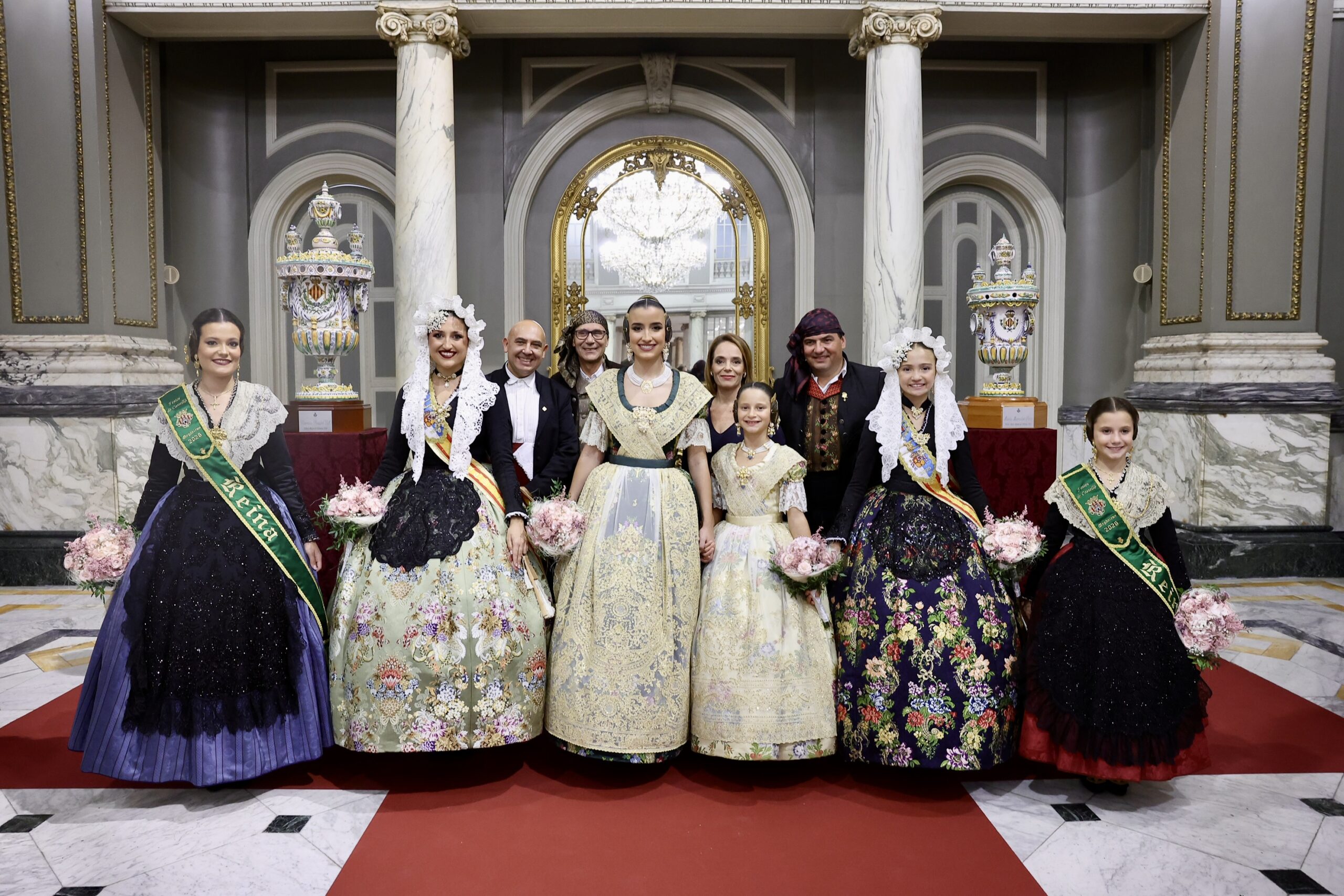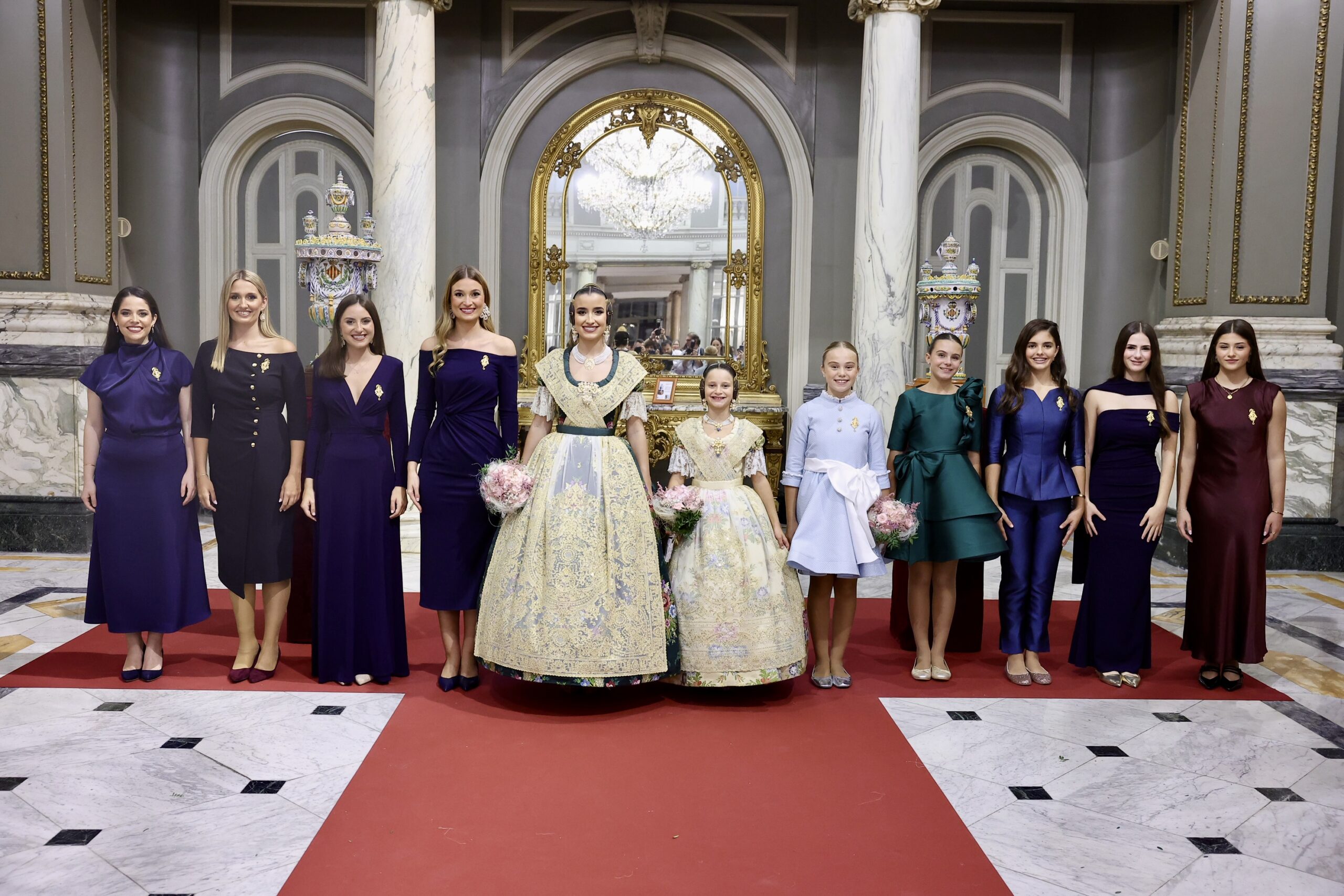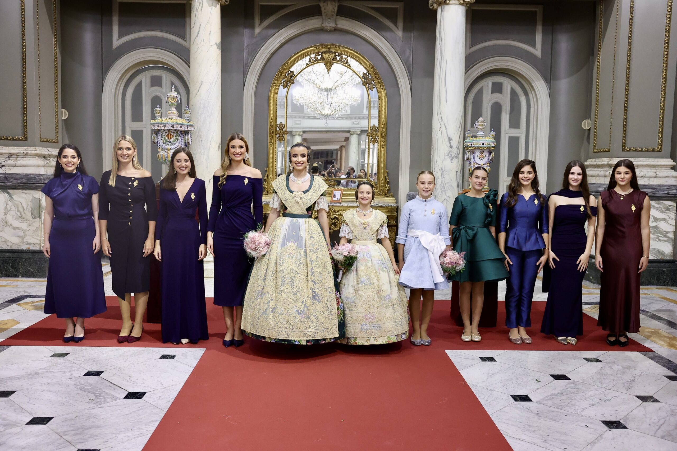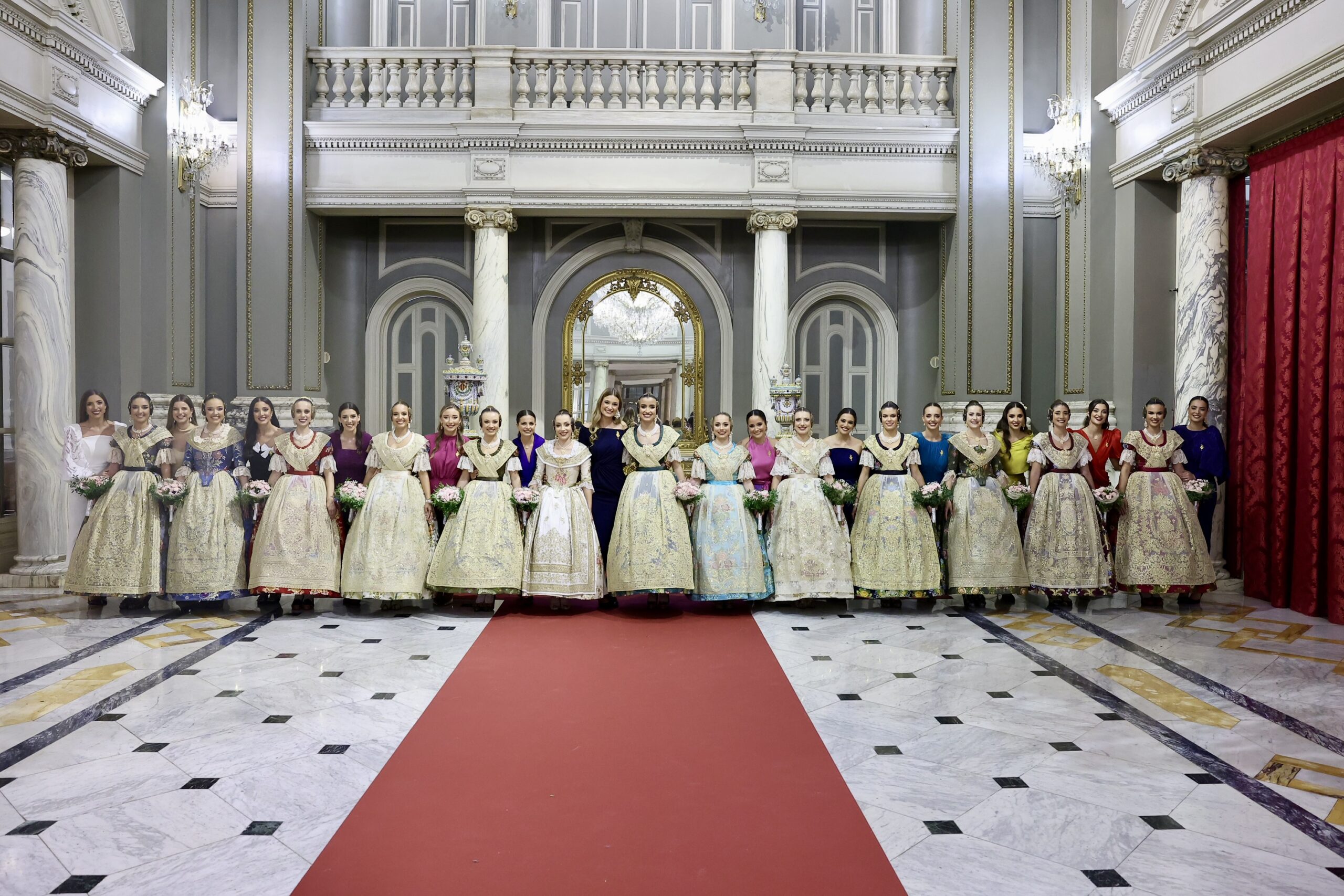 Després s’han realitzat les fotografies oficials de les Falleres Majors de València, Marta Mercader i Carmen Prades, al costat de les seues Corts d’Honor, amb les autoritats i resta de convidats presents.