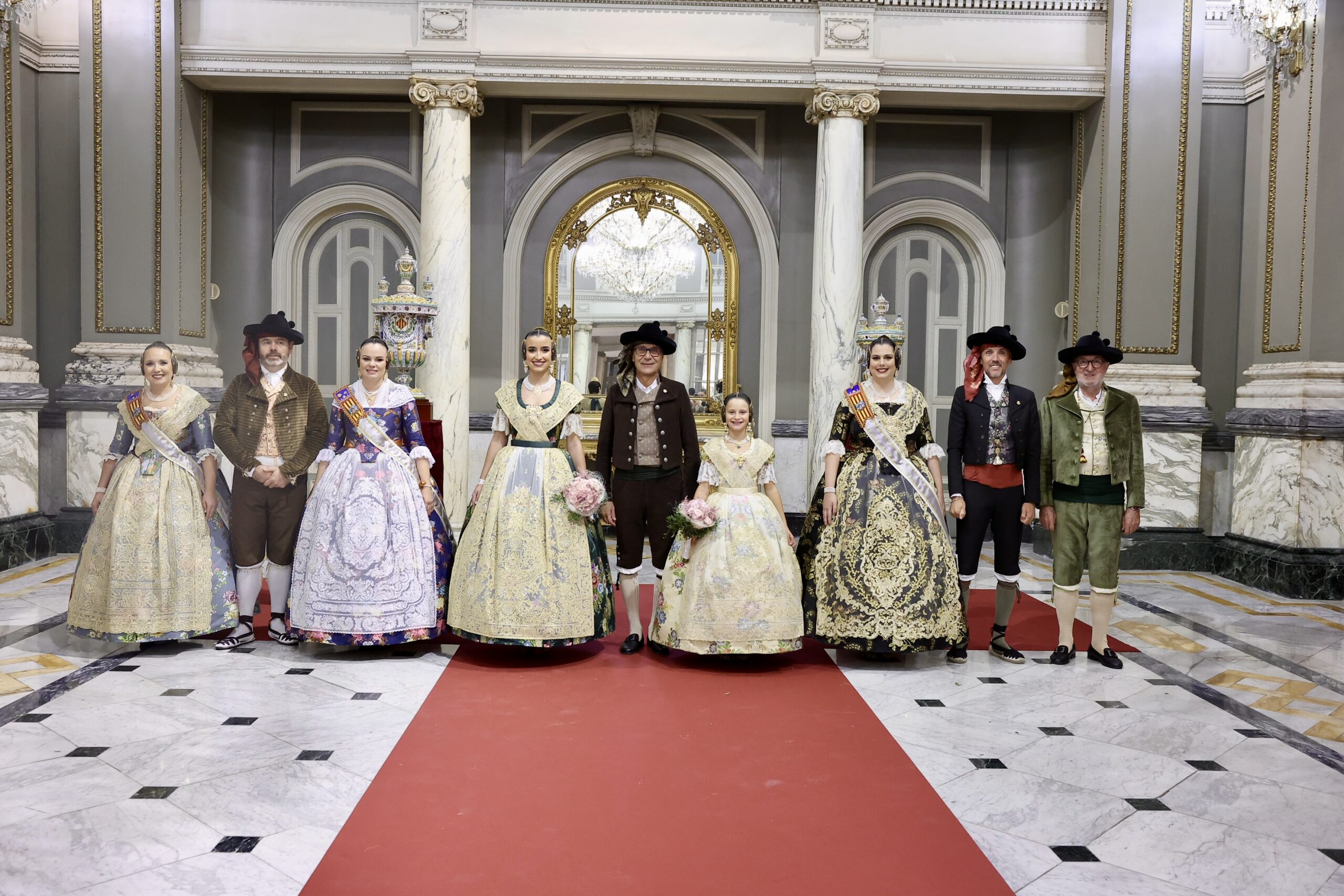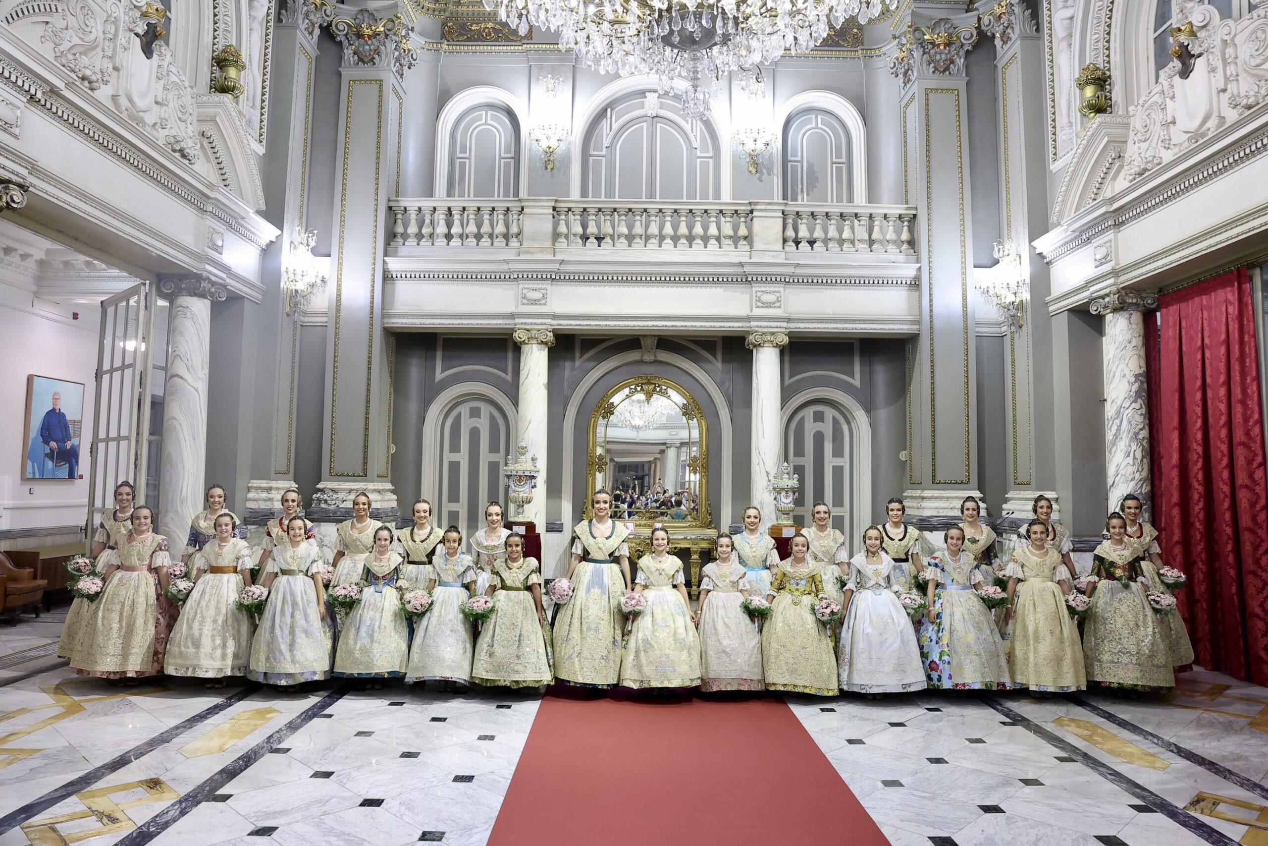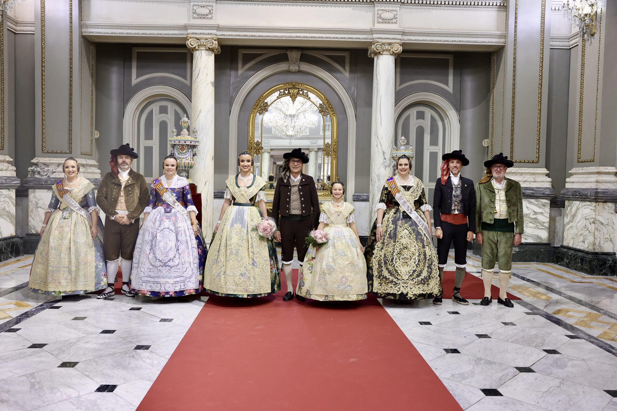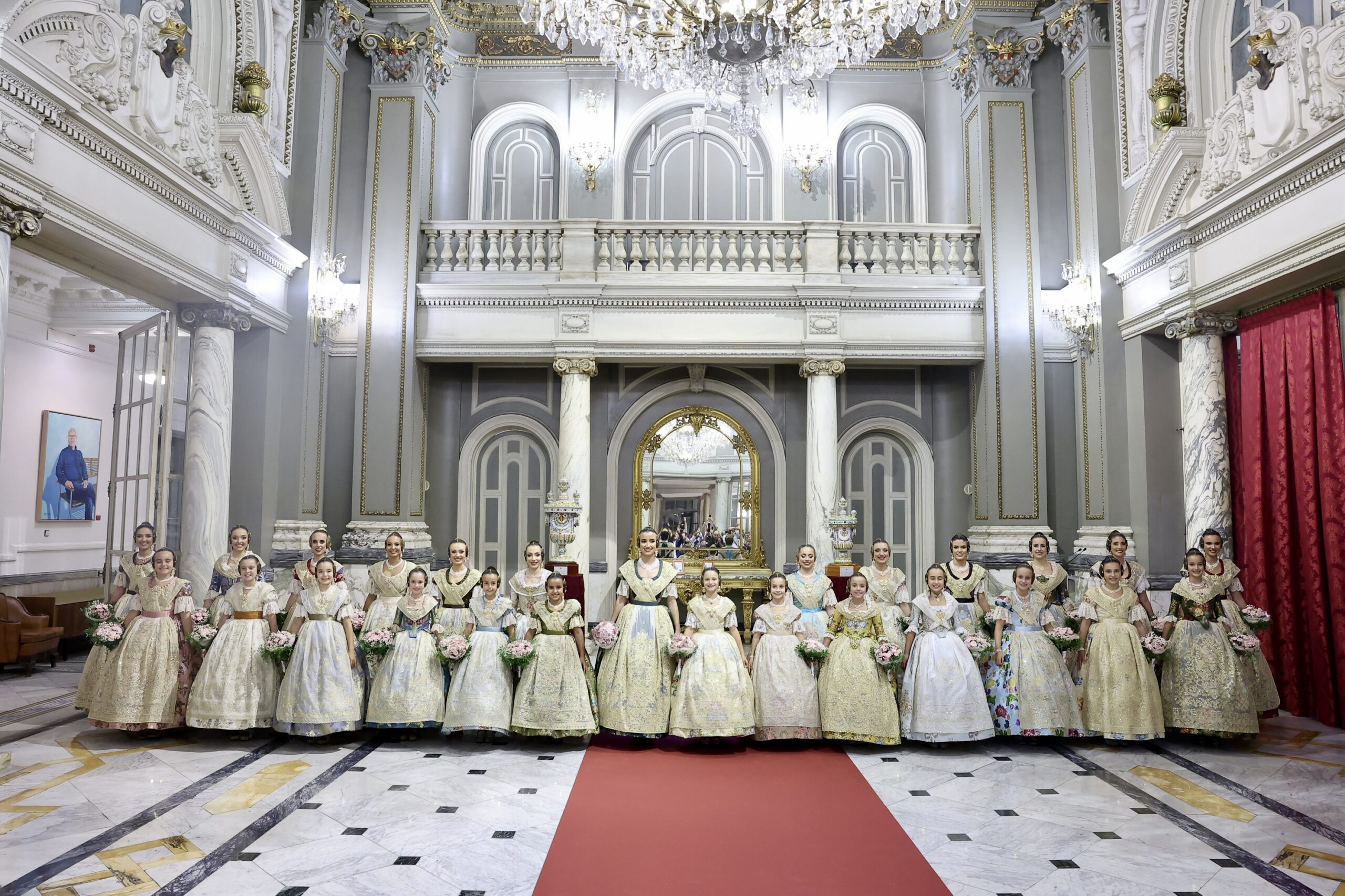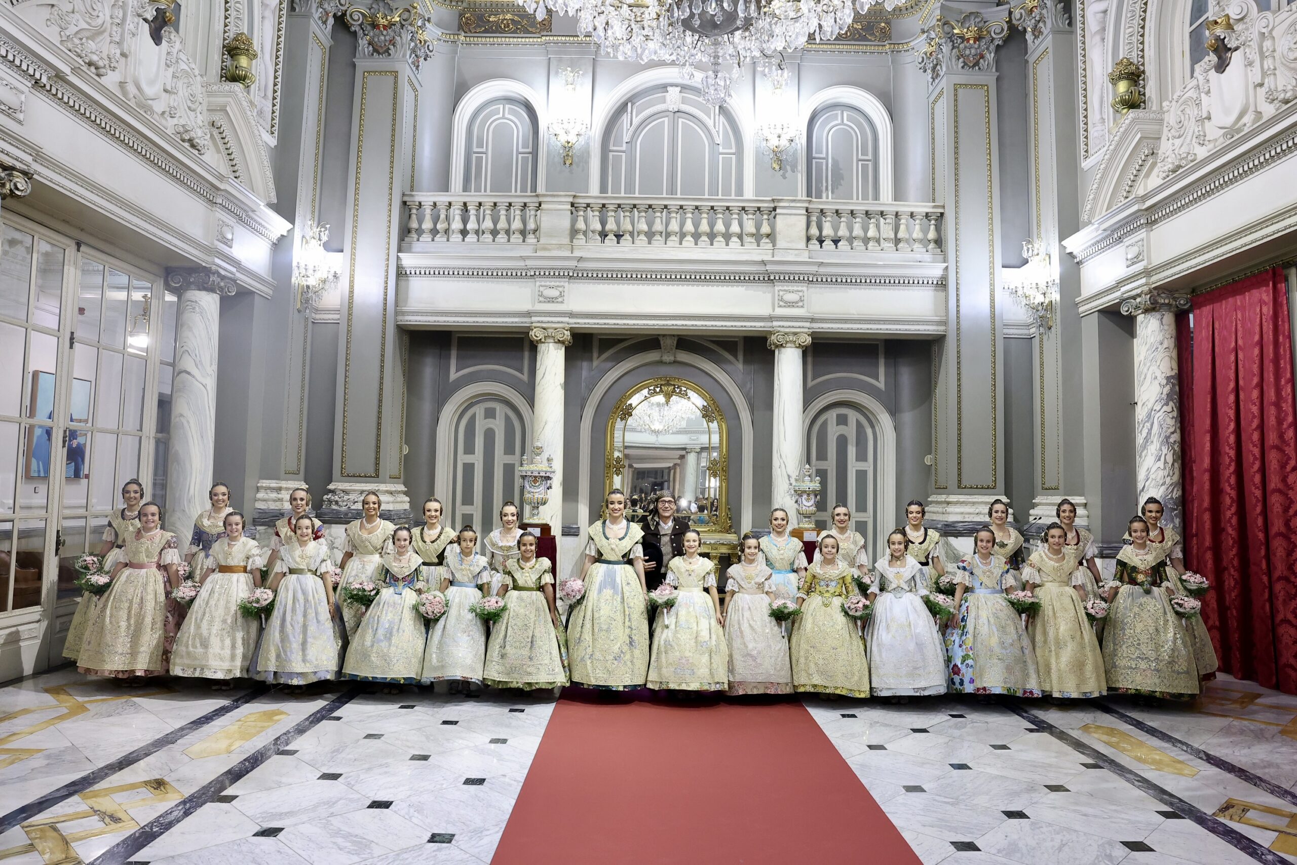 Després s’han realitzat les fotografies oficials de les Falleres Majors de València, Marta Mercader i Carmen Prades, al costat de les seues Corts d’Honor, amb les autoritats i resta de convidats presents.