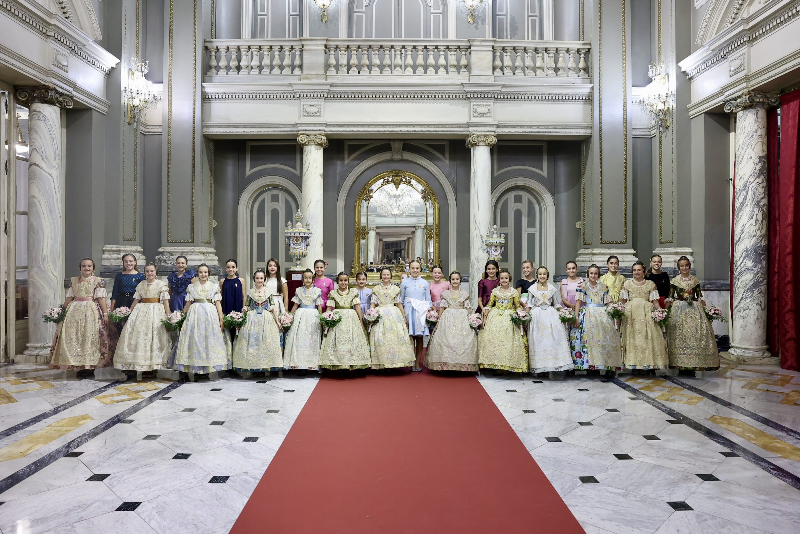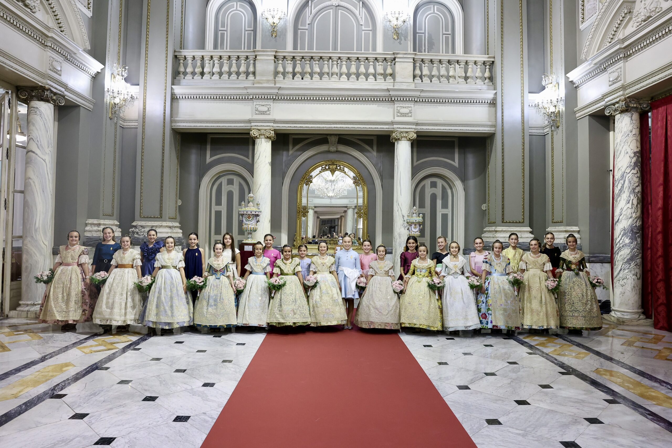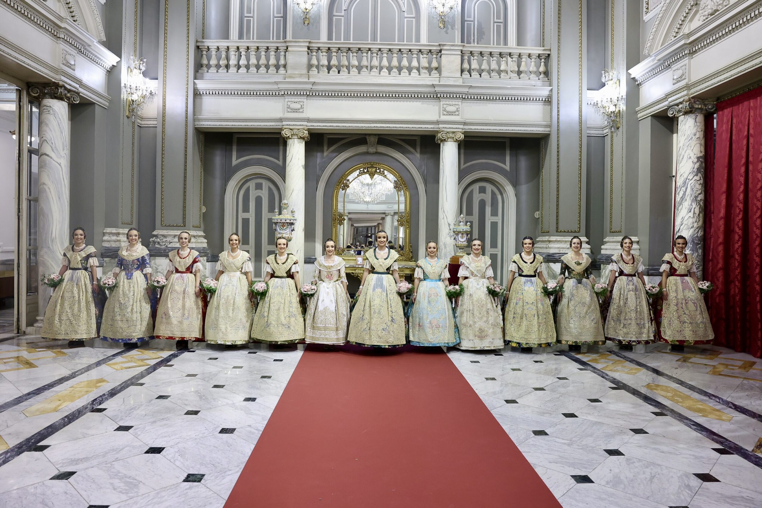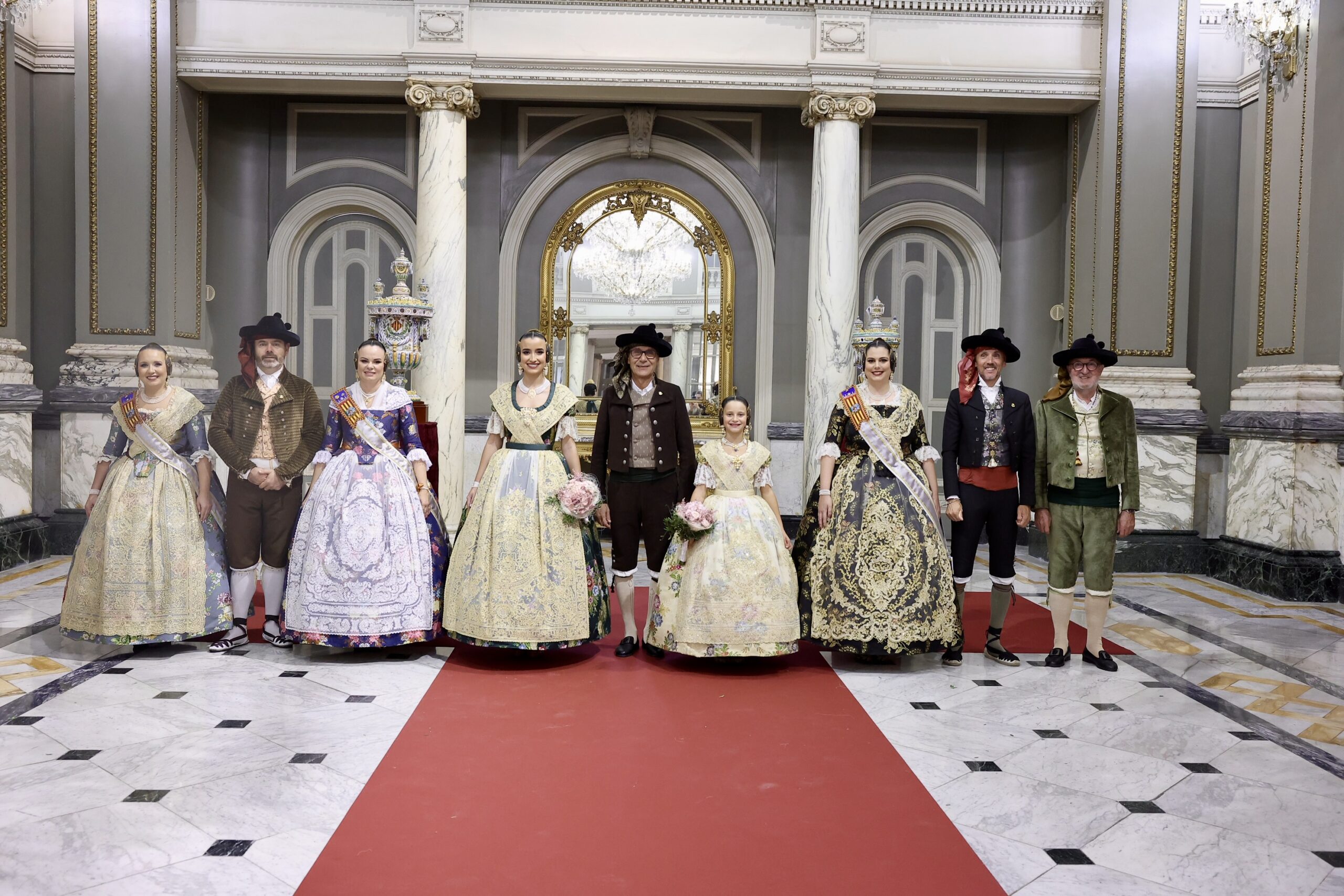 Després s’han realitzat les fotografies oficials de les Falleres Majors de València, Marta Mercader i Carmen Prades, al costat de les seues Corts d’Honor, amb les autoritats i resta de convidats presents.
