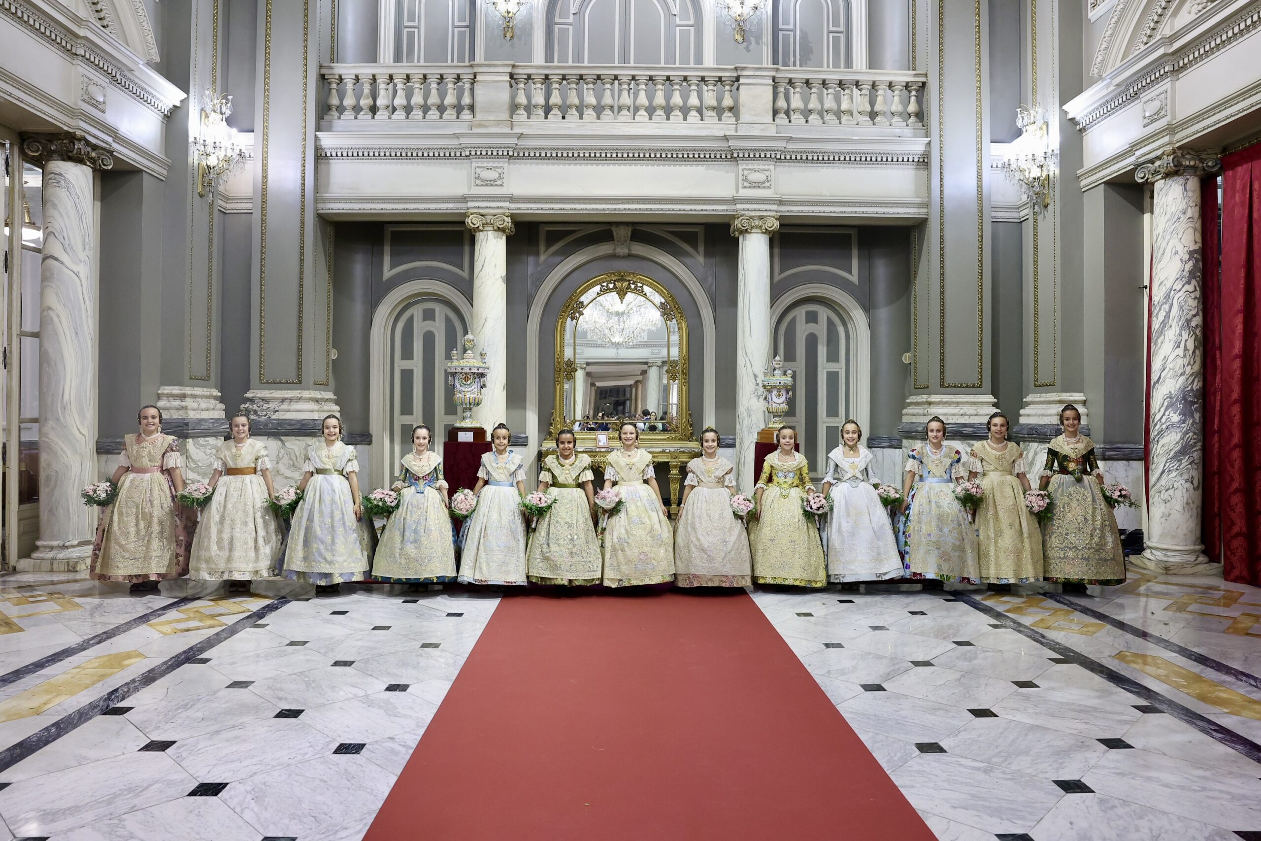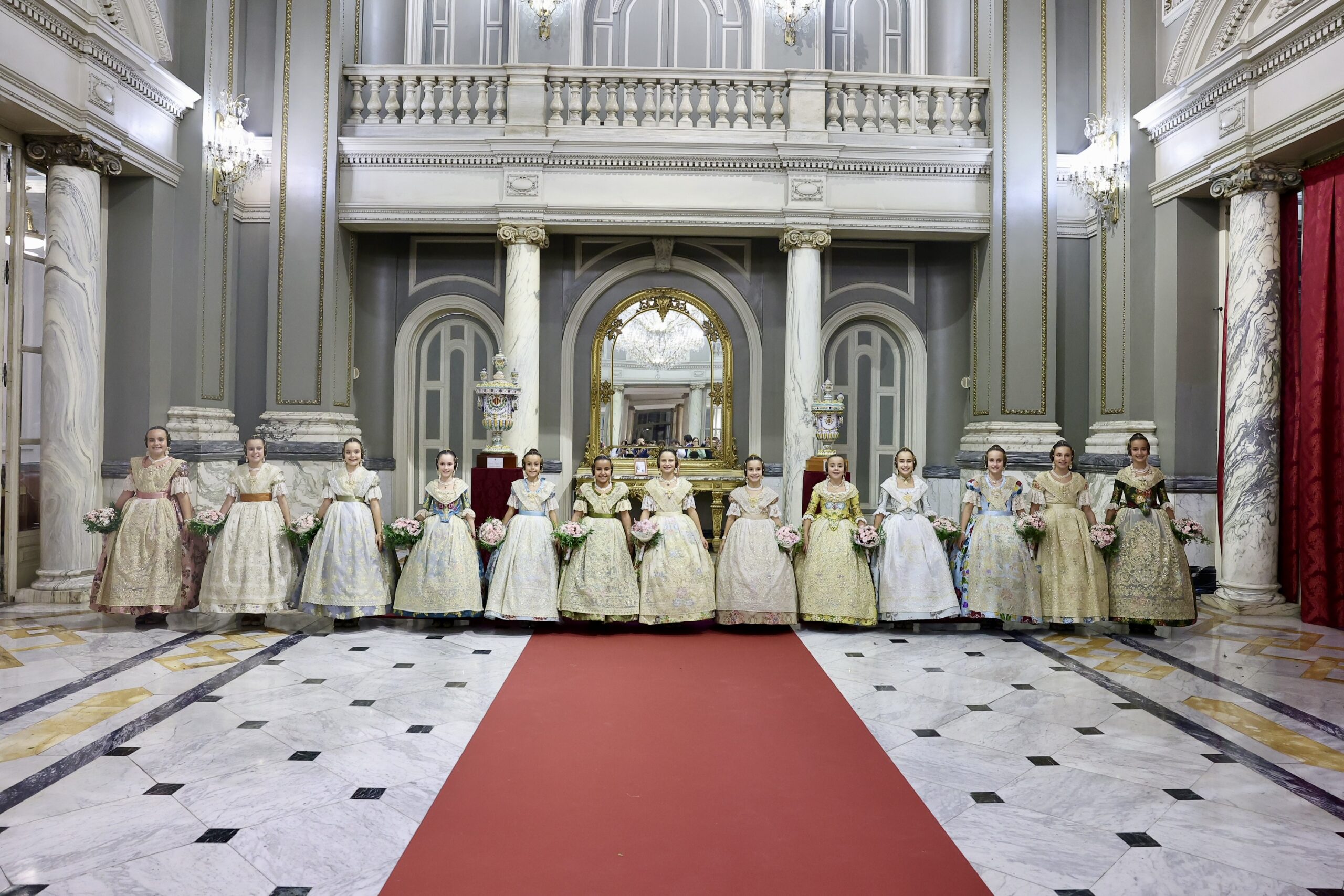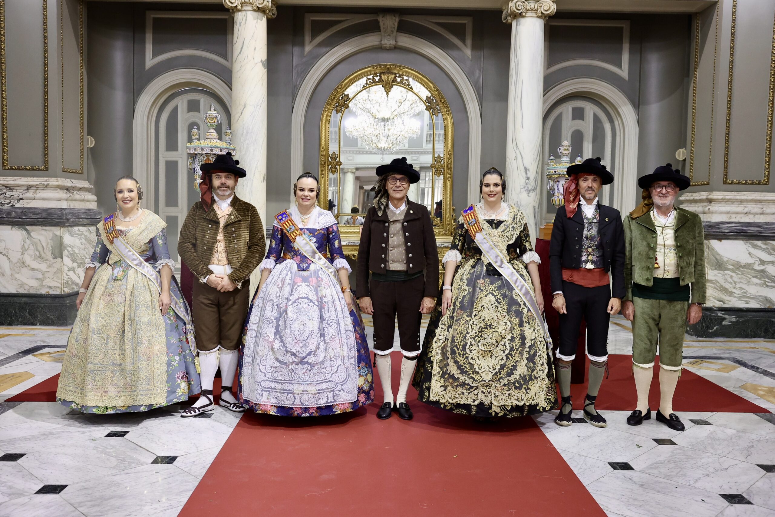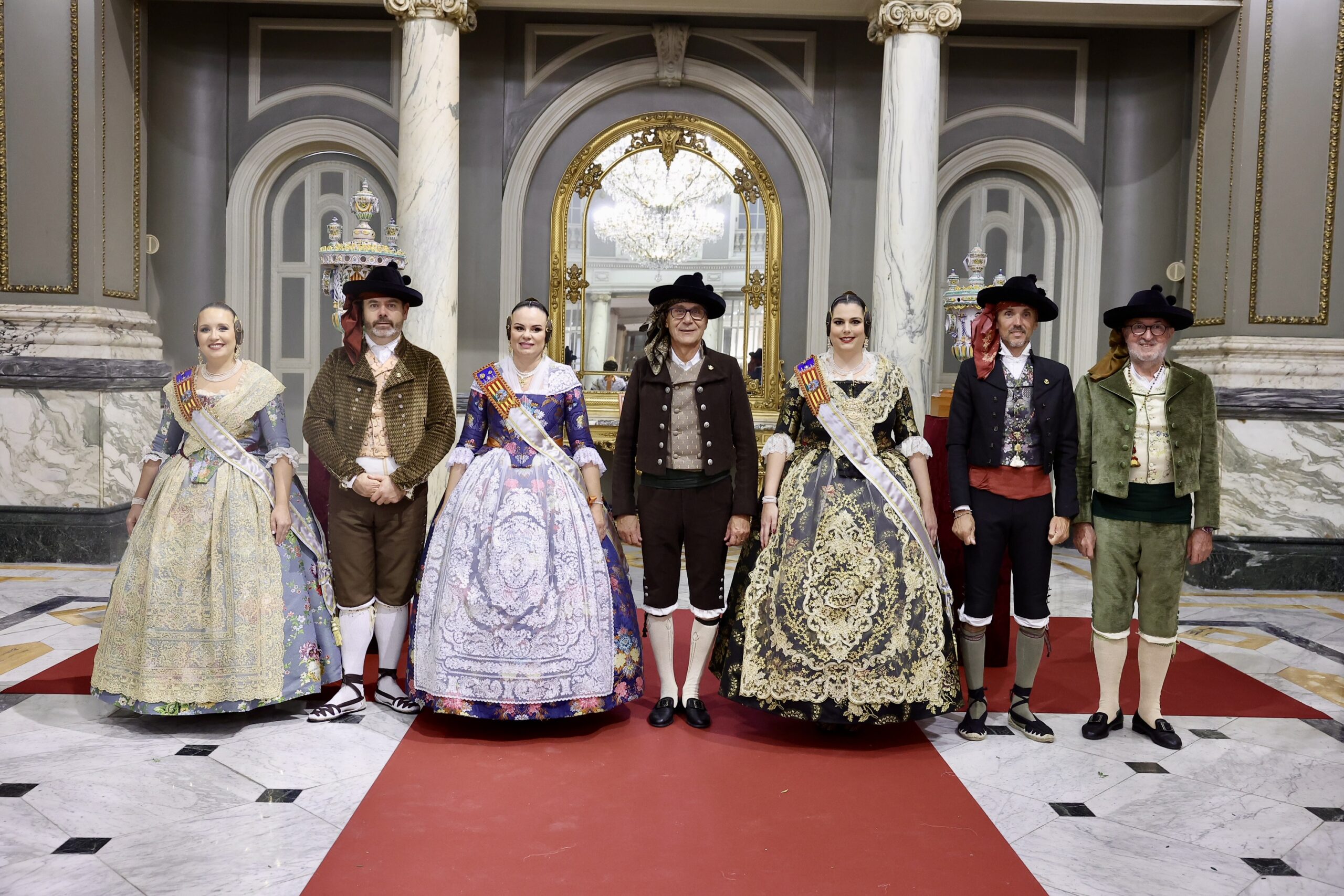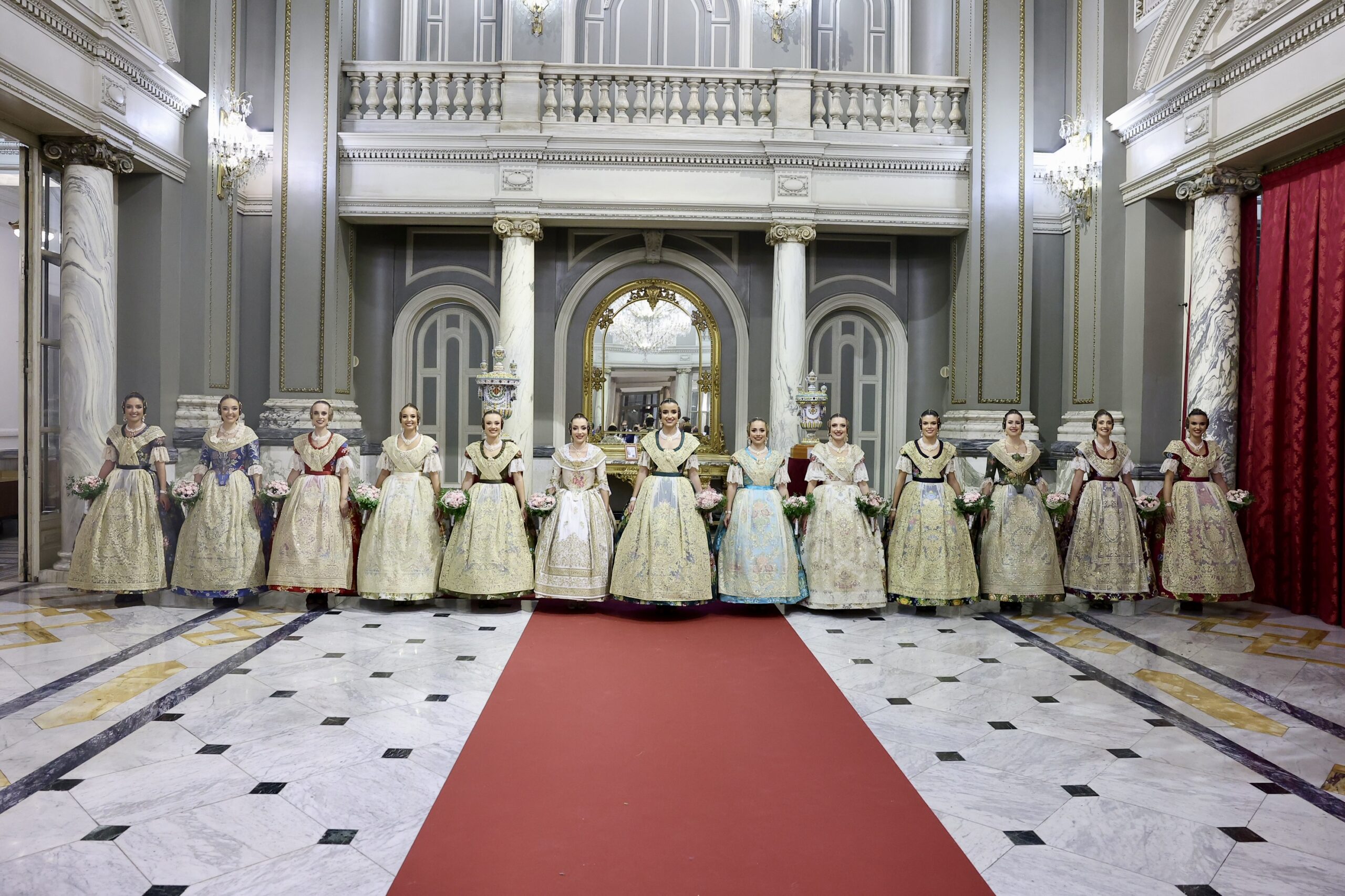 Després s’han realitzat les fotografies oficials de les Falleres Majors de València, Marta Mercader i Carmen Prades, al costat de les seues Corts d’Honor, amb les autoritats i resta de convidats presents.