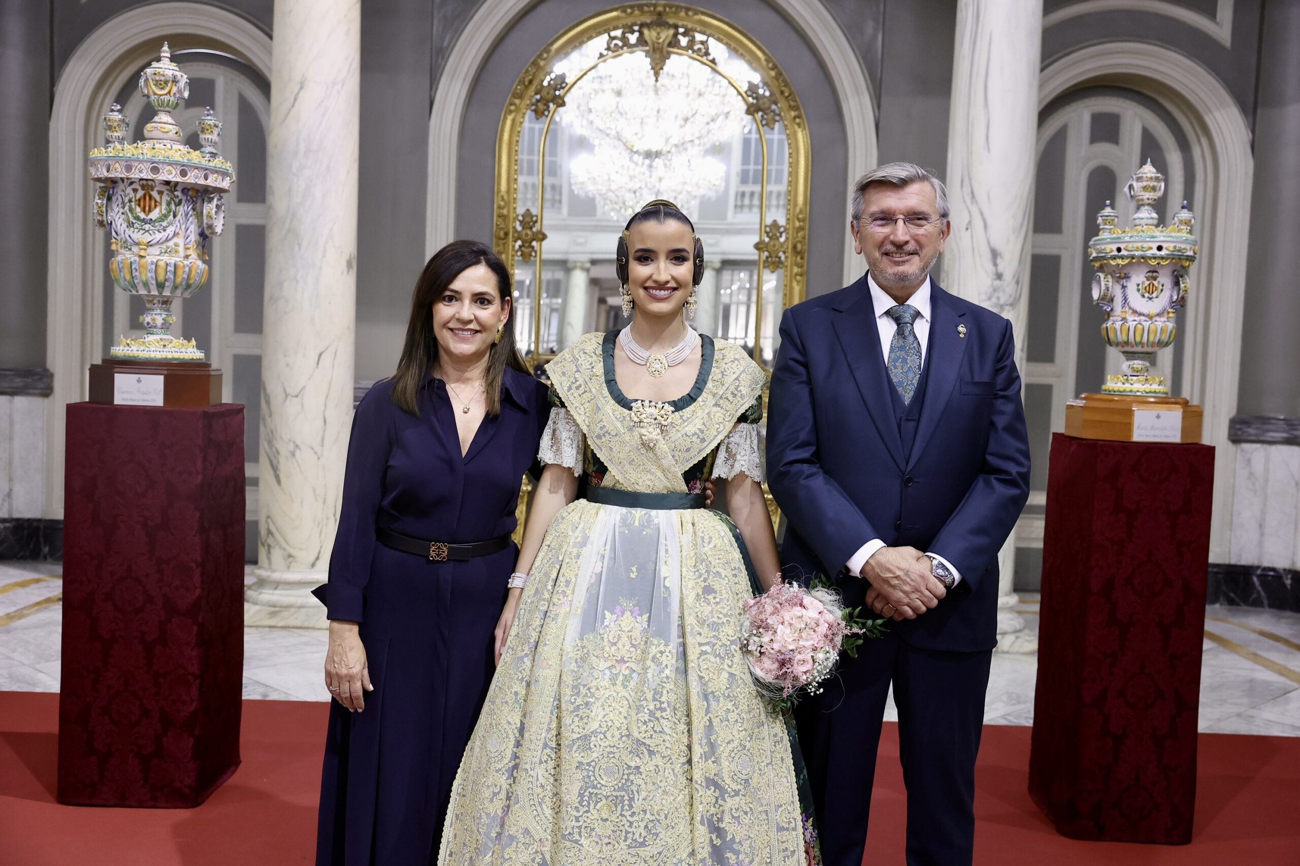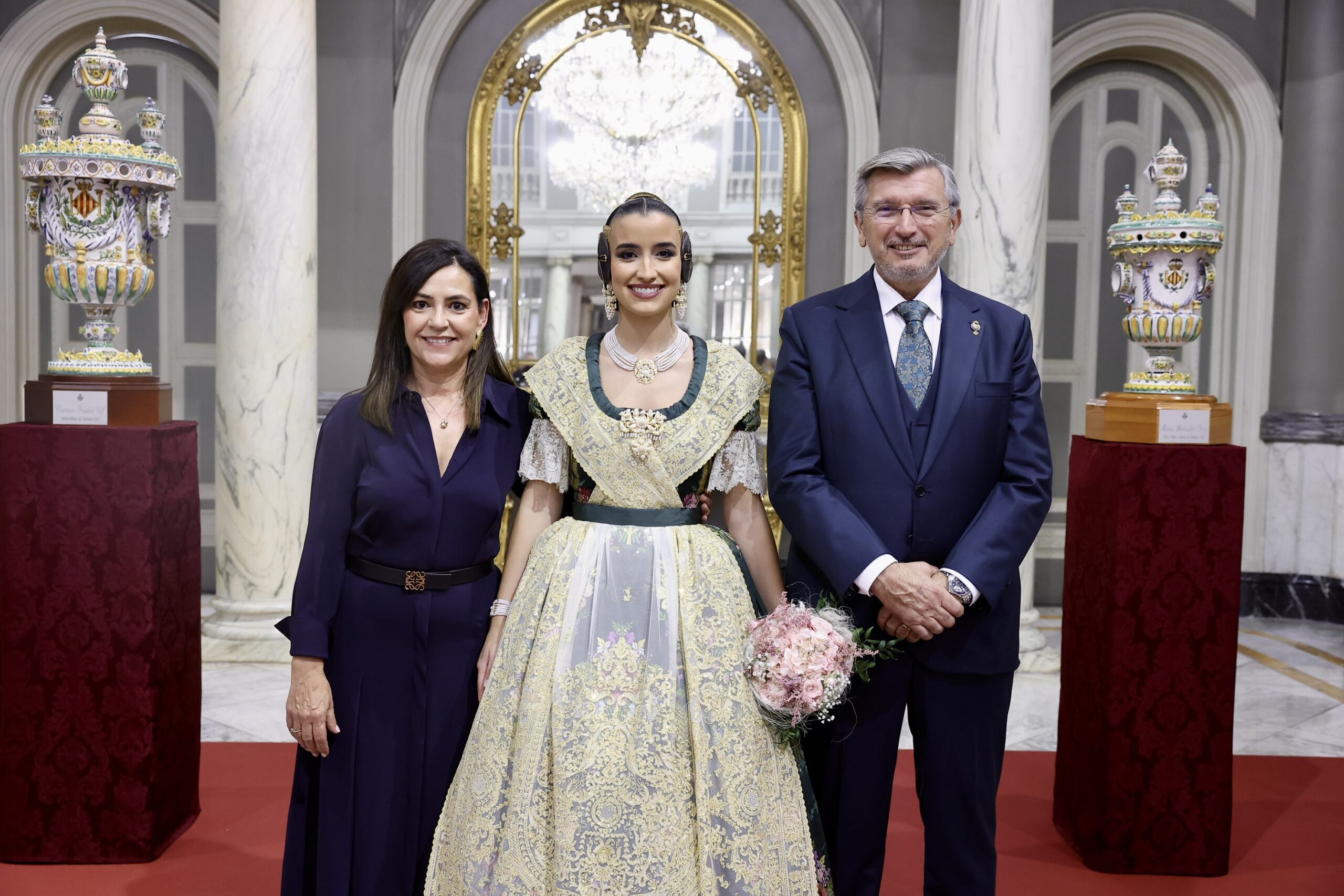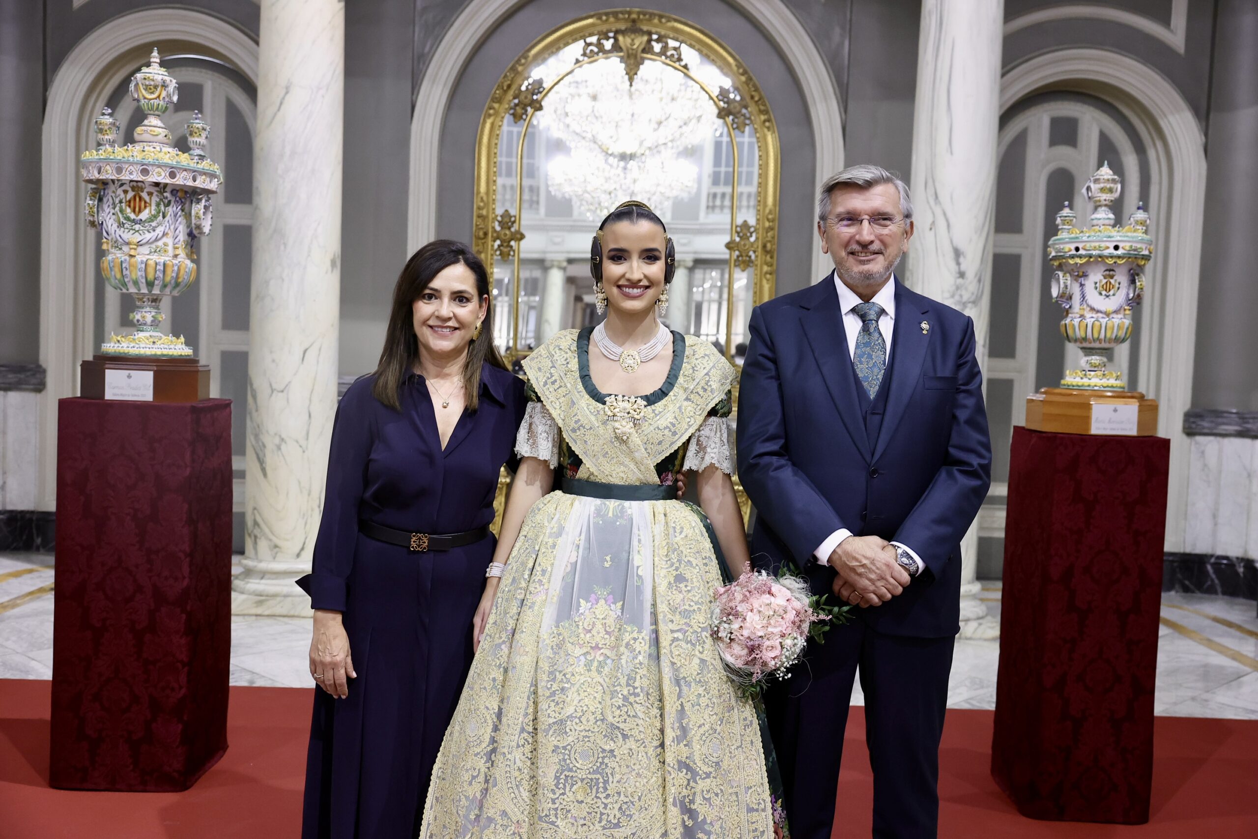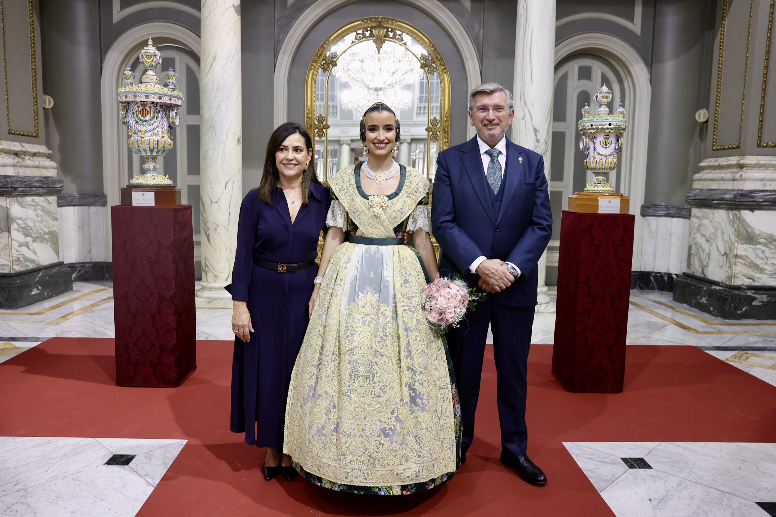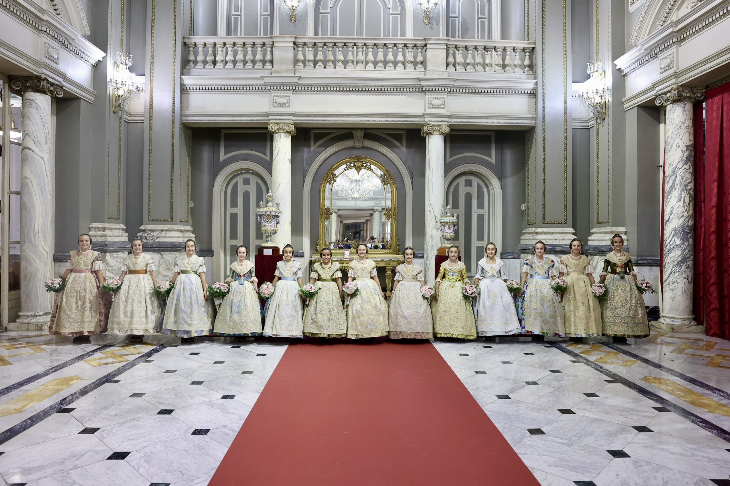 Després s’han realitzat les fotografies oficials de les Falleres Majors de València, Marta Mercader i Carmen Prades, al costat de les seues Corts d’Honor, amb les autoritats i resta de convidats presents.