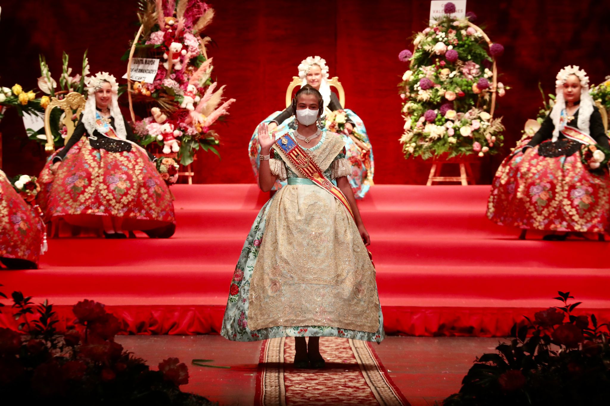 Després de les dames, ha sigut el torn de Valeria Gómez, a qui com és tradicional li ha imposat la banda l’alcalde de la ciutat, Luis Barcala. La bellesa del foc infantil d’Alacant anava abillada amb espolí dibuixe ‘Bellesa del foc’, creat en exclusiva per Vives i Marí que va estrenar aquest dissabte Marina Niceto. La falda de Valeria consta de 50 colors de trama per a les flors, tres verds en les fulles, tres metalls i un cotó de fons, el teixit de color aigua marina.