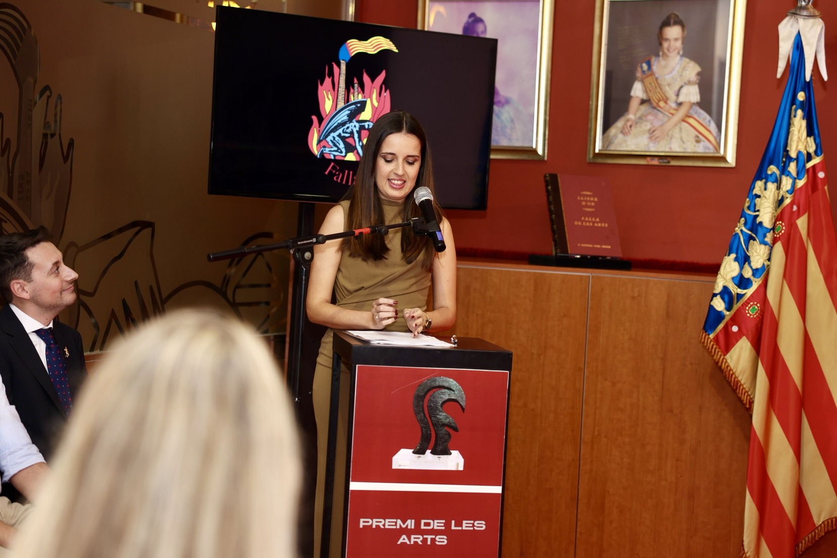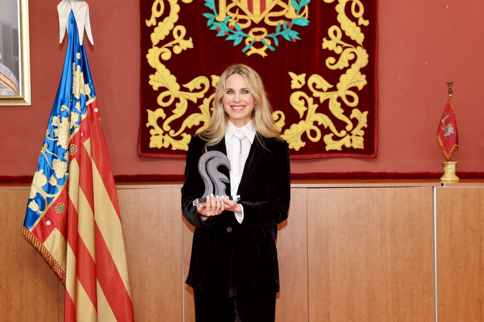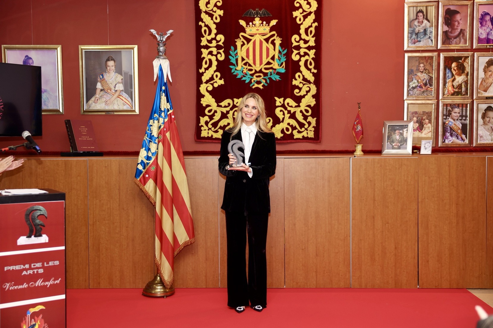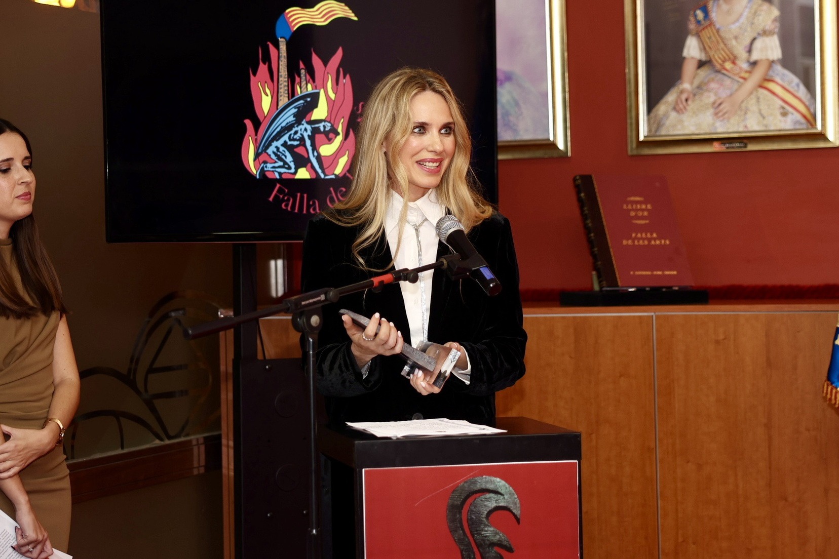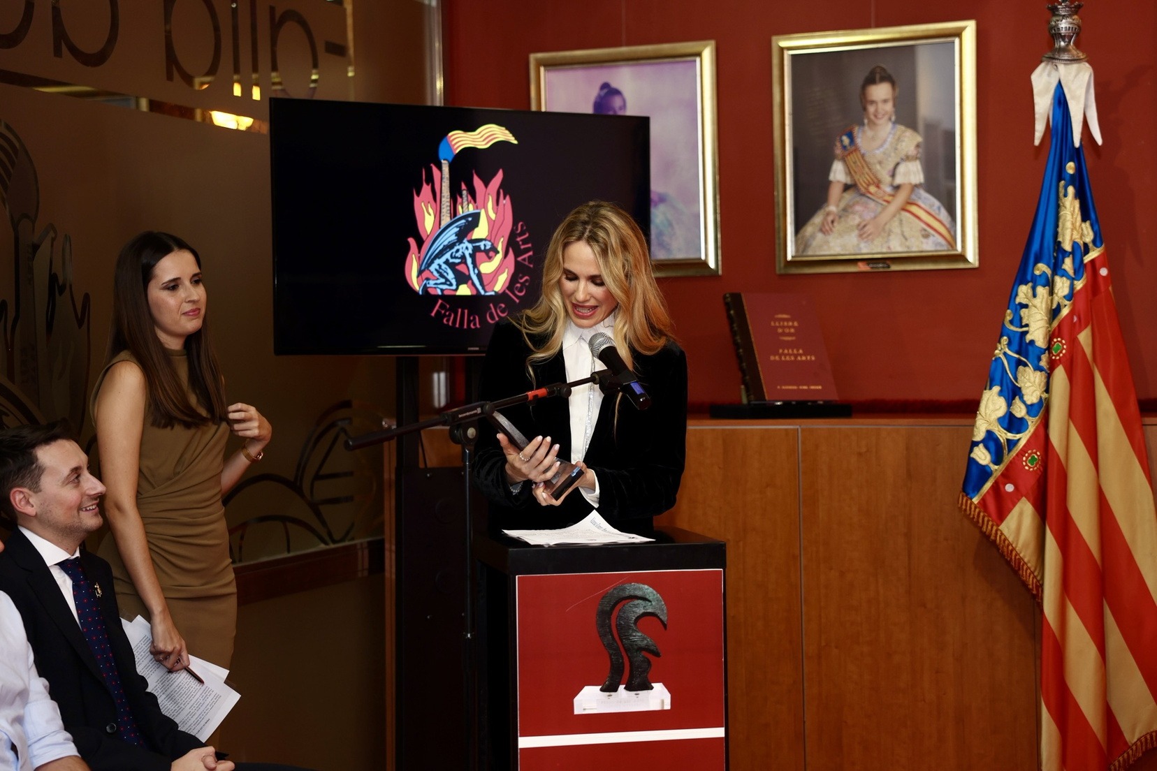 L’acte ha comptat amb la presència de la Fallera Major de València, Carmen Prades, qui juntament amb el quadre d’honor de la comissió, ha sigut l’encarregada de rebre a l’actriu i fer el lliurament del premi.