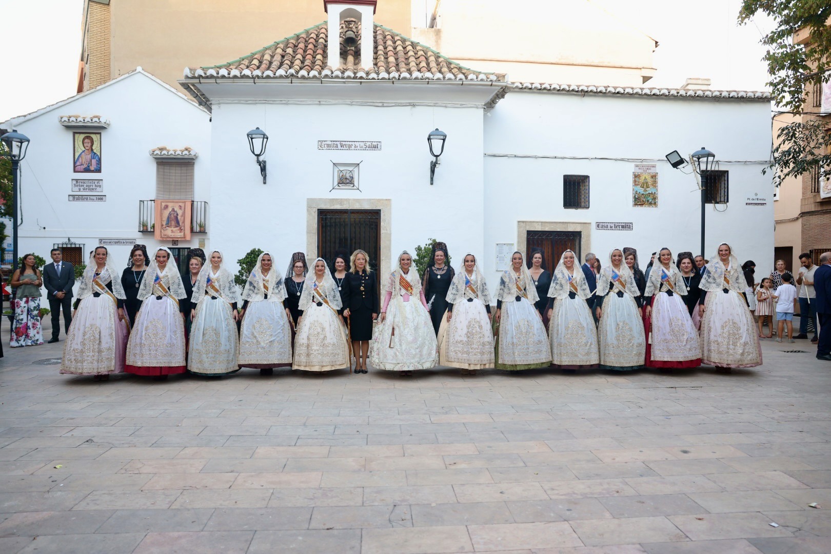 L’ermita de la Mare de Dèu de la Salut ha rebut a la màxima representant de les Falles i a la resta d’autoritats convidades abans del començament de la processó i, a continuació, i al costat de de milers de fidels amb ciris com marca la tradició, María Estela i la seua Cort d’Honor han recorregut els principals carrers de la localitat acompanyant a la imatge de la patrona del municipi.