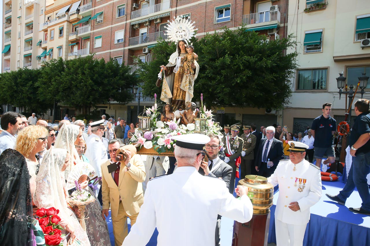 Tras la eucaristía, la figura de la Virgen partió en la procesión marinera hasta el puerto de Valencia. Allí, fue trasladada hasta un barco, desde el que las Falleras Mayores lanzaron una corona de laurel en memoria de los marineros fallecidos. En el acto estuvieron presentes autoridades civiles, militares y sociales, entre otras. Posteriormente, la imagen de la Virgen fue portada de nuevo a su parroquia.